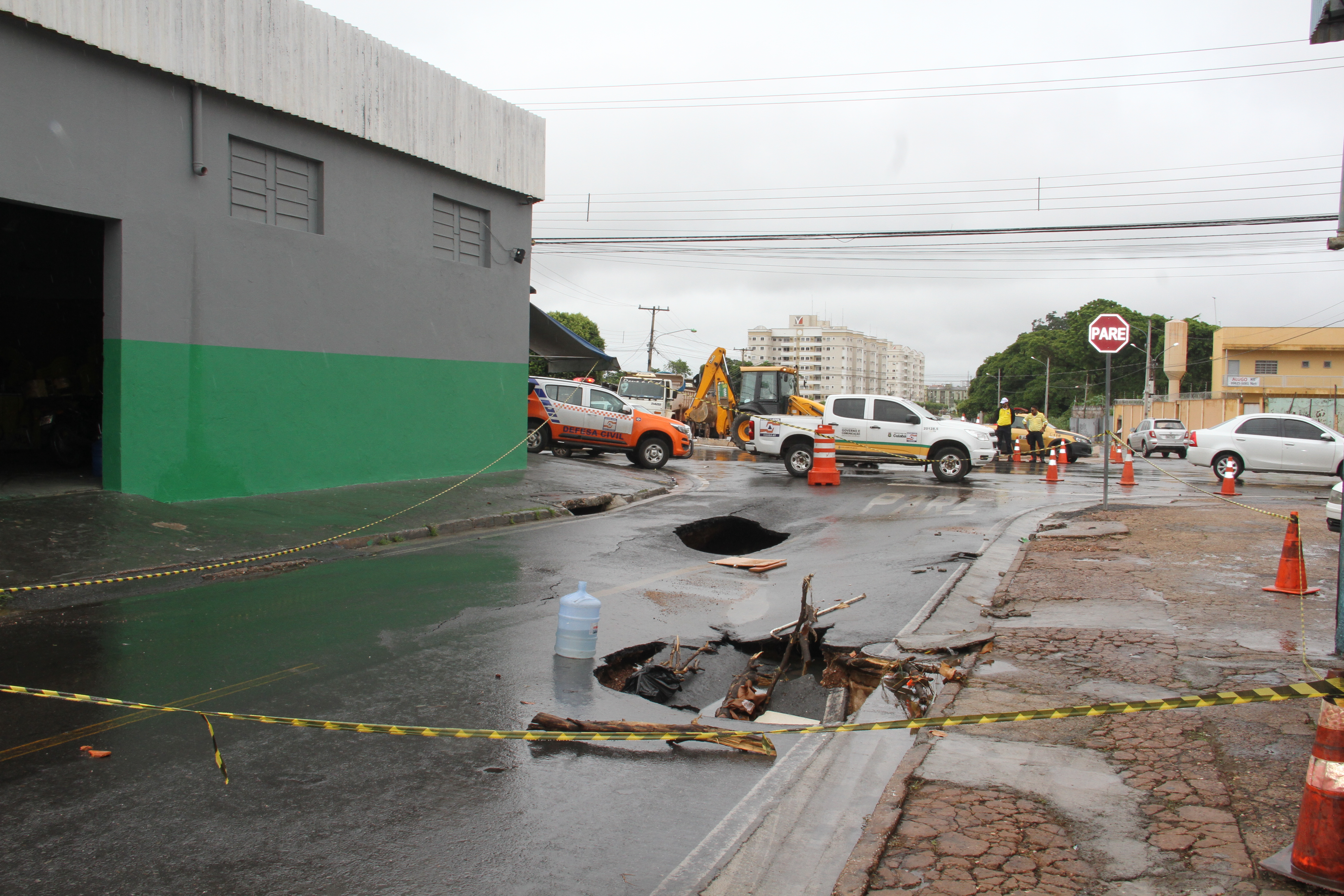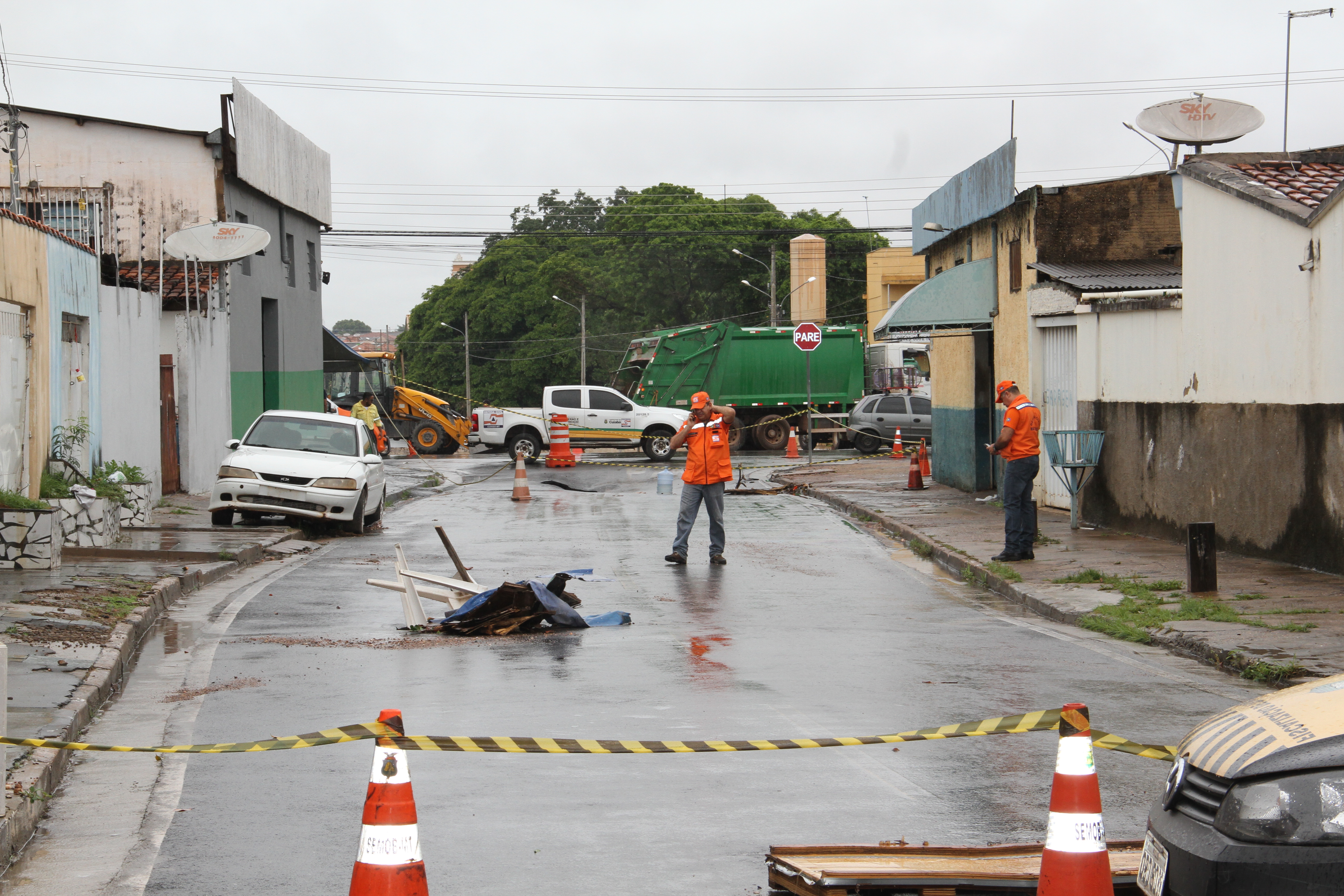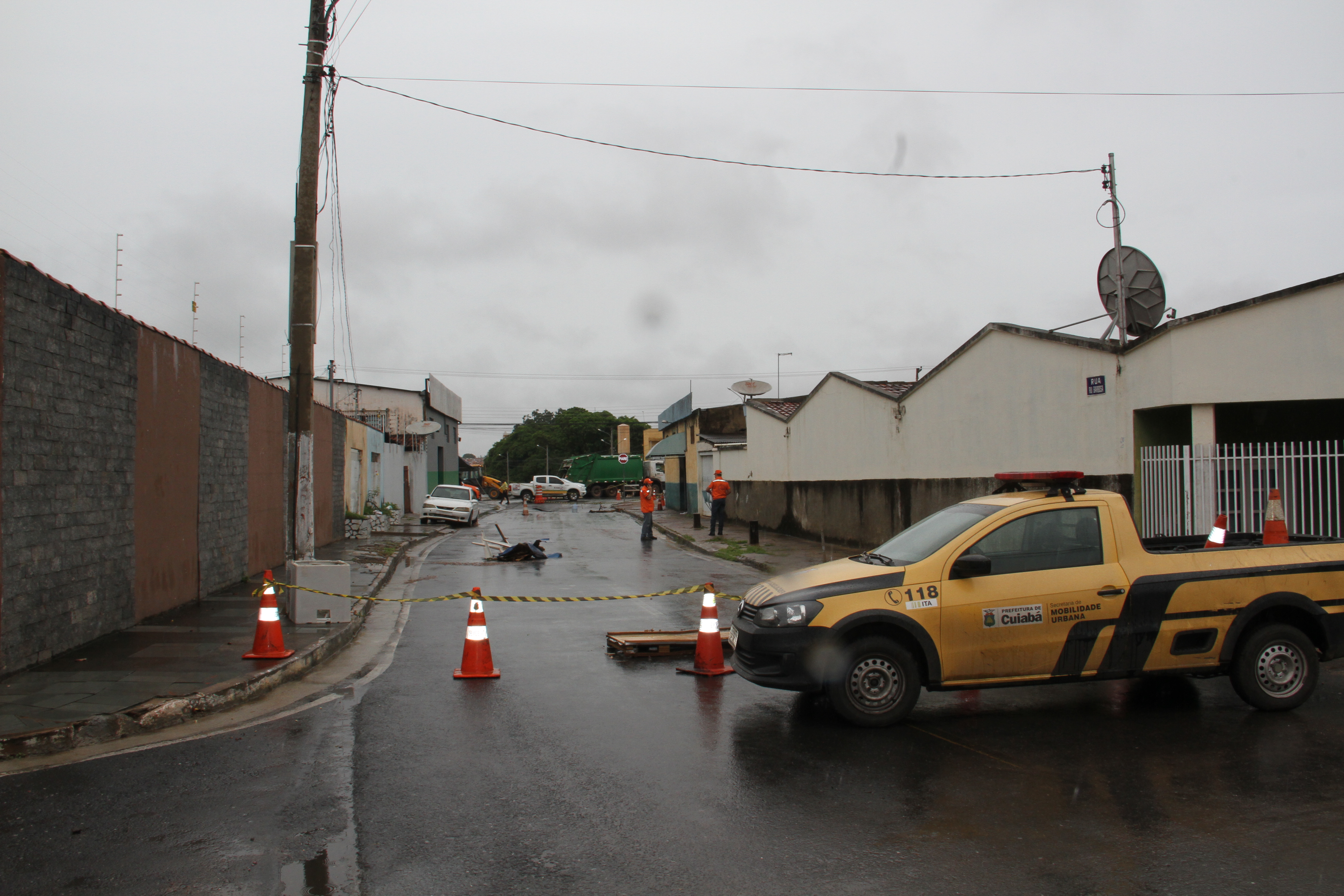 Cumprindo com suas atribuições de desenvolvimento de ações preventivas e assistenciais, no intuito de evitar ou minimizar consequências danosas oriundas de desastres naturais, a Prefeitura de Cuiabá atuou em duas situações resultantes do grande volume de chuva que caiu sobre a Capital na madrugada deste sábado (27). Em um trabalho em conjunto entre a Defesa Civil de Cuiabá e as secretarias municipais de Obras Públicas, Mobilidade Urbana, e Serviços Urbanos, a gestão do Município agiu de maneira rápida nos incidentes, ambos sem vítimas, acontecidos na Rua Rui Barbosa e em uma residência na Rua Cel. Benedito Leite, situadas no bairro Goiabeiras.