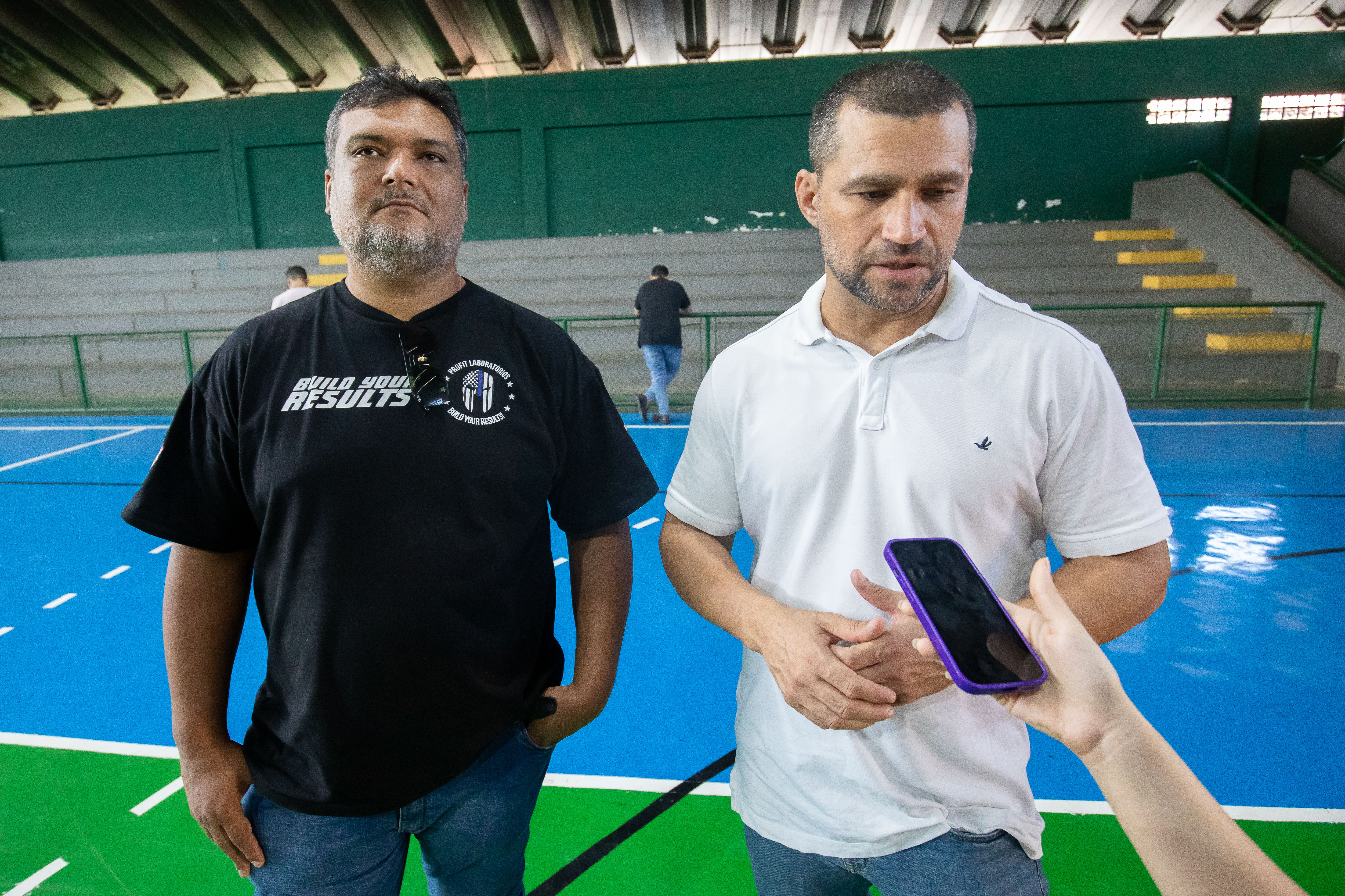 A imagem mostra o secretário de Esportes e Lazer, Jefferson Neves, durante vistoria no Ginásio Verdinho, no CPA I.