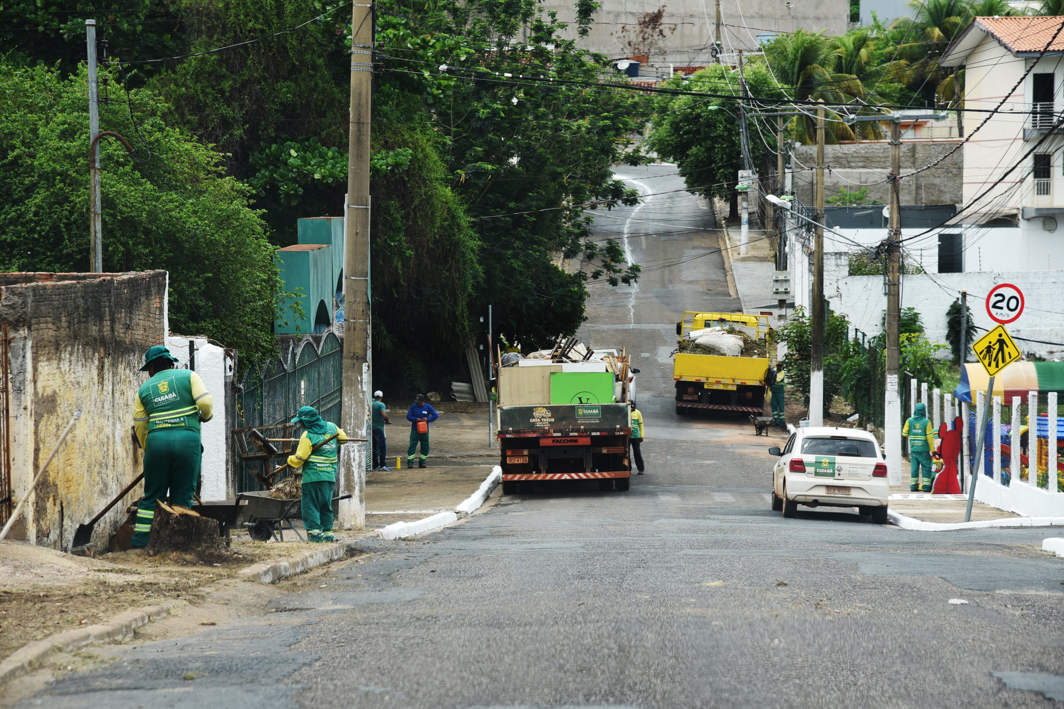 Em virtude do feriado nacional de Nossa Senhora de Aparecida, o programa Mutirão da Limpeza, que aconteceria neste sábado (12), foi antecipado para sexta-feira (11). A ação da Prefeitura de Cuiabá, que a cada fim de semana beneficia uma comunidade diferente, atendeu mais de 4 mil moradores do bairro Lixeira. Durante todo o dia, cerca de 250 trabalhadores percorreram as vias e espaços públicos, desenvolvendo serviços de zeladoria.