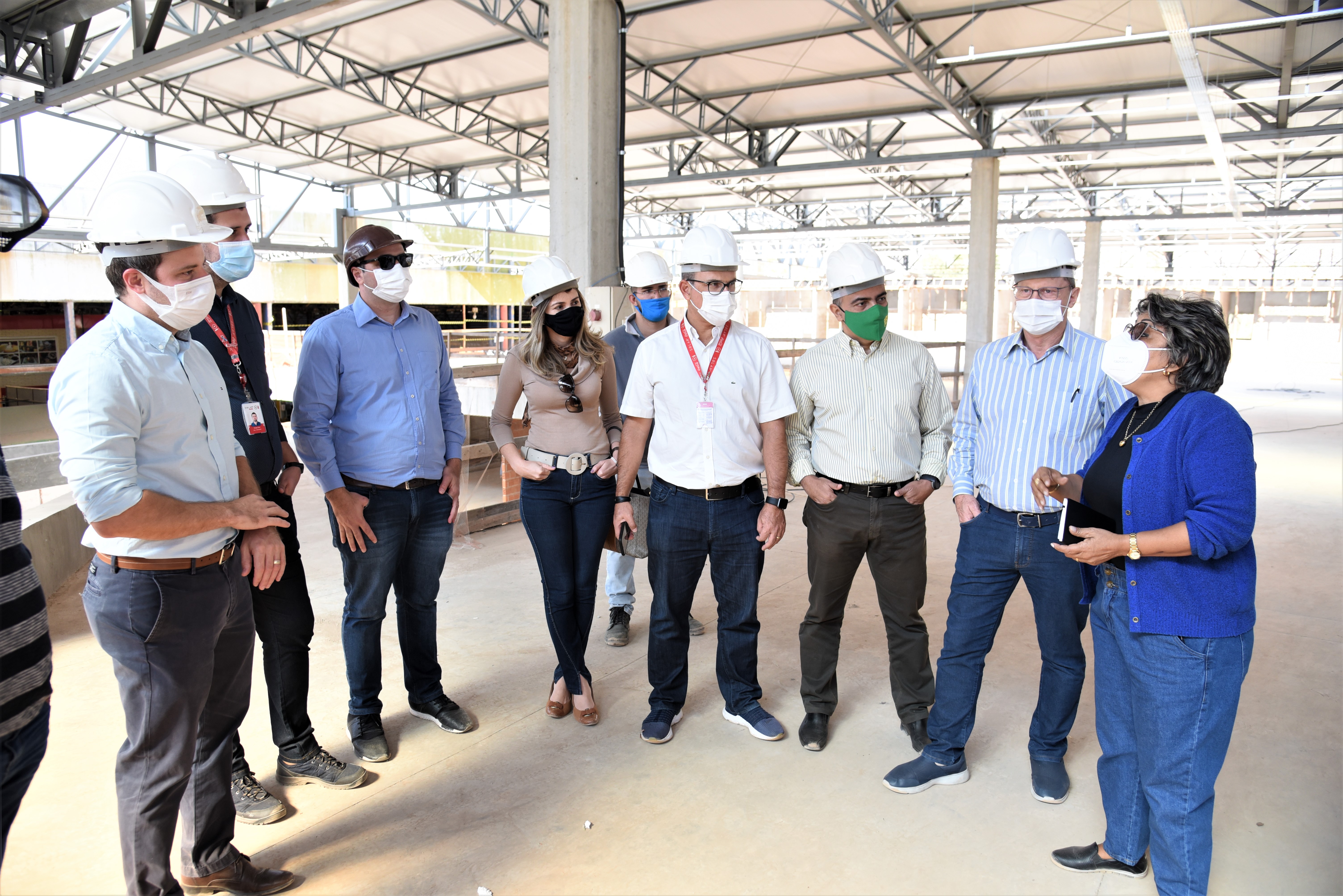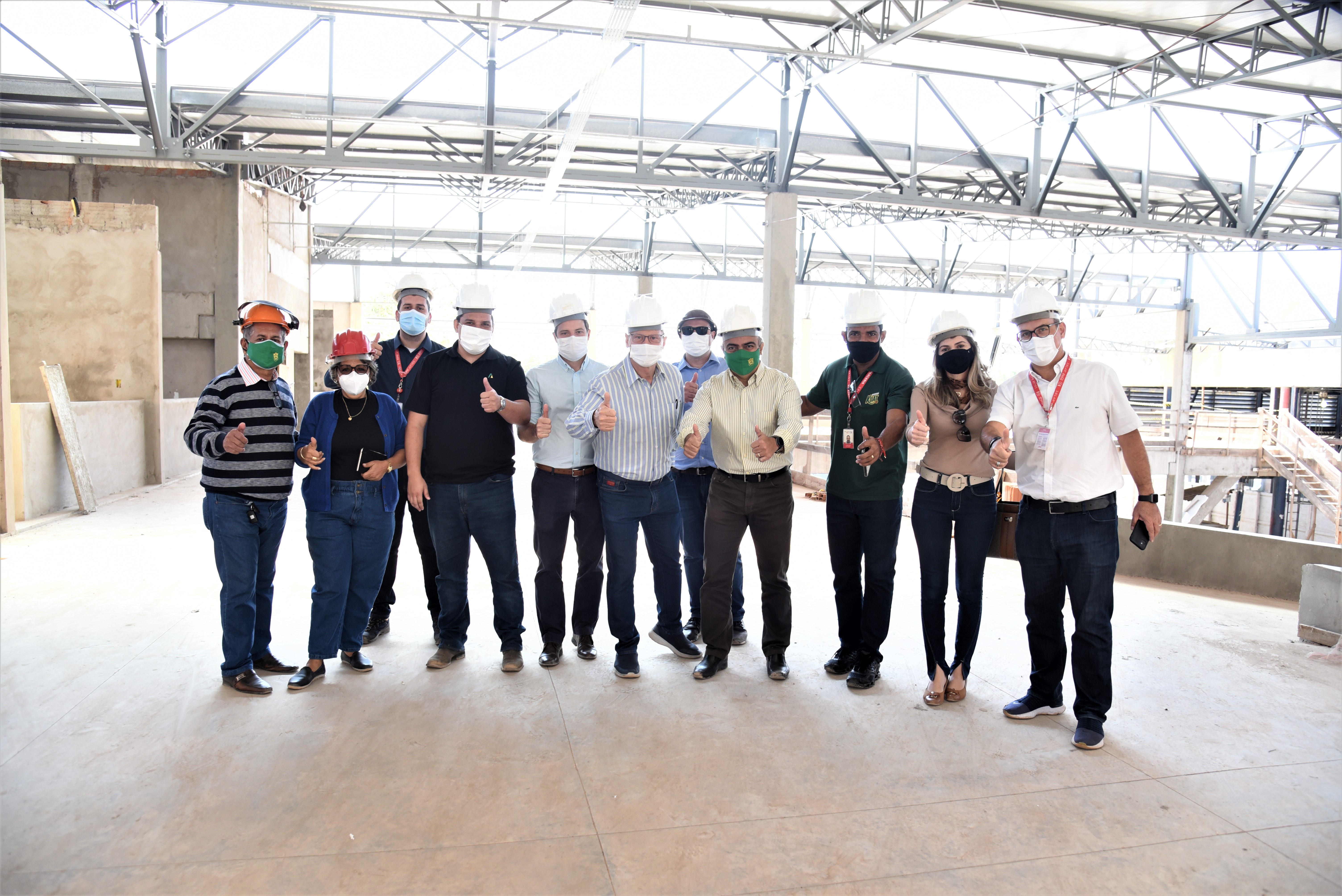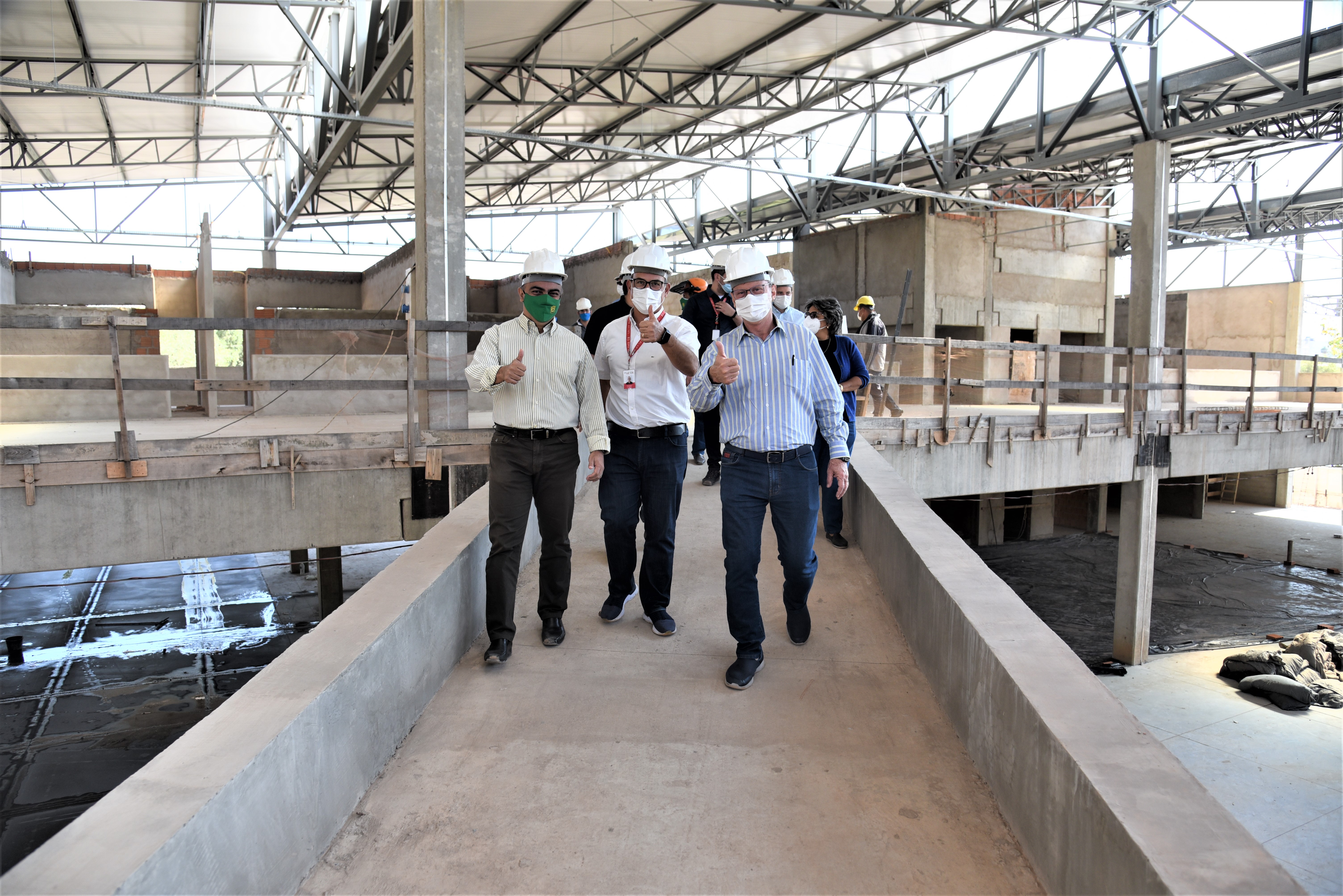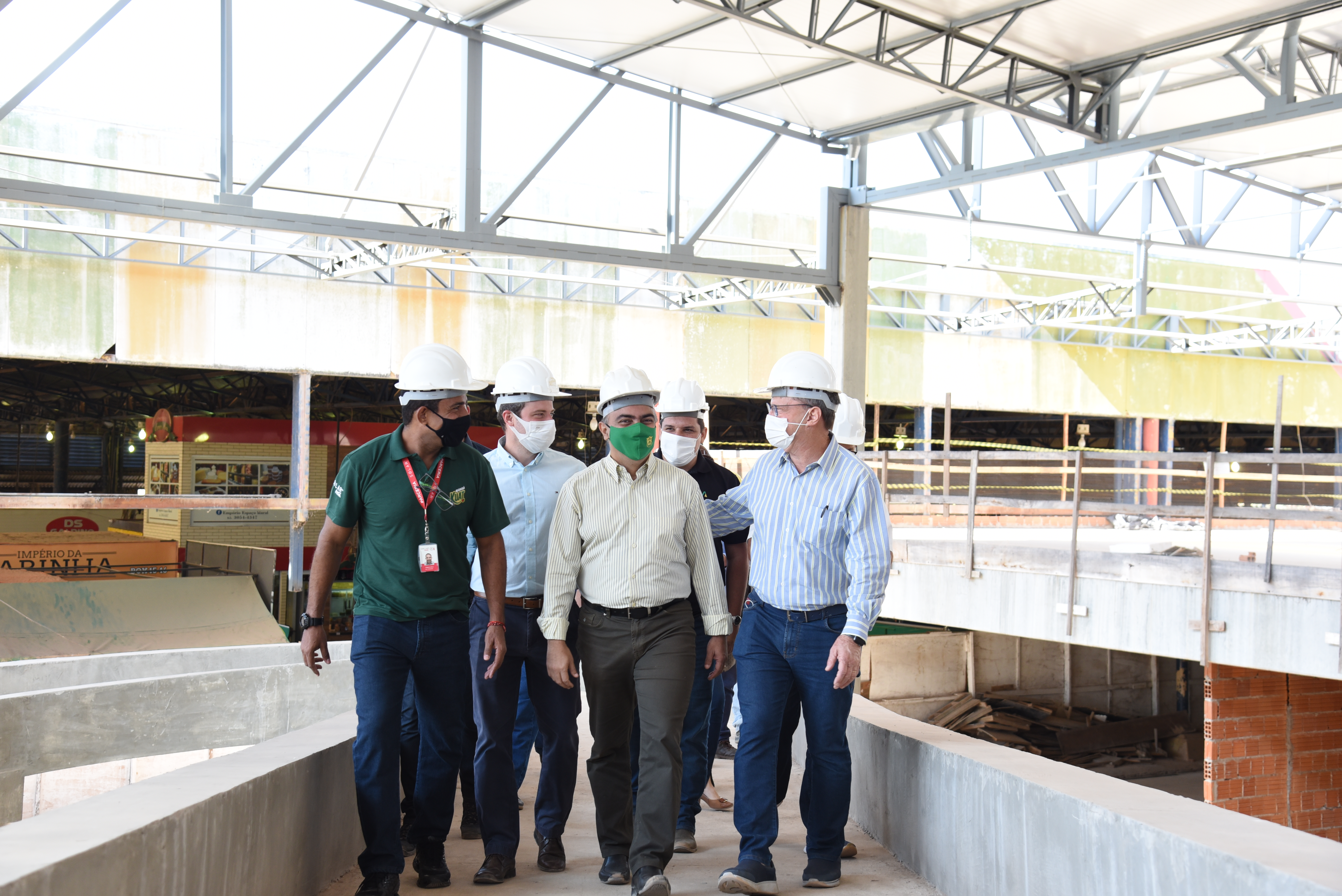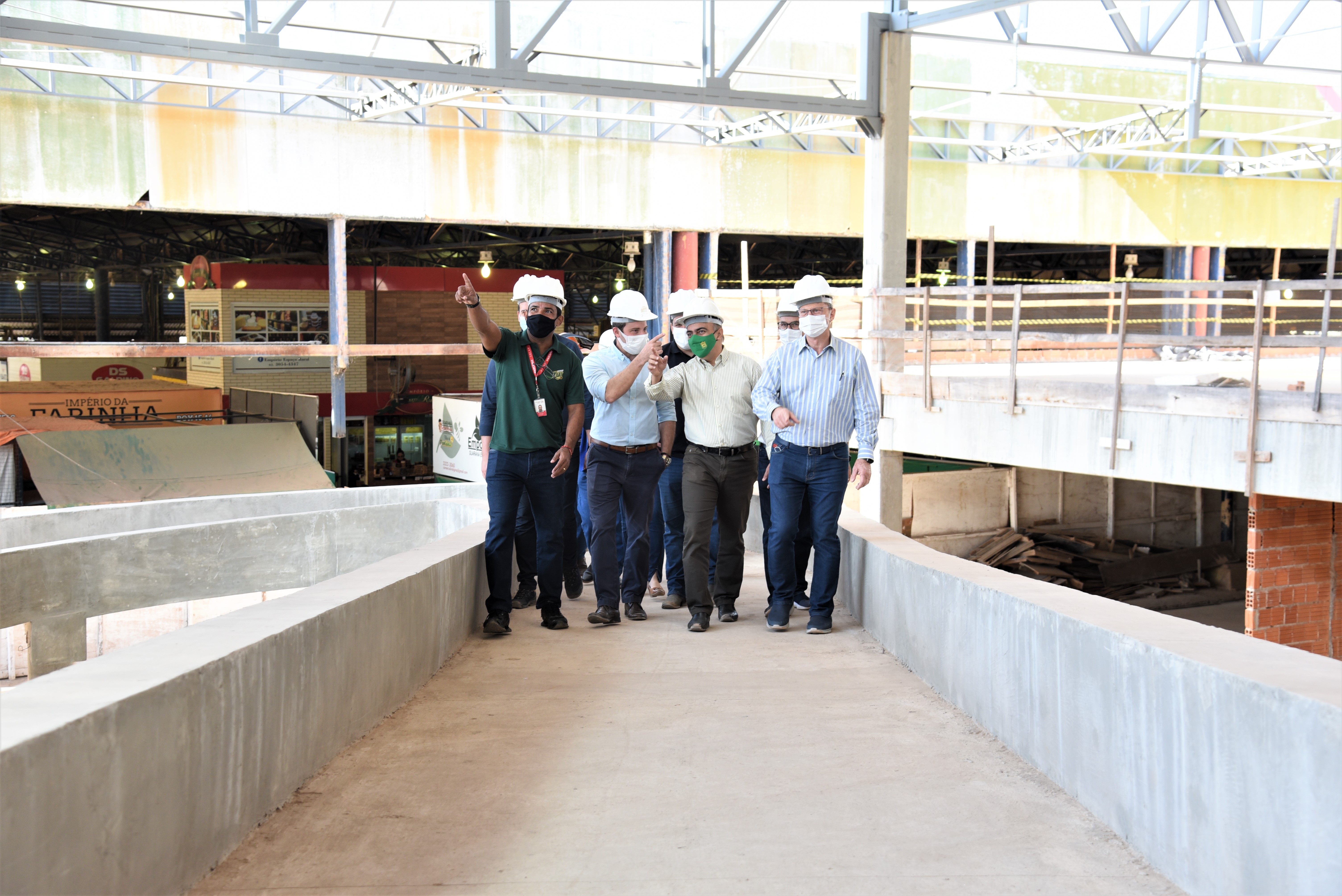 Todos com capacetes de proteção individual e é hora de adentrar ao prédio em fase de construção. A obra está dividida em duas etapas, sendo uma de ampliação e outra de revitalização. Além da reforma do espaço já existente, o mercado terá um aumento aproximado de 6,8 mil m², em relação a área ocupada atualmente, nova praça de alimentação, estacionamento com um número maior de vagas e requalificação de todo entorno. Tudo isso com o objetivo de fortalecer a característica turístico-comercial que o mercado já carrega.