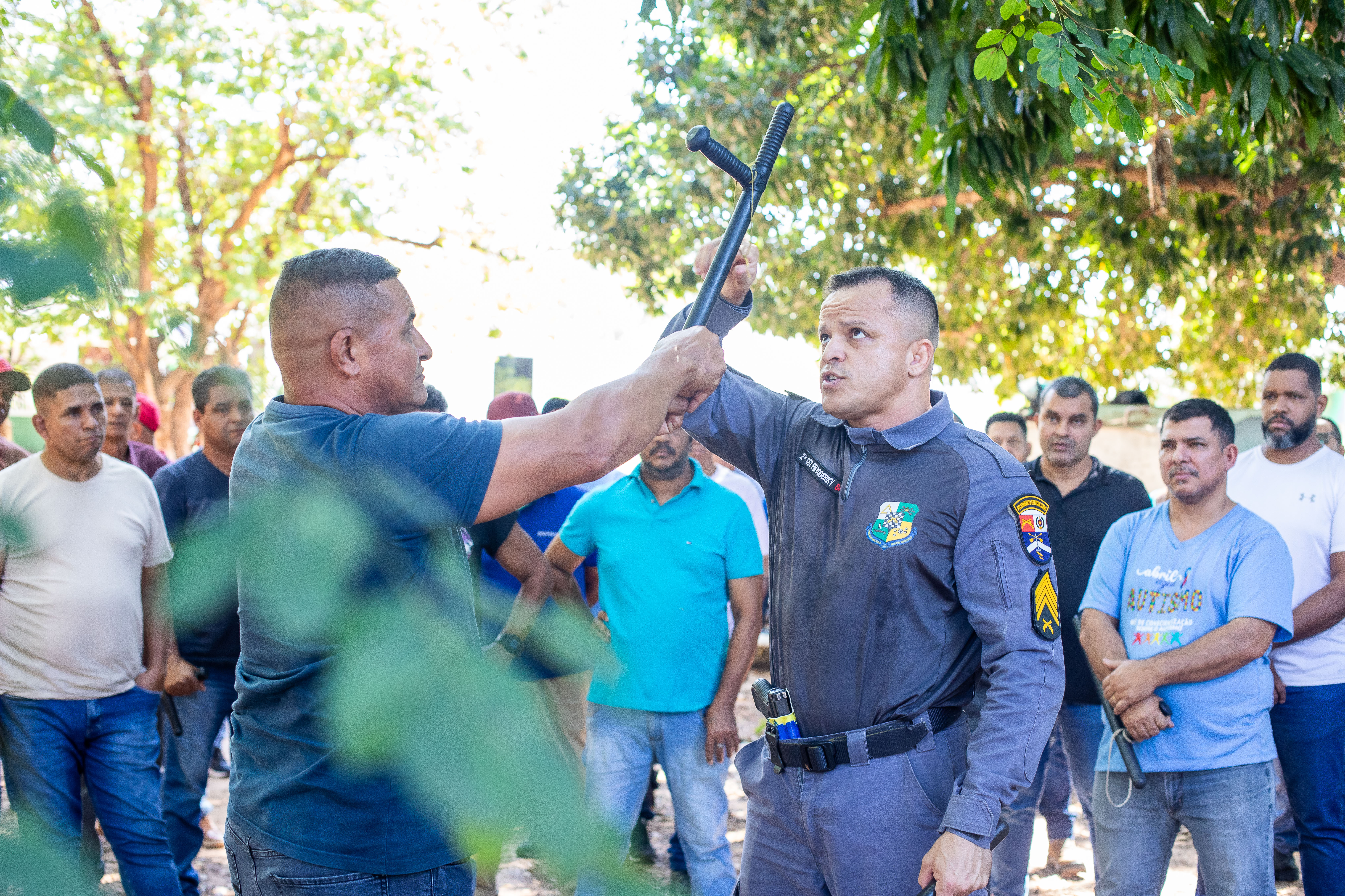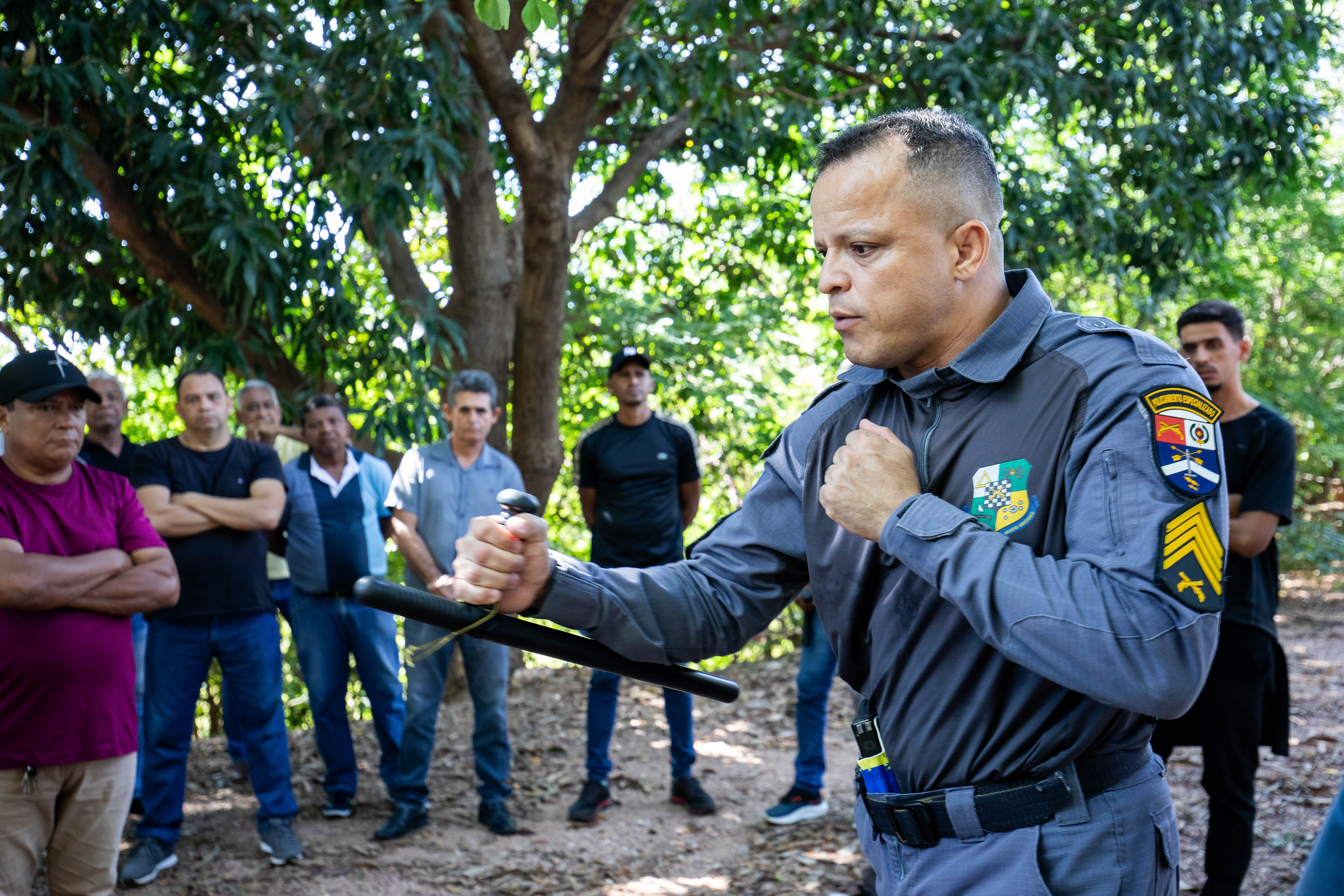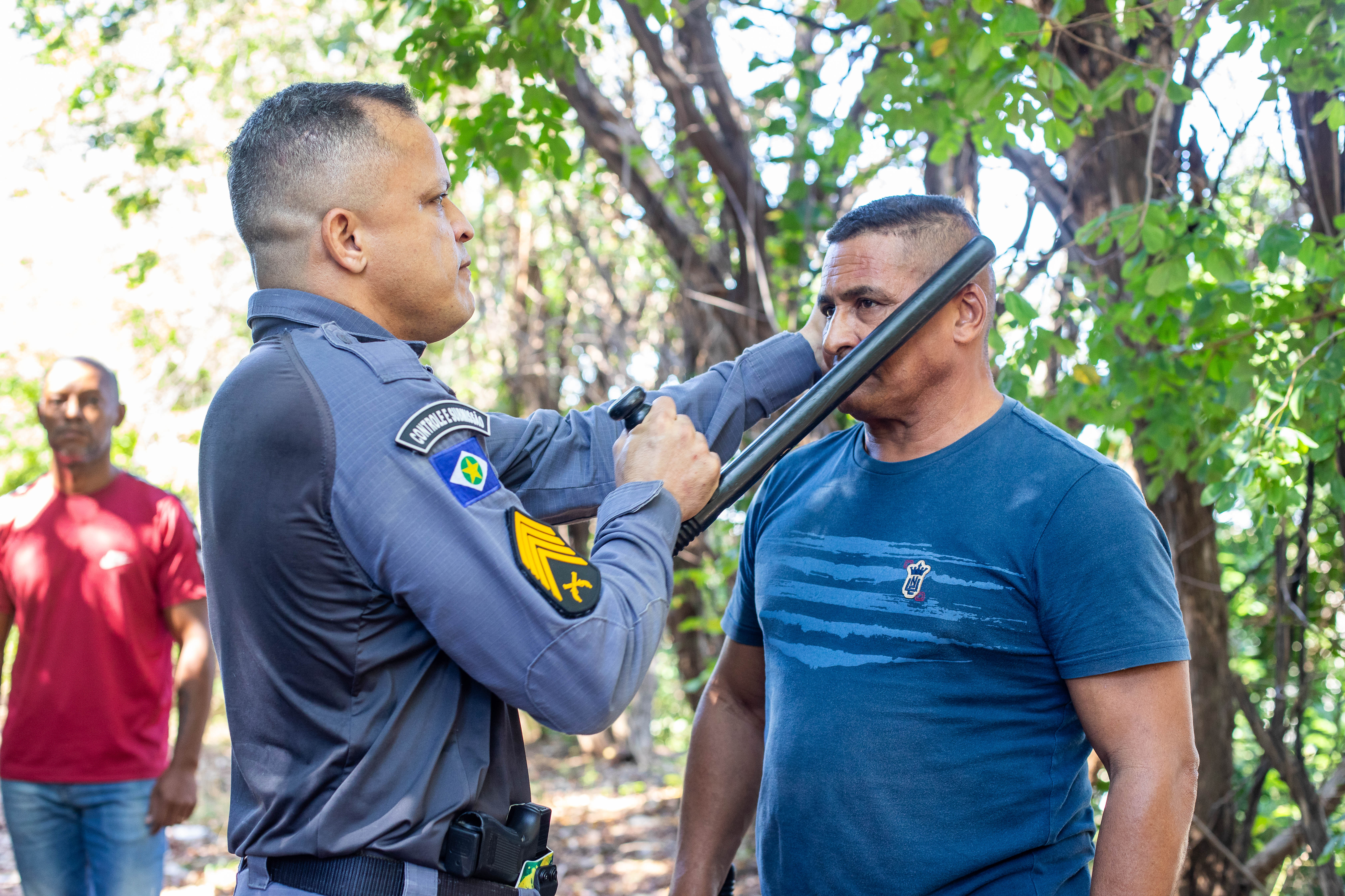 A capacitação foi conduzida por instrutores experientes, como o coronel R.R. Vitalino, diretor estratégico da Pasta, e o sargento Roderick, especialista em defesa pessoal. O treinamento abordou temas essenciais para o exercício da função, com aulas teóricas e práticas sobre o uso eficiente do bastão tonfa, técnicas de abordagem, legislação vigente, postura profissional e atuação preventiva em situações de risco e conflito.