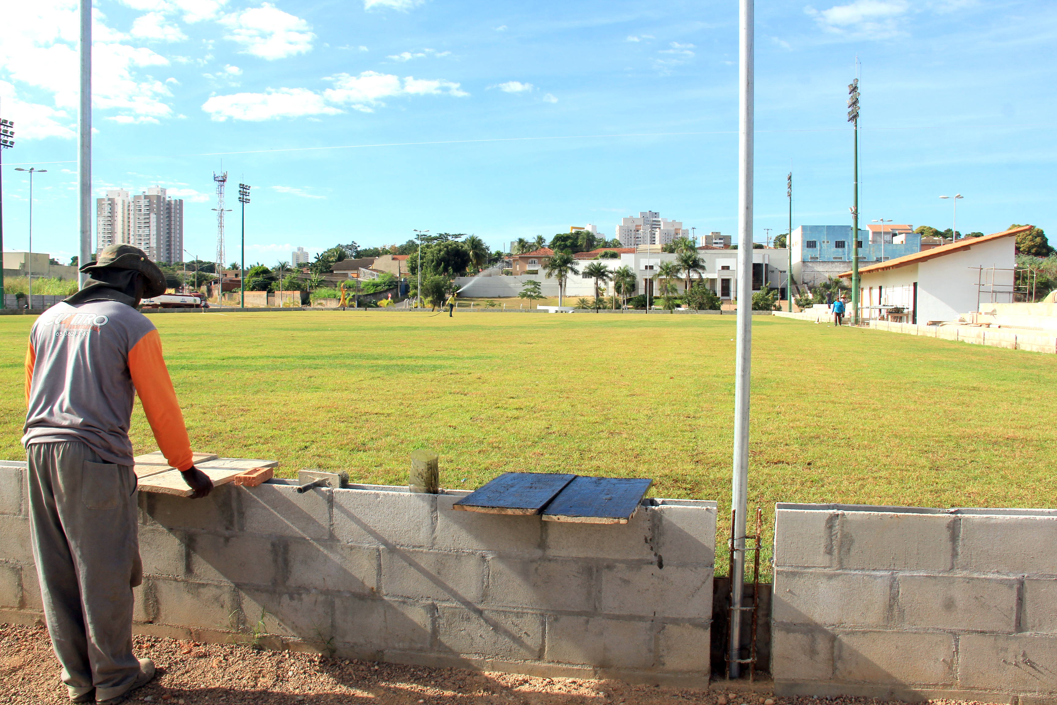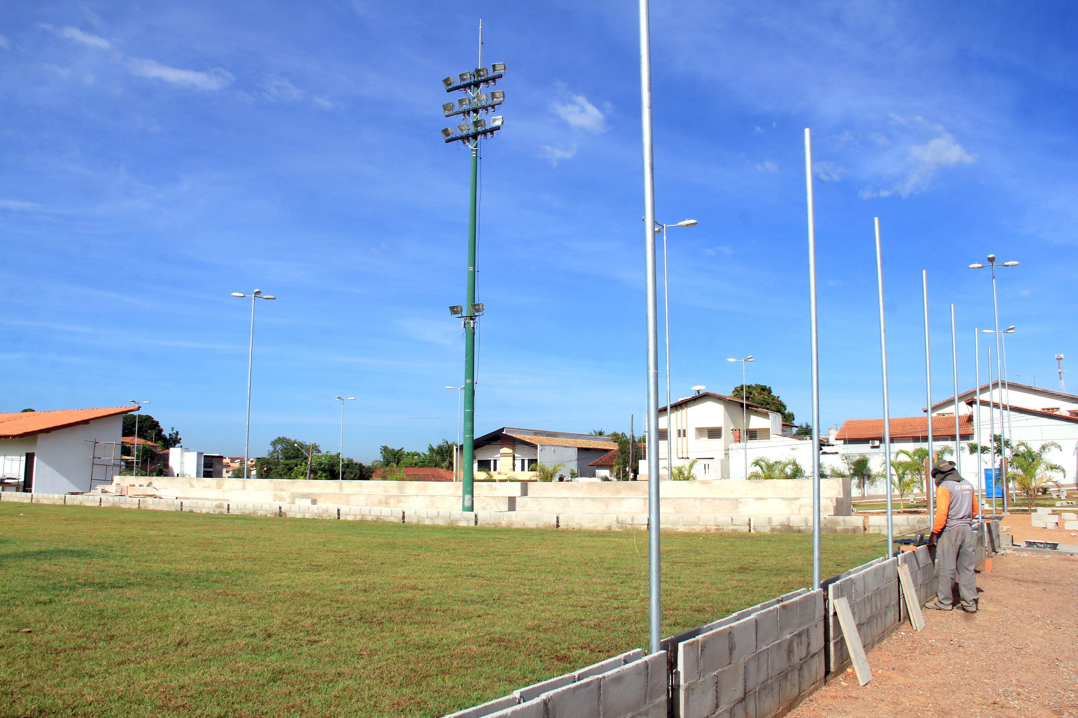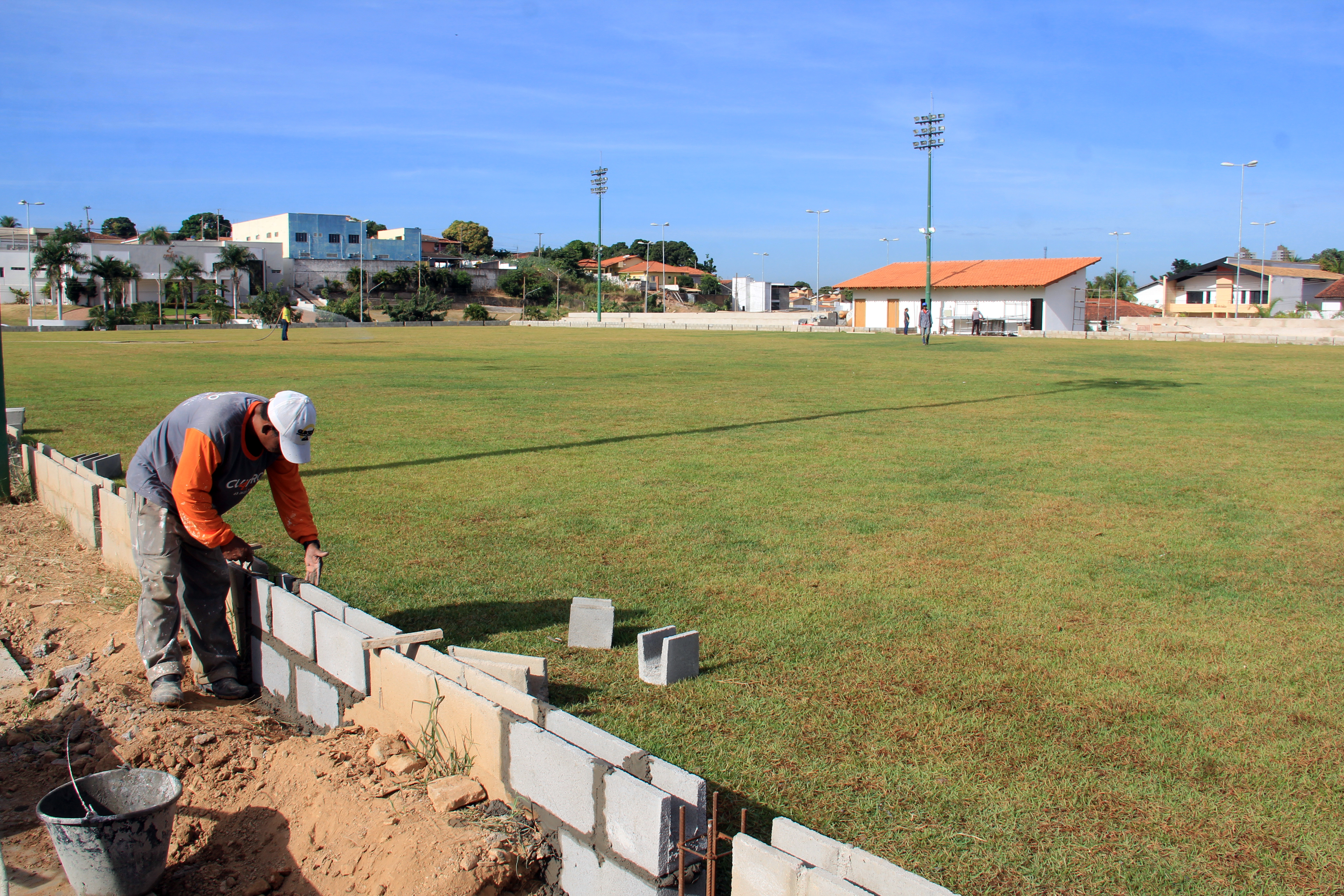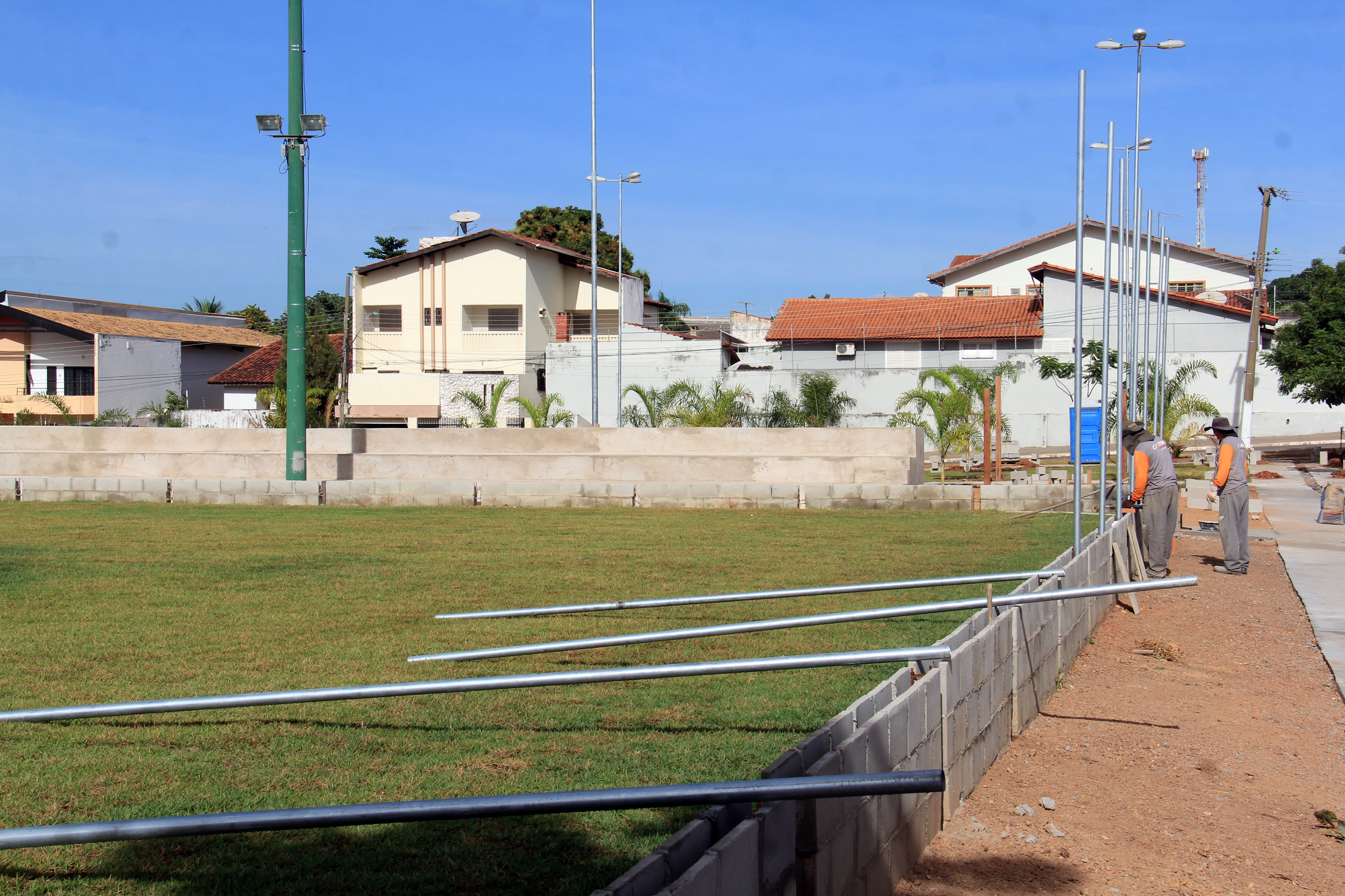 Coordenada pelas secretarias municipais de Serviços Urbanos, Obras Públicas e Meio Ambiente e Desenvolvimento Urbano, a obra conta com a atuação de uma equipe formada por mais de 20 operários. Neste momento, são executados os serviços de concretagem do solo, levantamento do alambrado do campo de futebol, instalação dos acessórios do vestiário, do banheiro público e construção de todo calçamento com piso tátil.