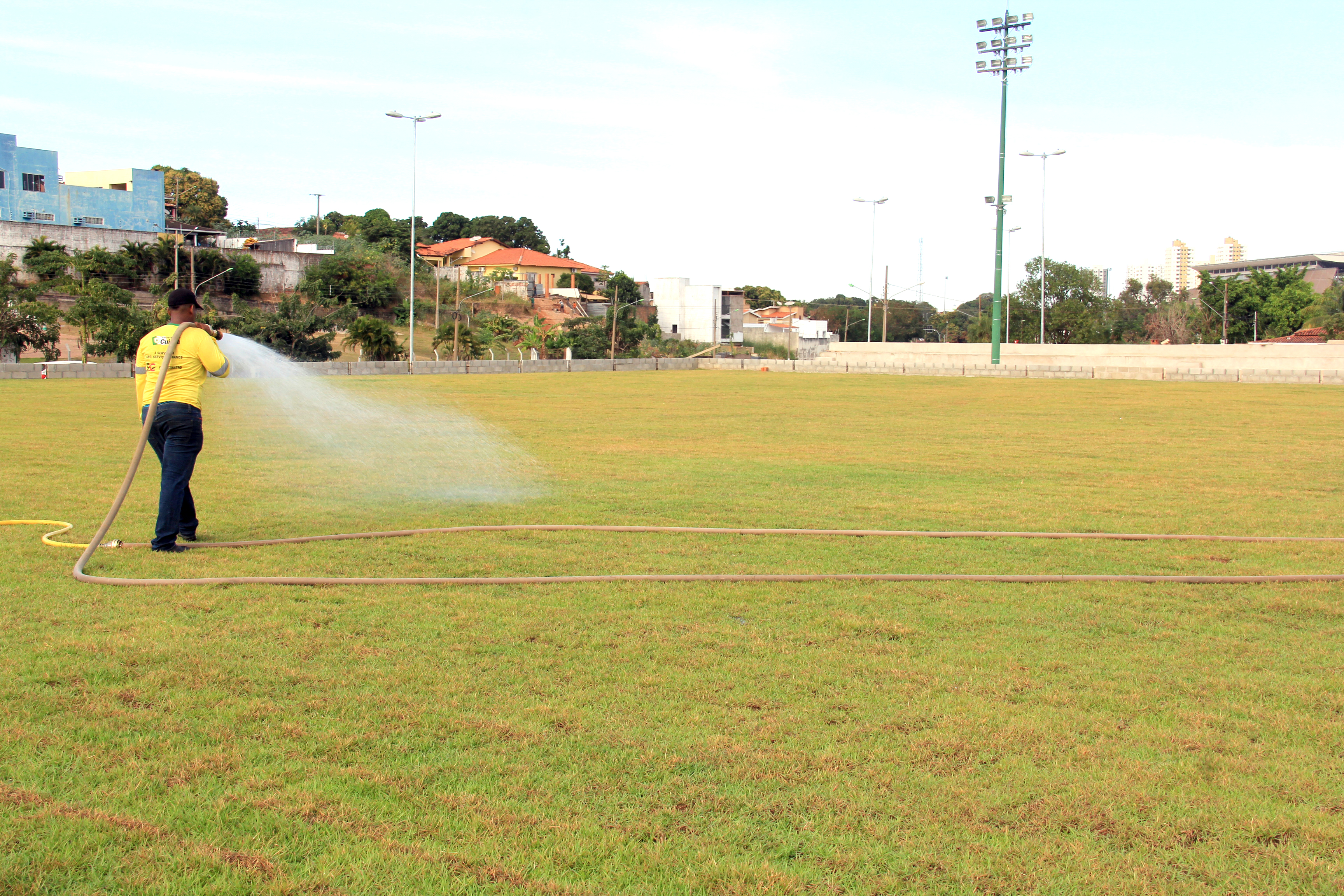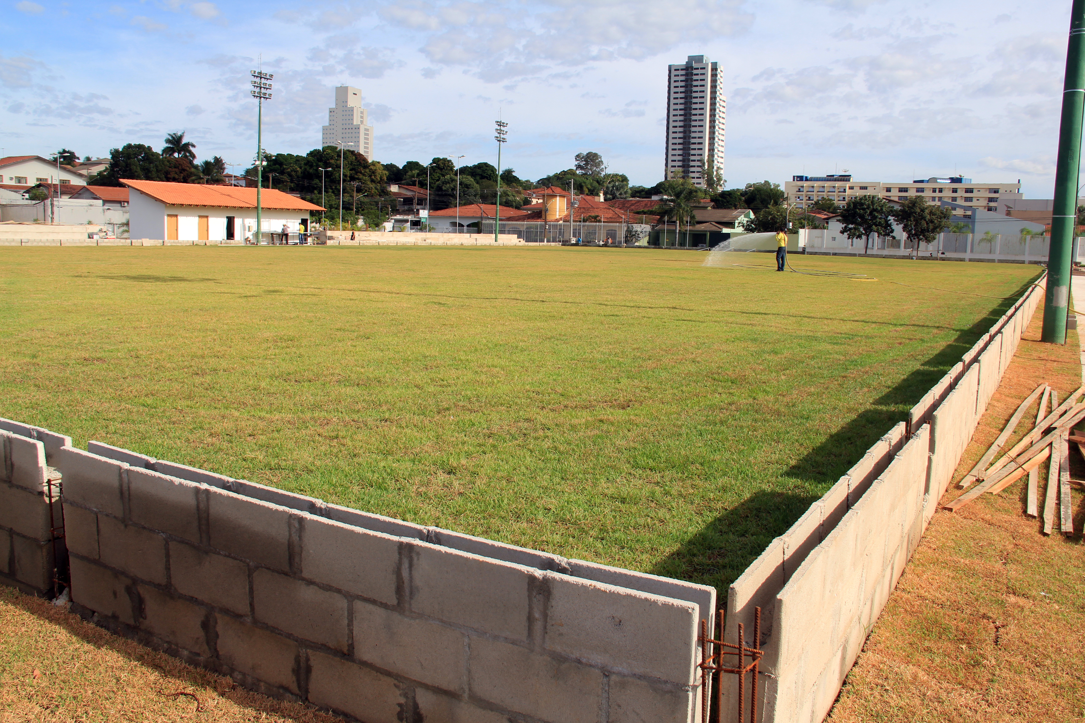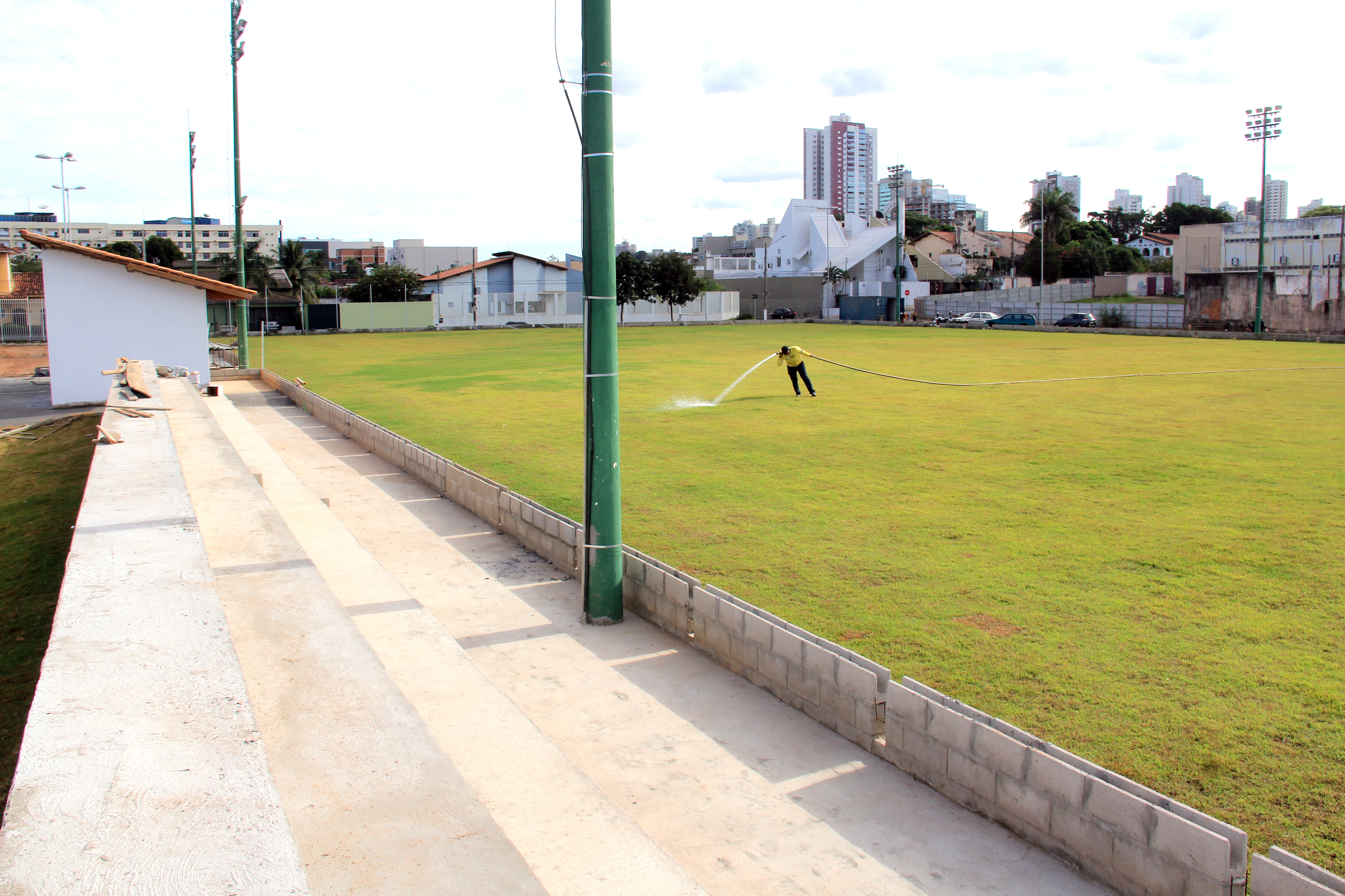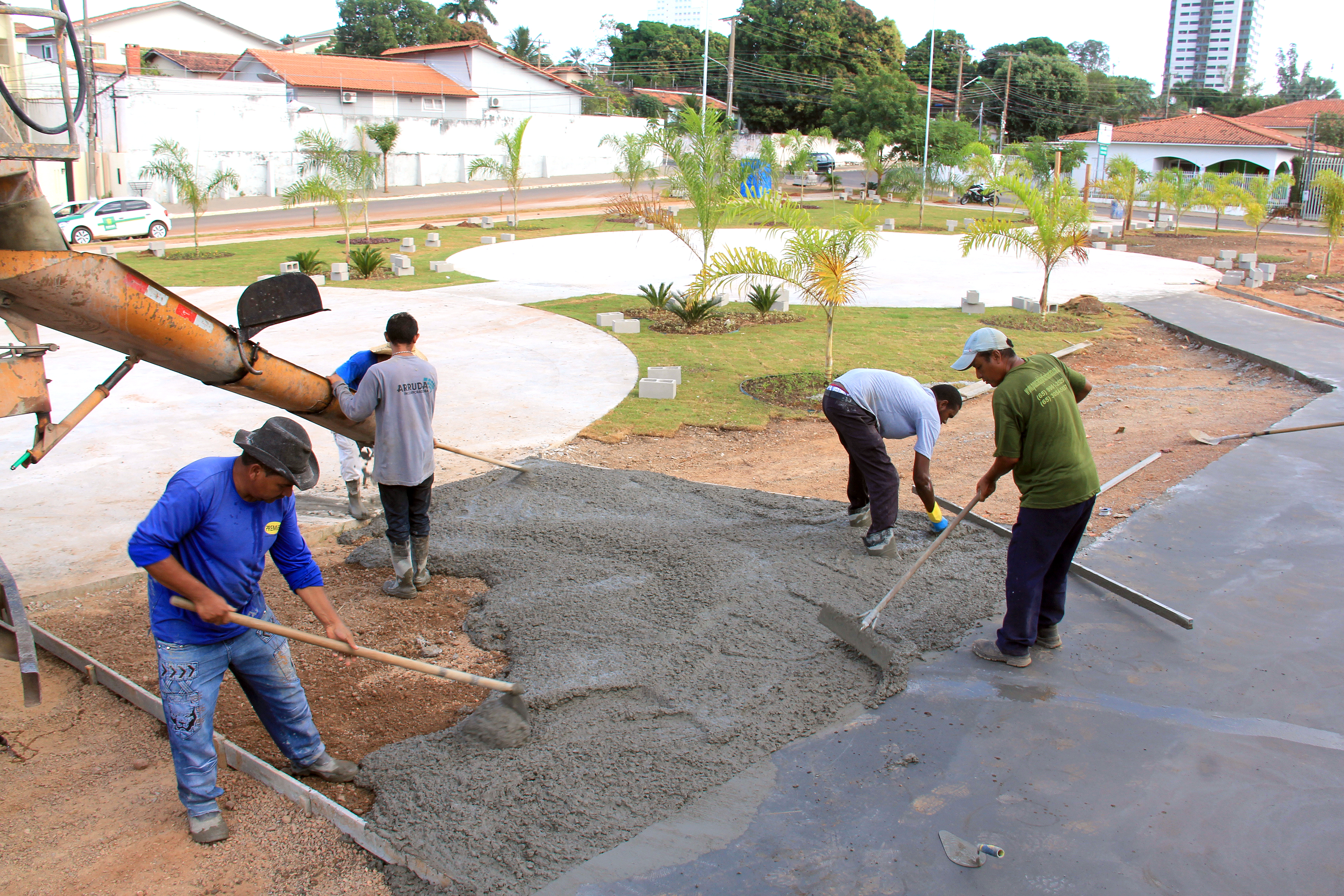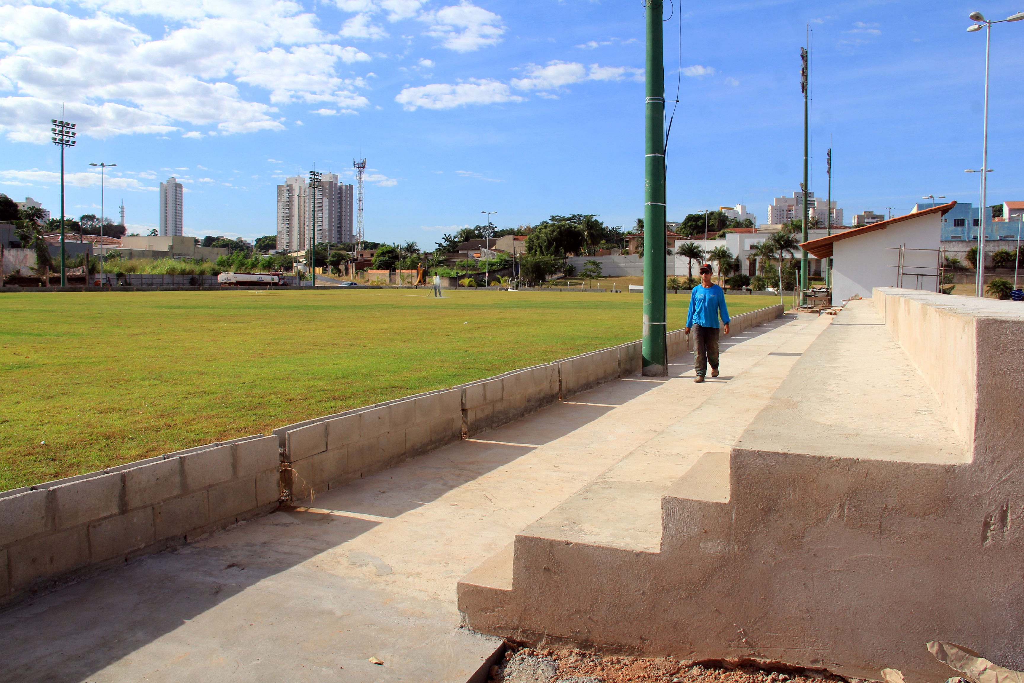 Coordenada pelas secretarias municipais de Serviços Urbanos, Obras Públicas e Meio Ambiente e Desenvolvimento Urbano, a obra conta com a atuação de uma equipe formada por mais de 20 operários. Neste momento, são executados os serviços de concretagem do solo, levantamento do alambrado do campo de futebol, instalação dos acessórios do vestiário, do banheiro público e construção de todo calçamento com piso tátil.