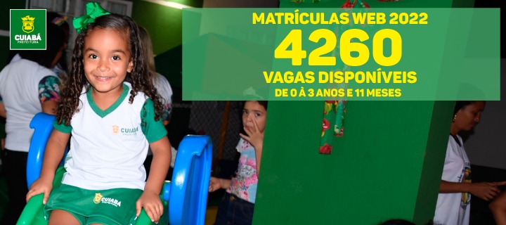A Prefeitura de Cuiabá, por meio da Secretaria Municipal de Educação, abre a partir do dia 22/11 até o dia 03/12 a etapa de matrícula para novos alunos,na faixa etária de 0 a 3 anos e 11 meses nas unidades educacionais da rede pública municipal ensino. Os pais ou responsáveis deverão acessar o link Matrícula Web, no site da Prefeitura de Cuiabá, a partir das 8 horas, preencher o formulário de informações e a solicitação de matrícula.
