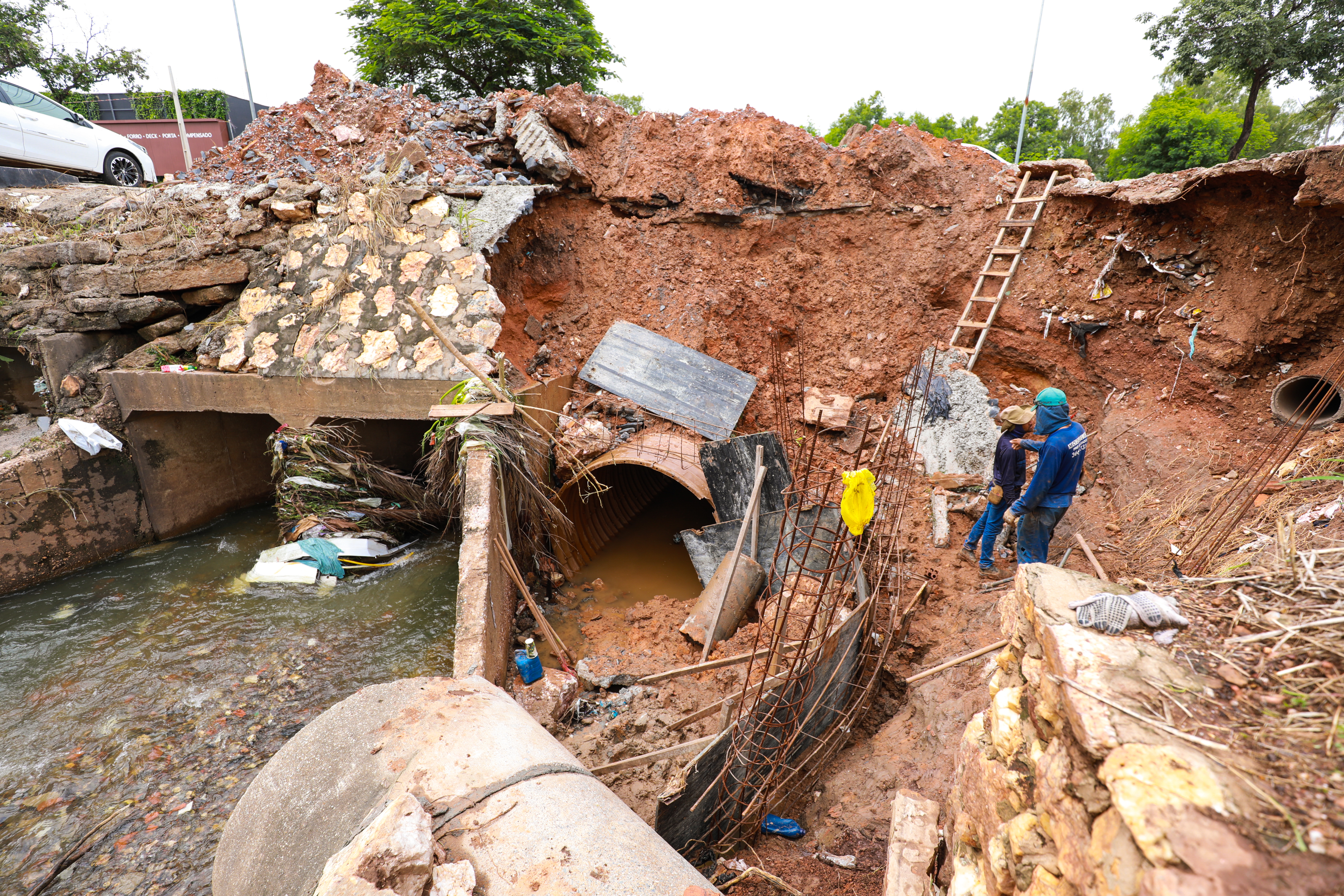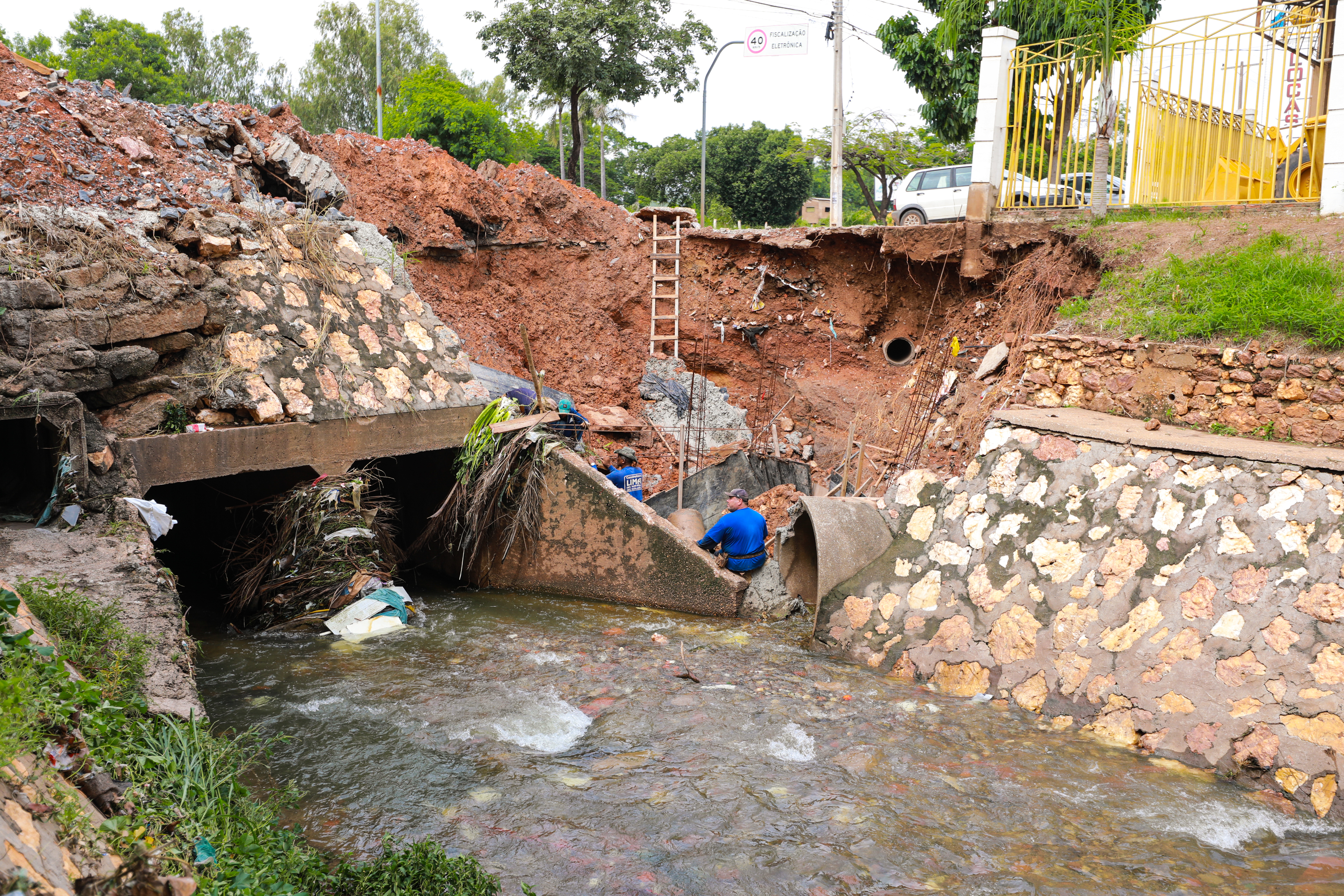 “Tem outro bueiro no mesmo local, mas foi tampado com concreto pela Secretaria Municipal de Obras, na gestão anterior. Se pelo menos ele estivesse funcionando, possivelmente o estrago seria bem menor”, explicou o presidente do bairro São Mateus, Joeder Silva Barbalho, conhecido como Lobão.