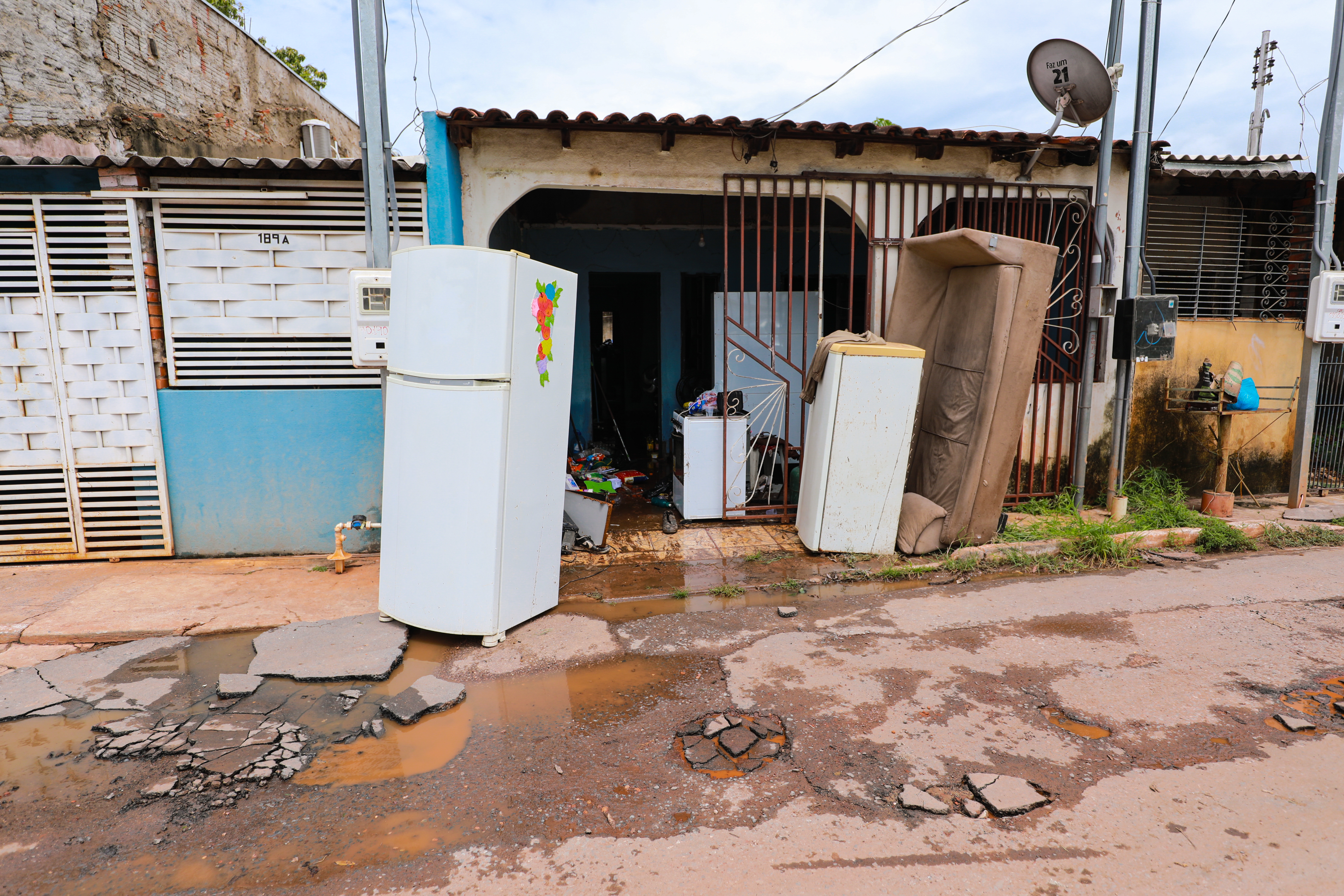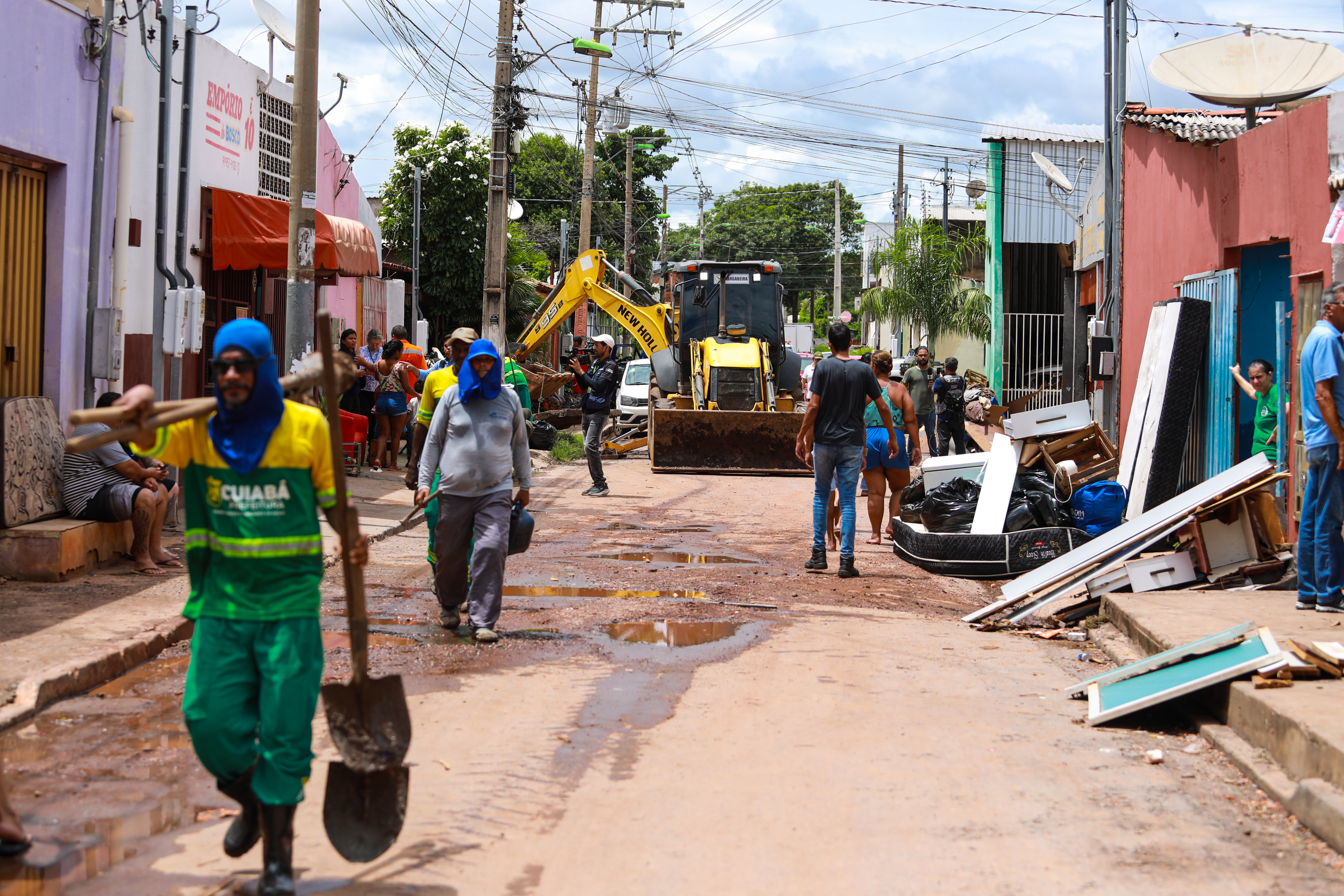 Equipes da Empresa Cuiabana de Zeladoria e Serviços Urbanos (Limpurb) também foram mobilizadas para recolher os objetos perdidos, incluindo eletroeletrônicos, geladeiras, colchões, roupas, dentre outros materiais, colocados para fora das casas.