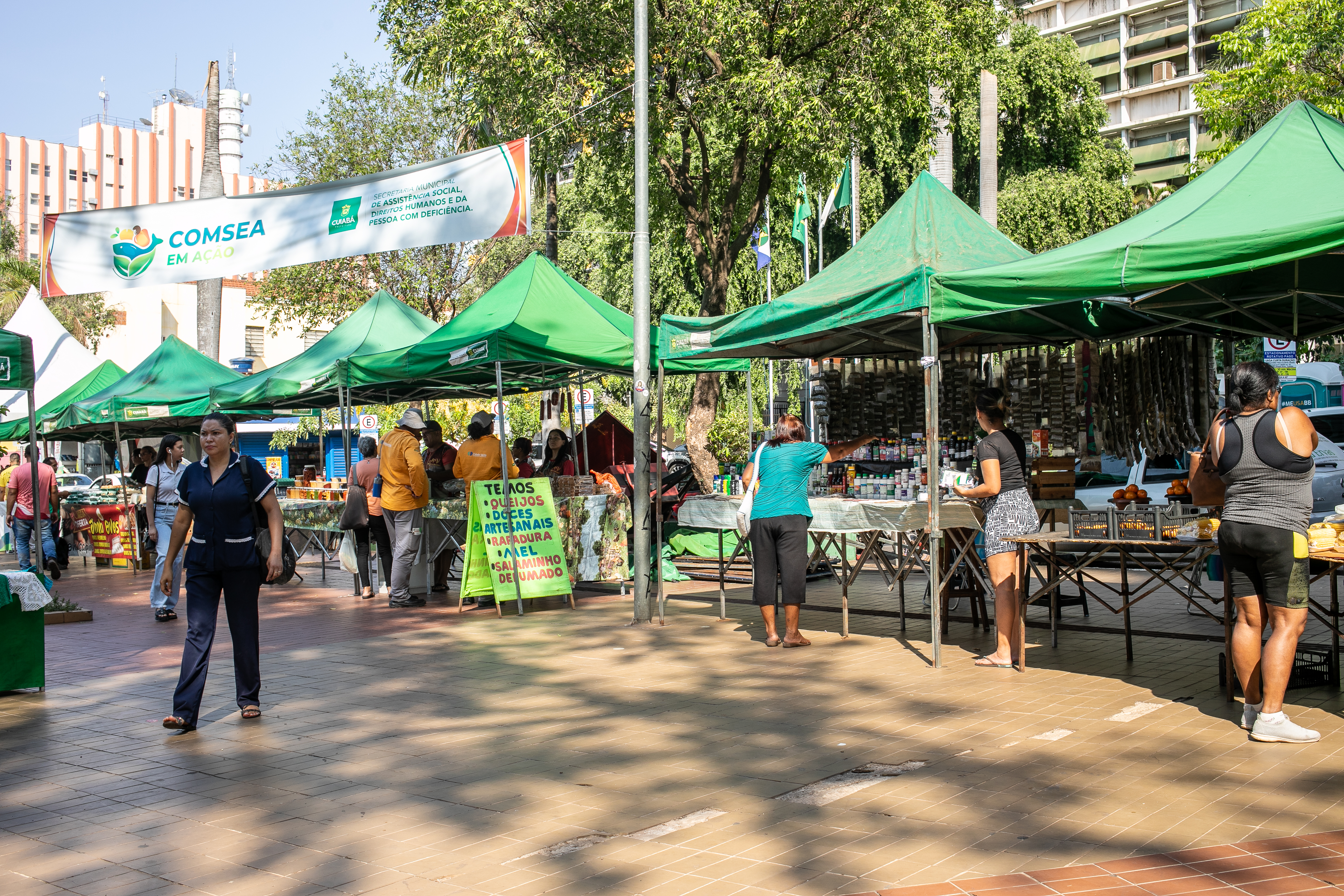 Em uma ação conjunta da Prefeitura de Cuiabá, por meio das Secretarias Municipais de Assistência Social, Direitos Humanos e da Pessoa com Deficiência, da Agricultura, Trabalho e Desenvolvimento Econômico, e do Conselho Municipal de Segurança Alimentar, o Dia Mundial da Alimentação foi celebrado com a tradicional Feira dos Produtores de Pequena Propriedade da Agricultura Familiar, nesta quarta-feira (09), na Praça Alencastro.