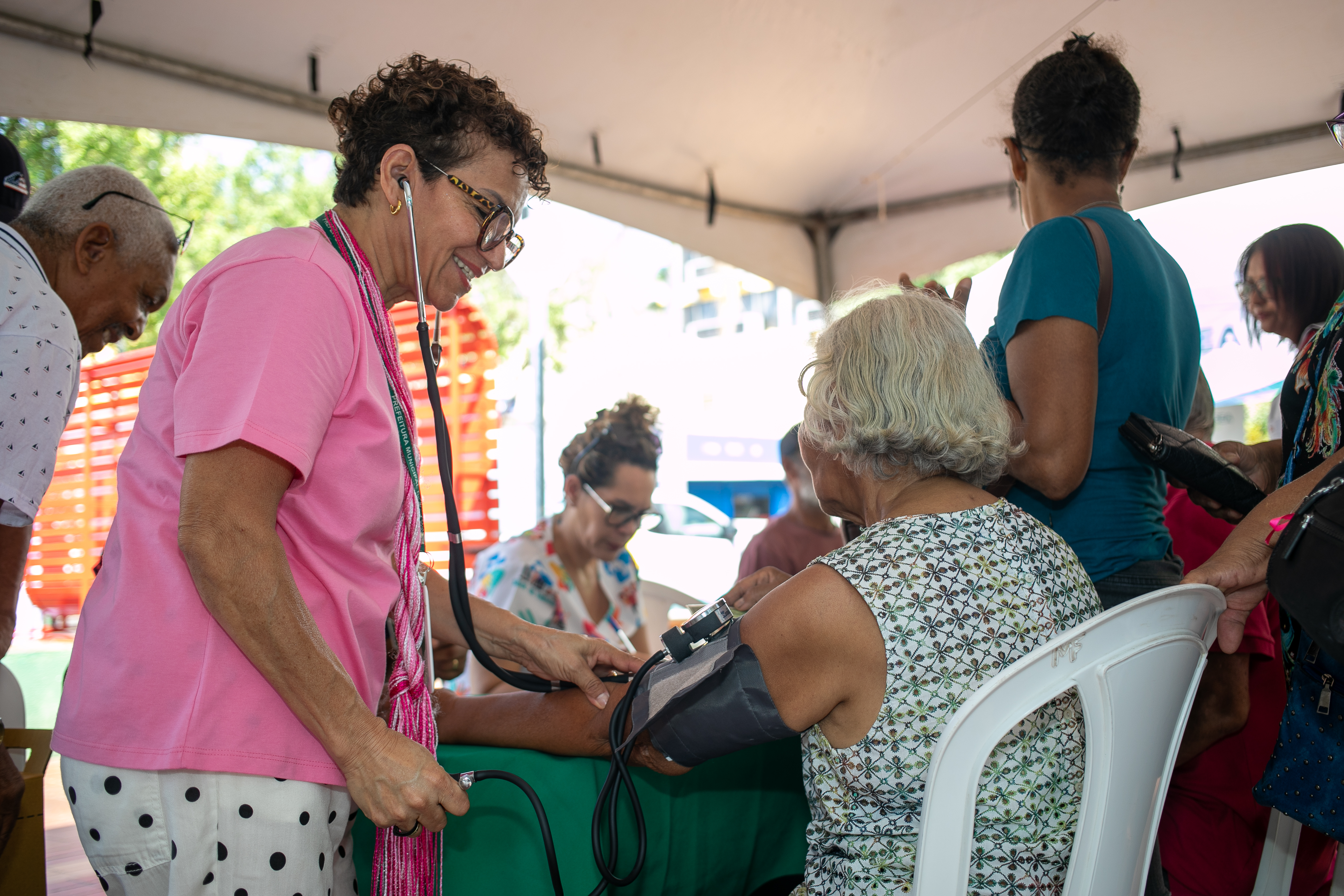 O encontro, realizado uma vez ao mês, contou com a participação de representantes da área da Saúde, que ofereceram serviços como aferição de pressão arterial e auriculoterapia, além da van do programa Sine da Gente, que disponibilizou oportunidades de trabalho.