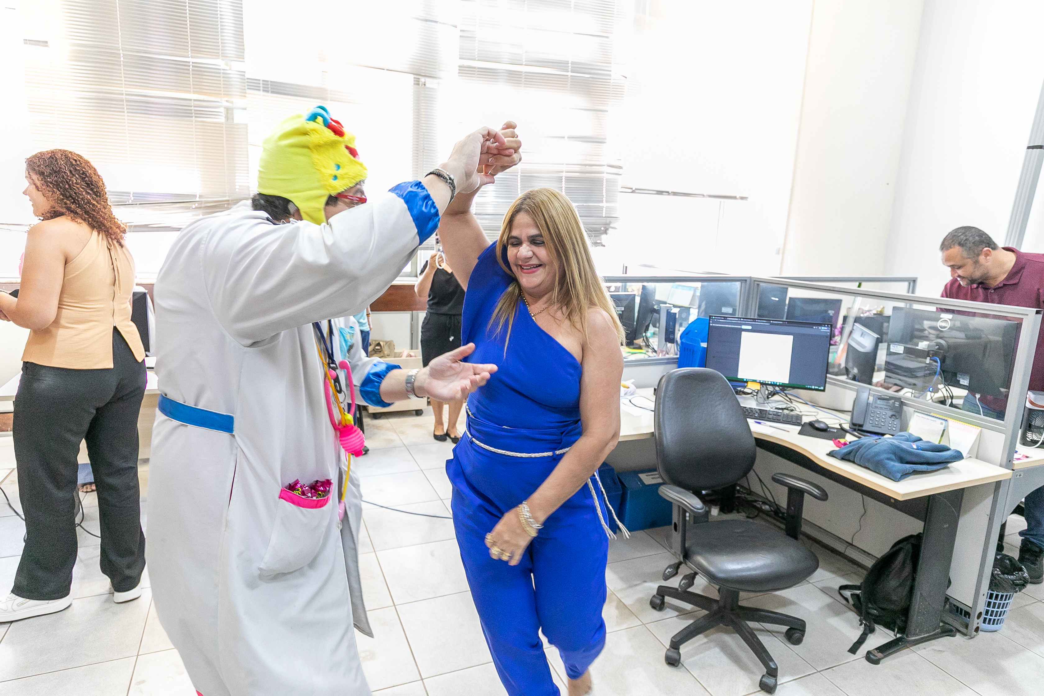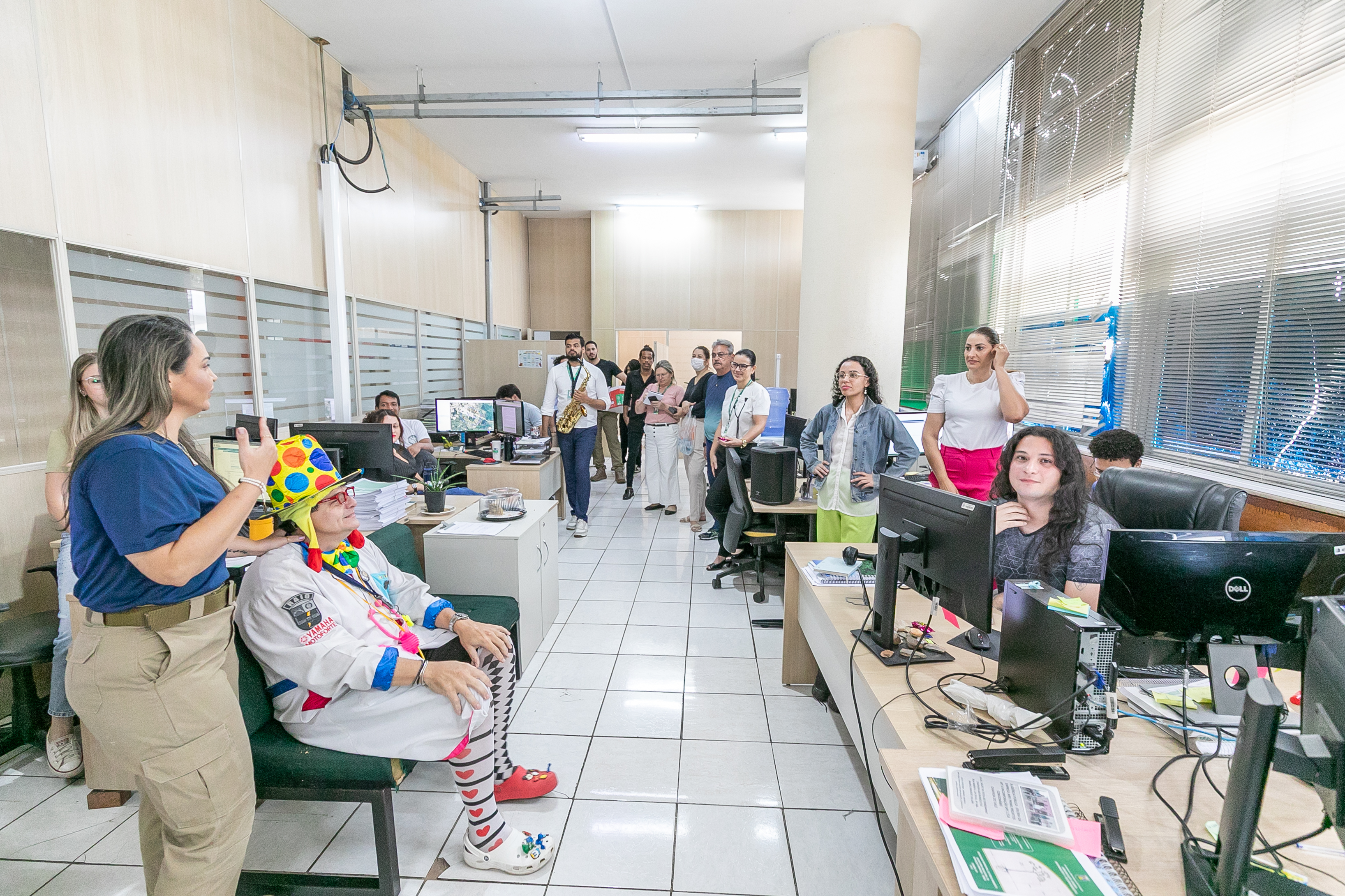 Durante a ação, os servidores participaram de atividades de integração e descontração com o palhaço Pimpolho, reconhecido pelo trabalho social que realiza junto ao Hospital de Câncer de Cuiabá; o professor de dança de salão da academia Criart, Edevaldo Pedroso de Souza; e o saxofonista Dagnel Renner Enoré Silva, servidor da Secretaria Municipal de Assistência Social, Direitos Humanos e Inclusão.