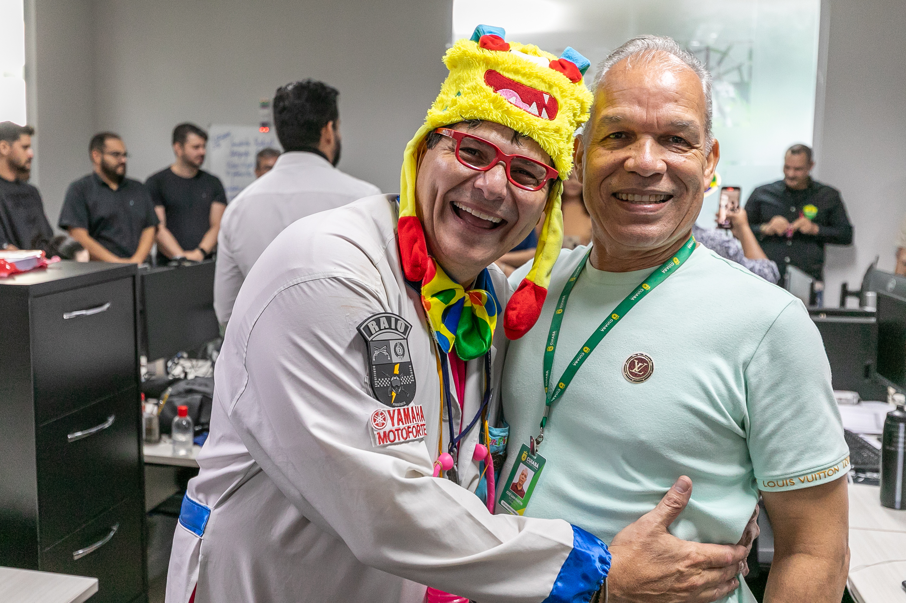 “Muitas vezes as dificuldades do trabalho e os dias tensos sobrecarregam. Hoje é um dia diferente, de comemoração, mas a mensagem não muda: a gente tem que manter a união entre os colegas para que o resultado dê certo. Para mim, está sendo uma grande experiência fazer o que gosto, que é levar alegria às pessoas. Eu nunca tinha entrado na Prefeitura de Cuiabá e hoje estou peregrinando por todos os andares”, declarou Pimpolho.