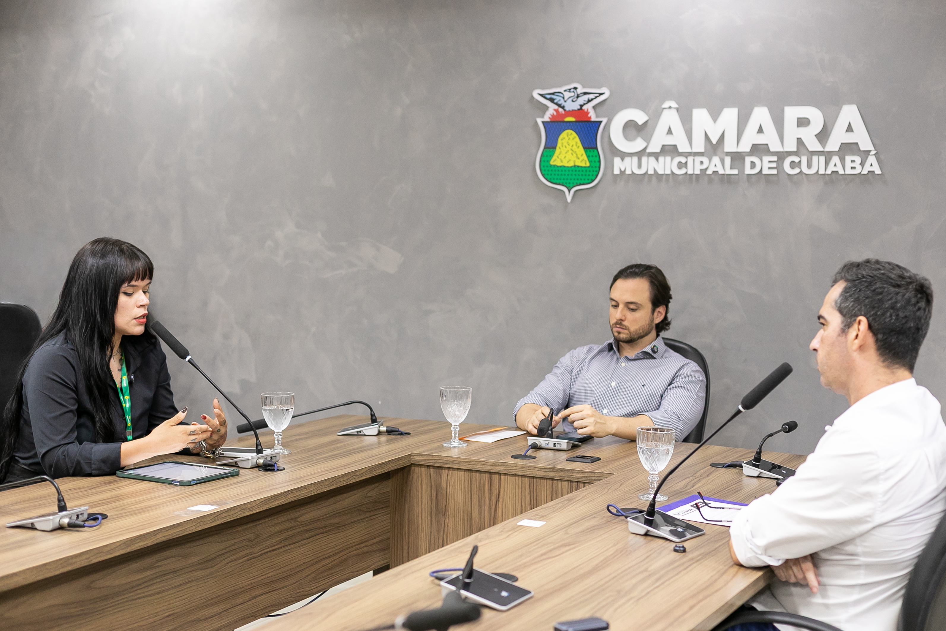 A secretária de Ordem Pública da Prefeitura de Cuiabá, Juliana Palhares, e a diretora de Bem-Estar Animal, Morgana Thereza Ens, participaram na manhã desta sexta-feira (19) de reunião da Comissão de Defesa dos Direitos dos Animais da Câmara Municipal, a convite dos vereadores Daniel Monteiro (Republicanos) e Tenente Coronel Dias (Cidadania).