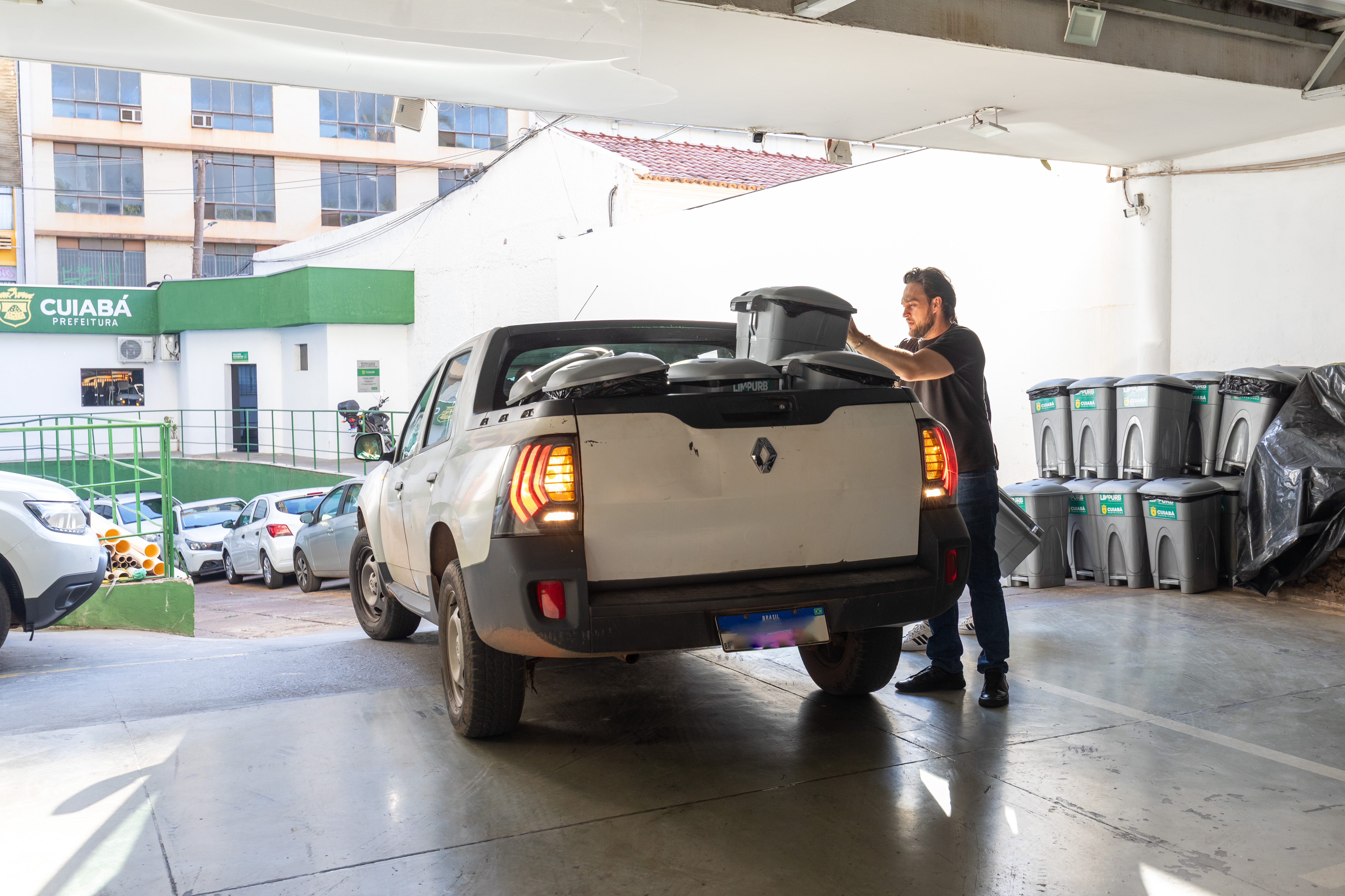 A Prefeitura de Cuiabá, por meio da Empresa Cuiabana de Zeladoria e Serviços Urbanos (Limpurb), realizou nesta segunda-feira (10) a entrega de 250 lixeiras de 60 litros a comerciantes e vendedores ambulantes que atuam no Centro Histórico da capital.