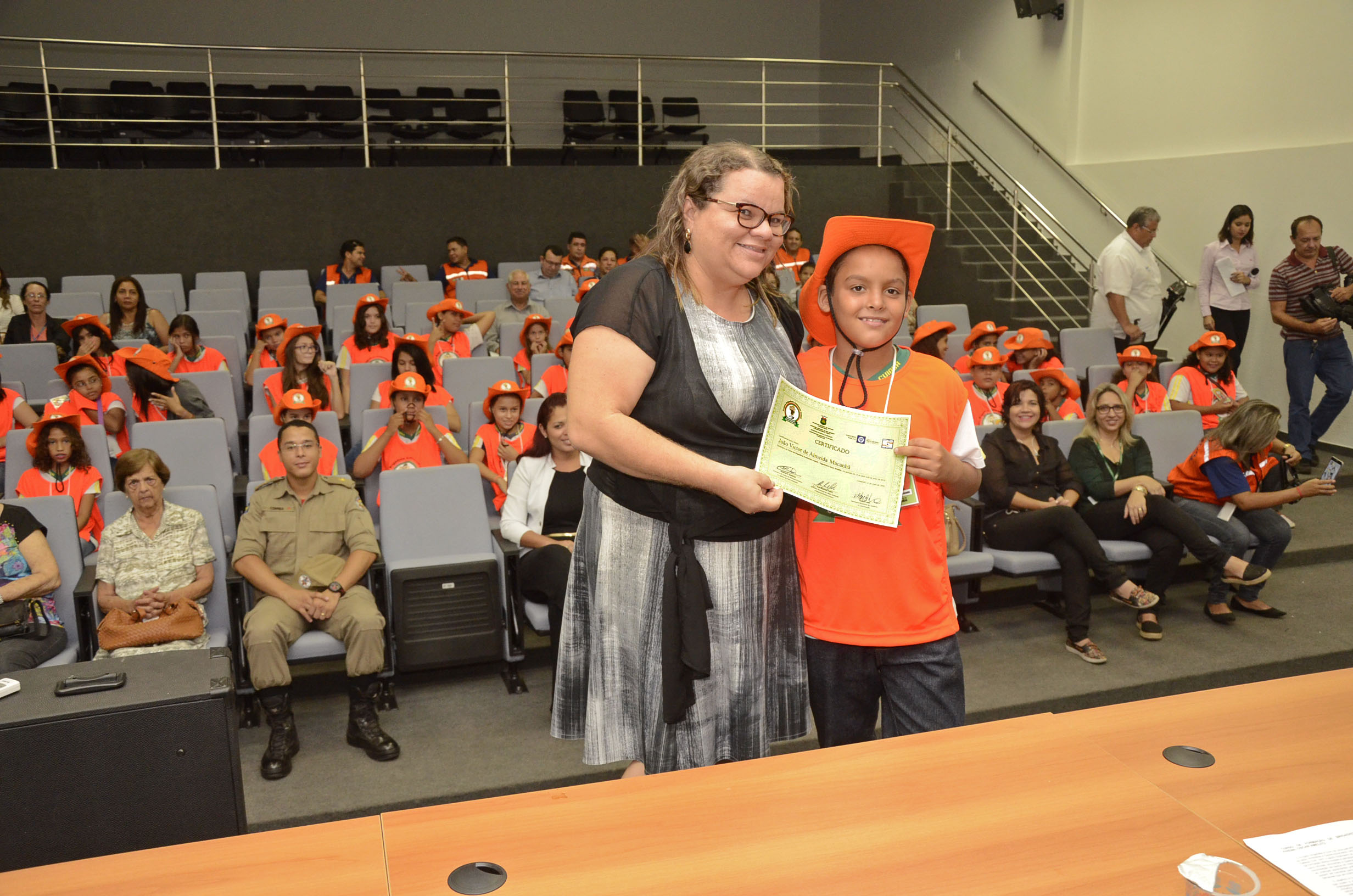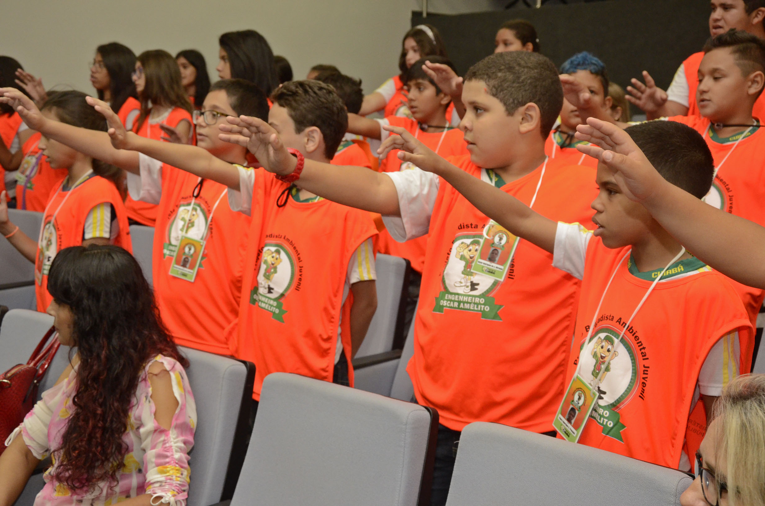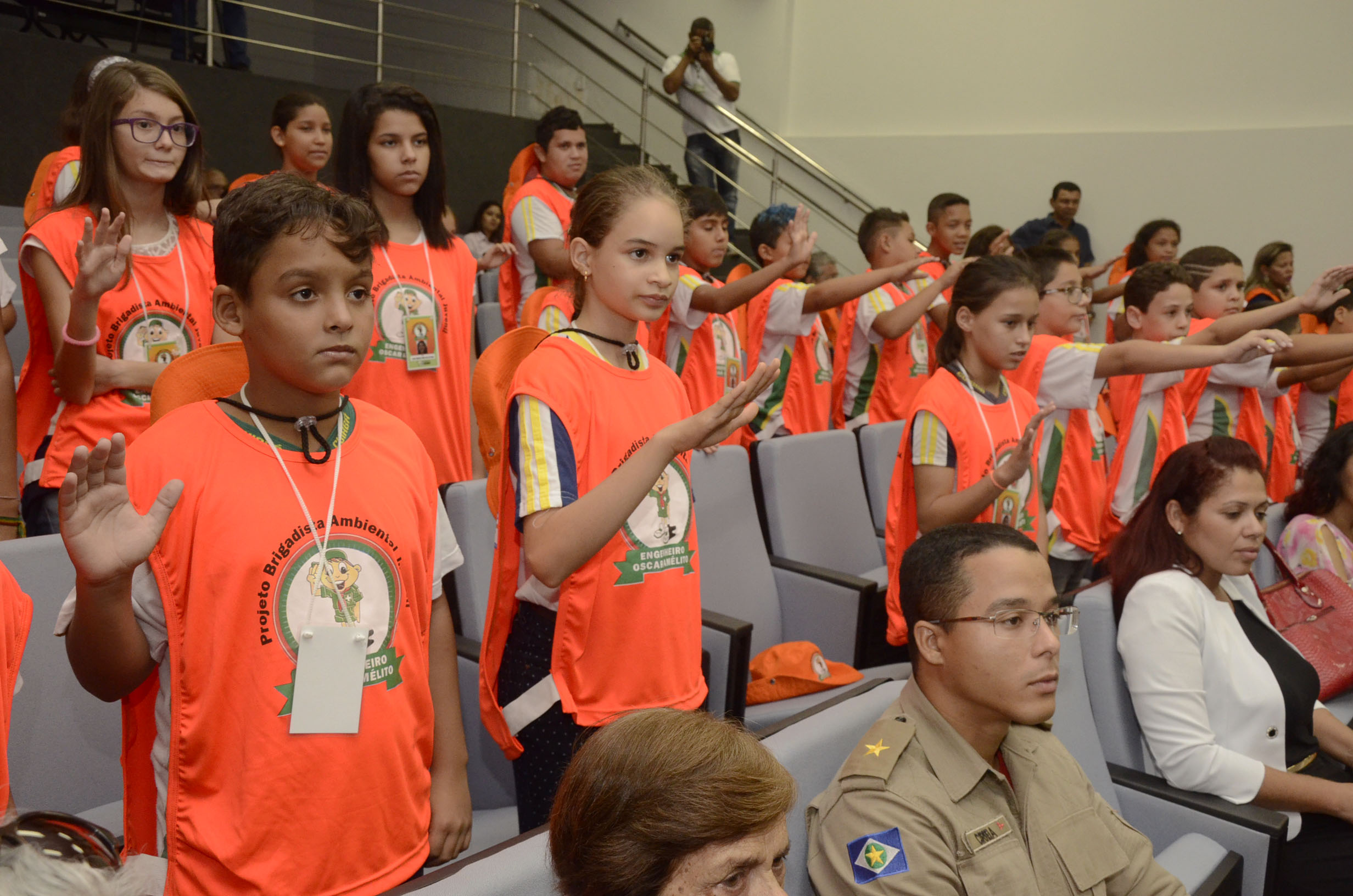 As 40 crianças da rede municipal de ensino participantes da primeira Formação de Brigadistas Oscar Amelito receberam a honraria na tarde desta quarta-feira (11). A partir de agora, os jovens estudantes passam a ser chamados de ‘brigadistas’ e ficam responsáveis por difundir o conhecimento adquirido ao longo do curso para os colegas de suas respectivas escolas, além de atuarem lado a lado da gestão pública na proteção e conservação do meio ambiente com pequenas e fundamentais posturas ecológicas.