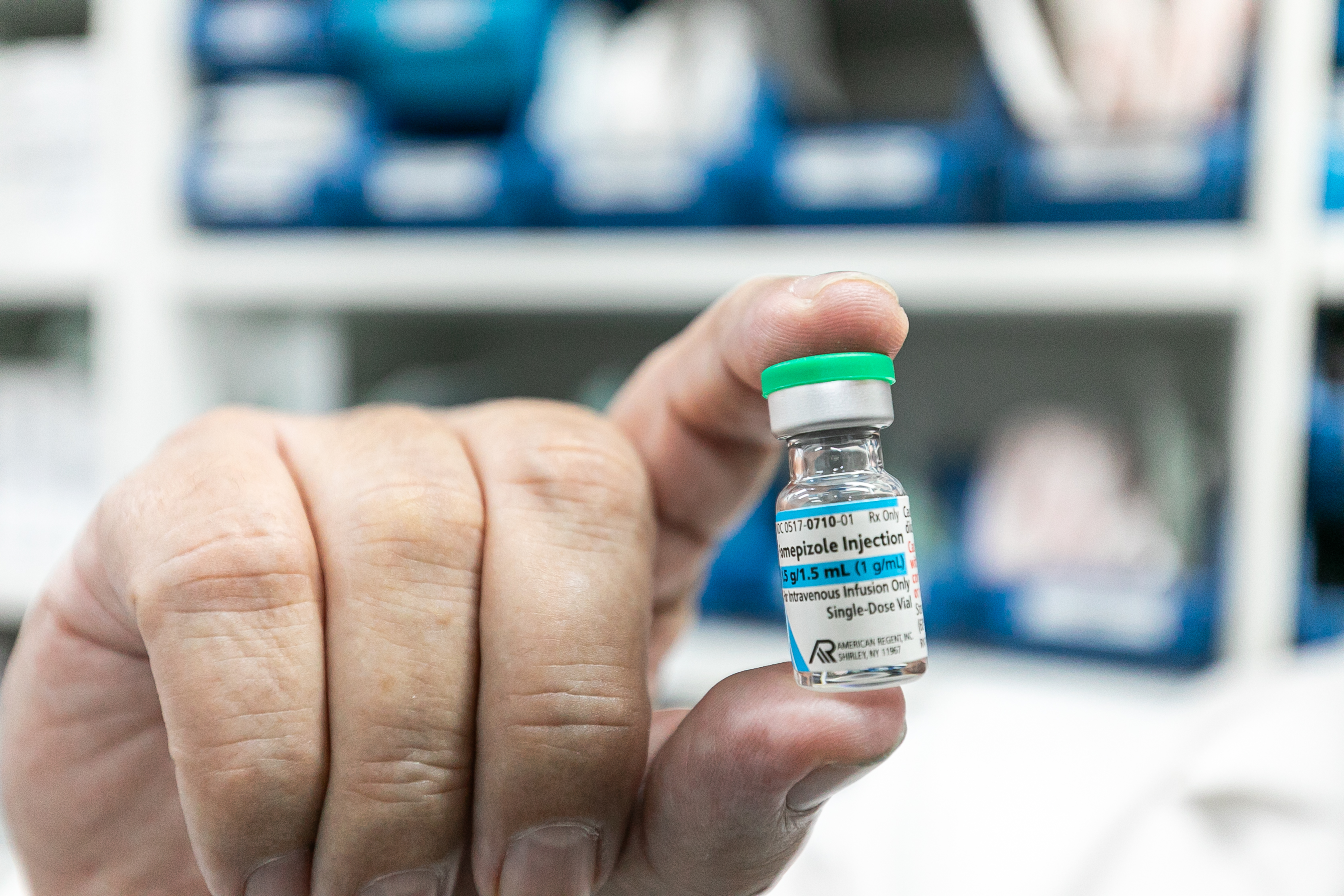 Os antídotos disponíveis são o etanol (álcool etílico a 100%) e o Femopzol, este último recentemente distribuído pelo Ministério da Saúde. Cuiabá recebeu 28 frascos do Femepizol, cada um com 1,5 ml, destinados a casos com suspeita muito forte de intoxicação, seguindo critérios clínicos rigorosos.