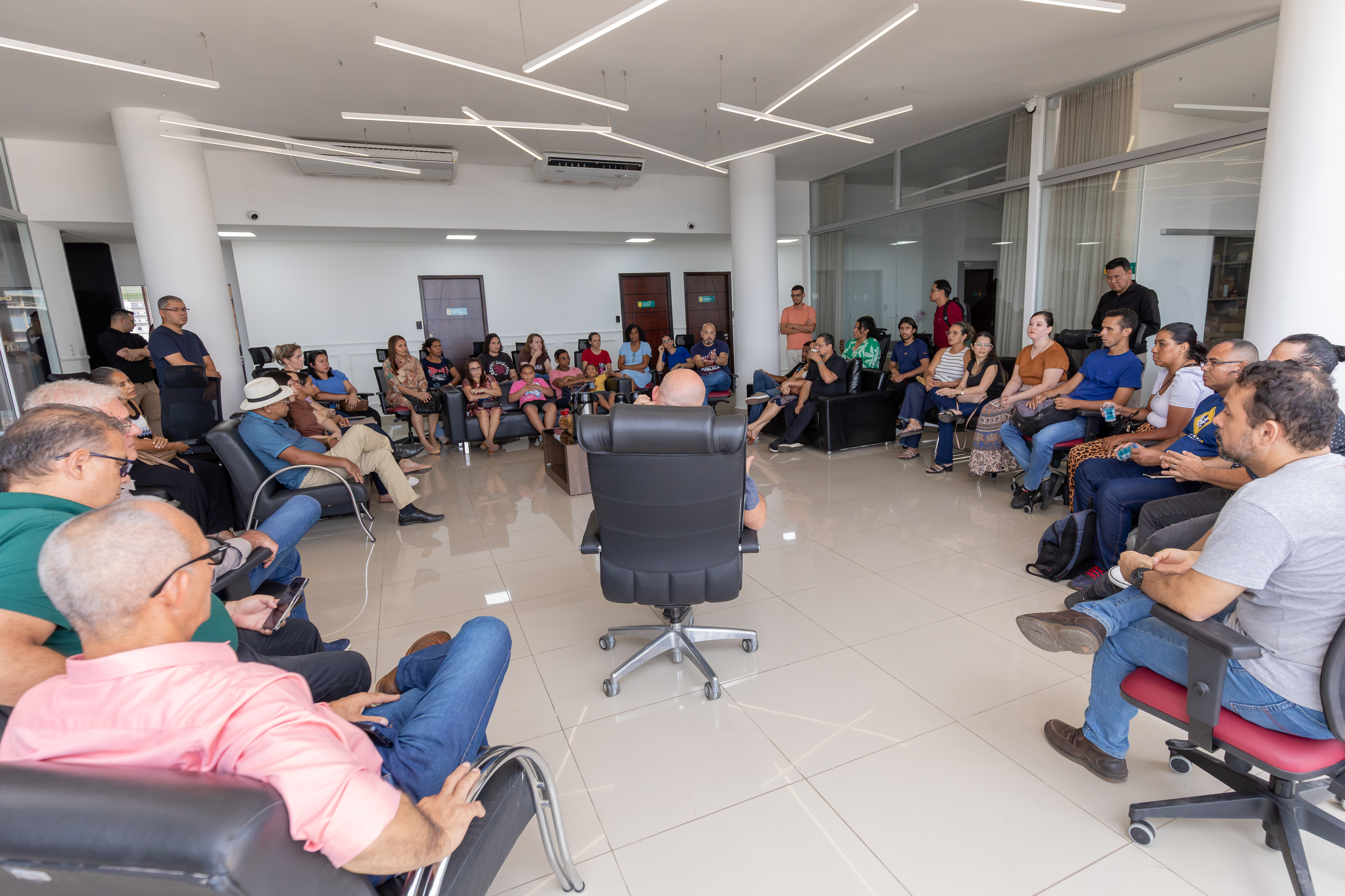 Participaram da reunião o vereador Mário Nadaf, a secretária de Comunicação, Ana Karla, a presidente do Sintep de Cuiabá, Marivone Pereira, e sua equipe, que somavam quase 50 professores da rede municipal.
