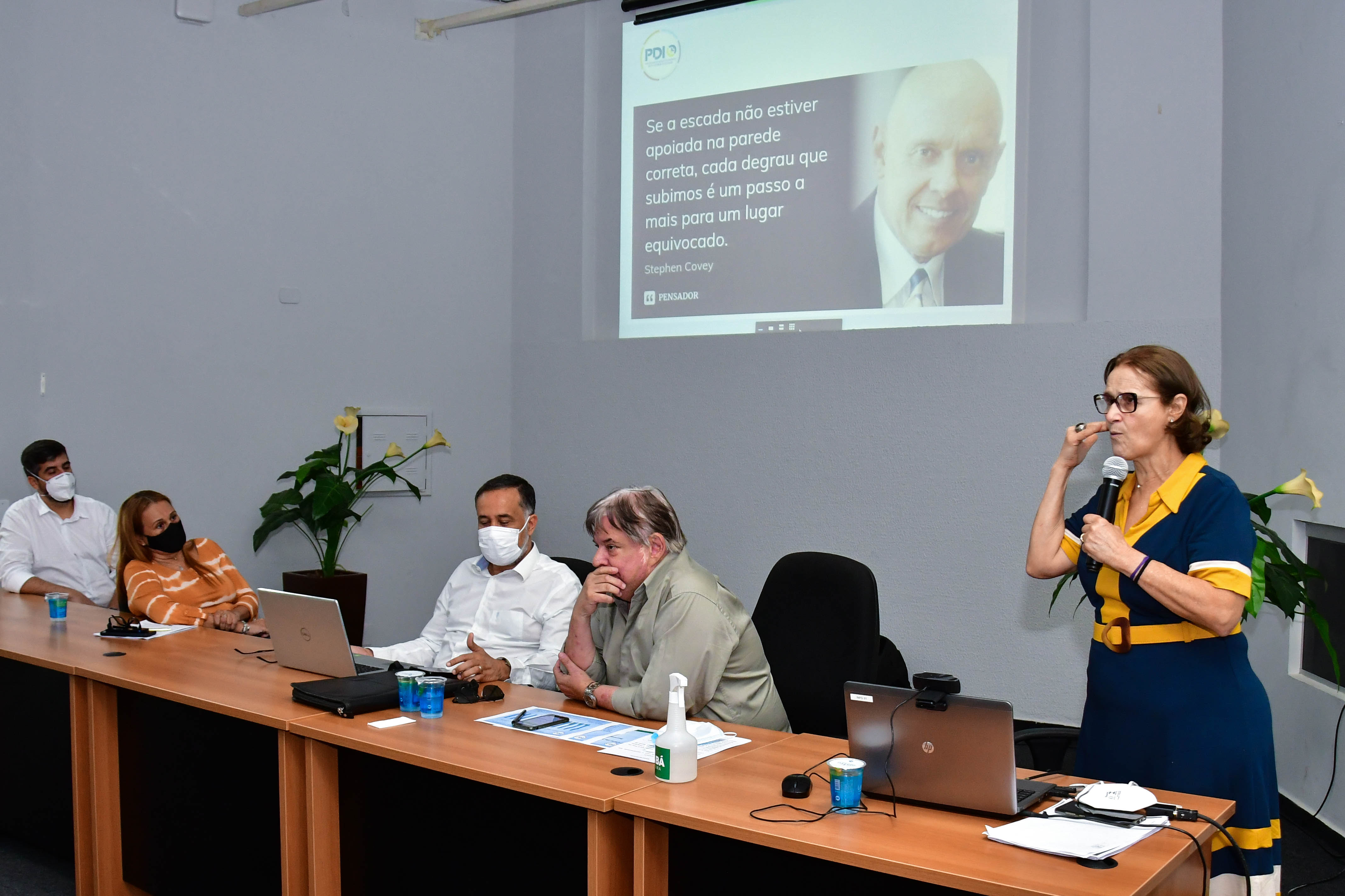 Respeitando as normas de biossegurança de prevenção a Covid-19, o encontro foi realizado de forma híbrida, sendo transmitido pela plataforma Google Meet do auditório da Educação.