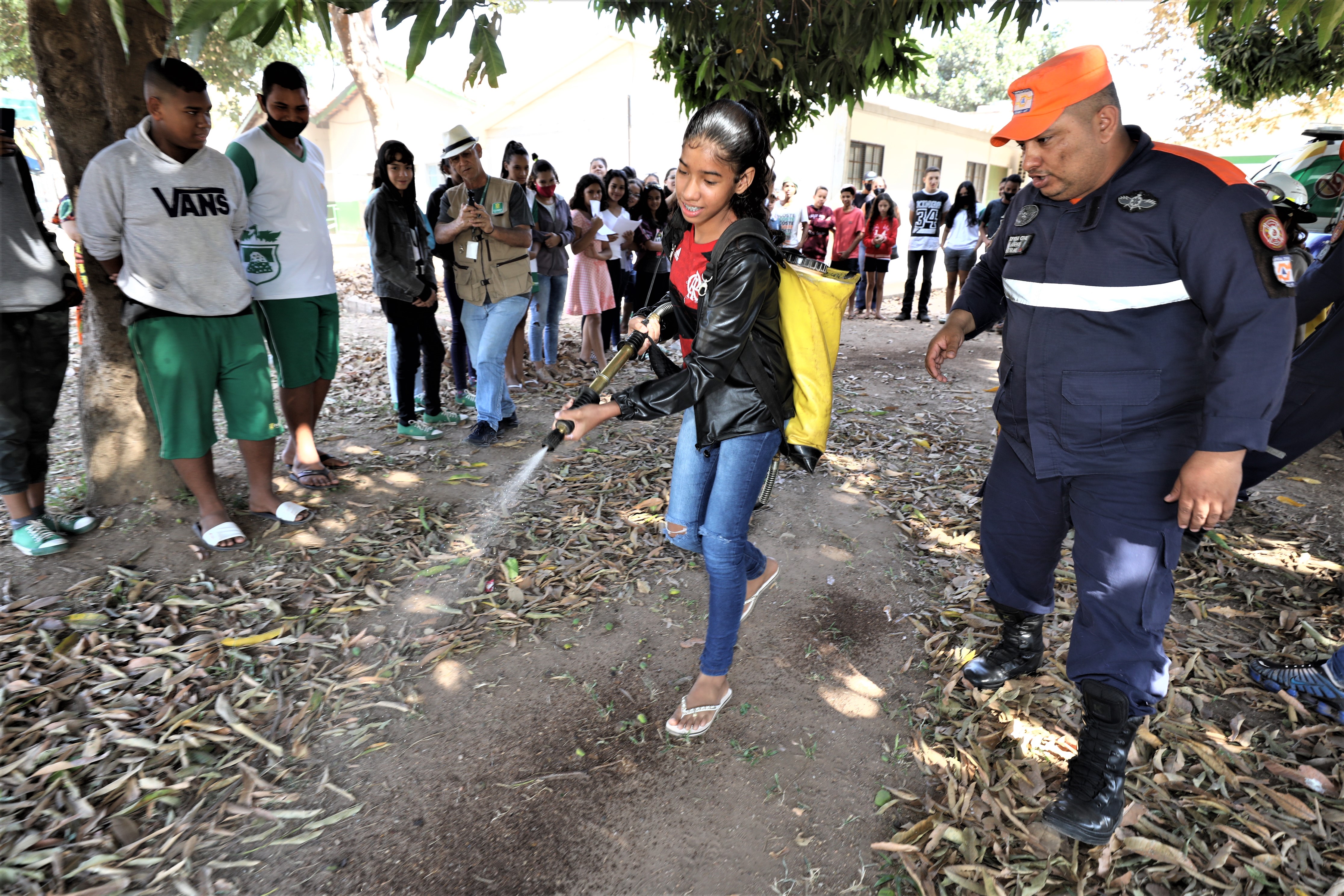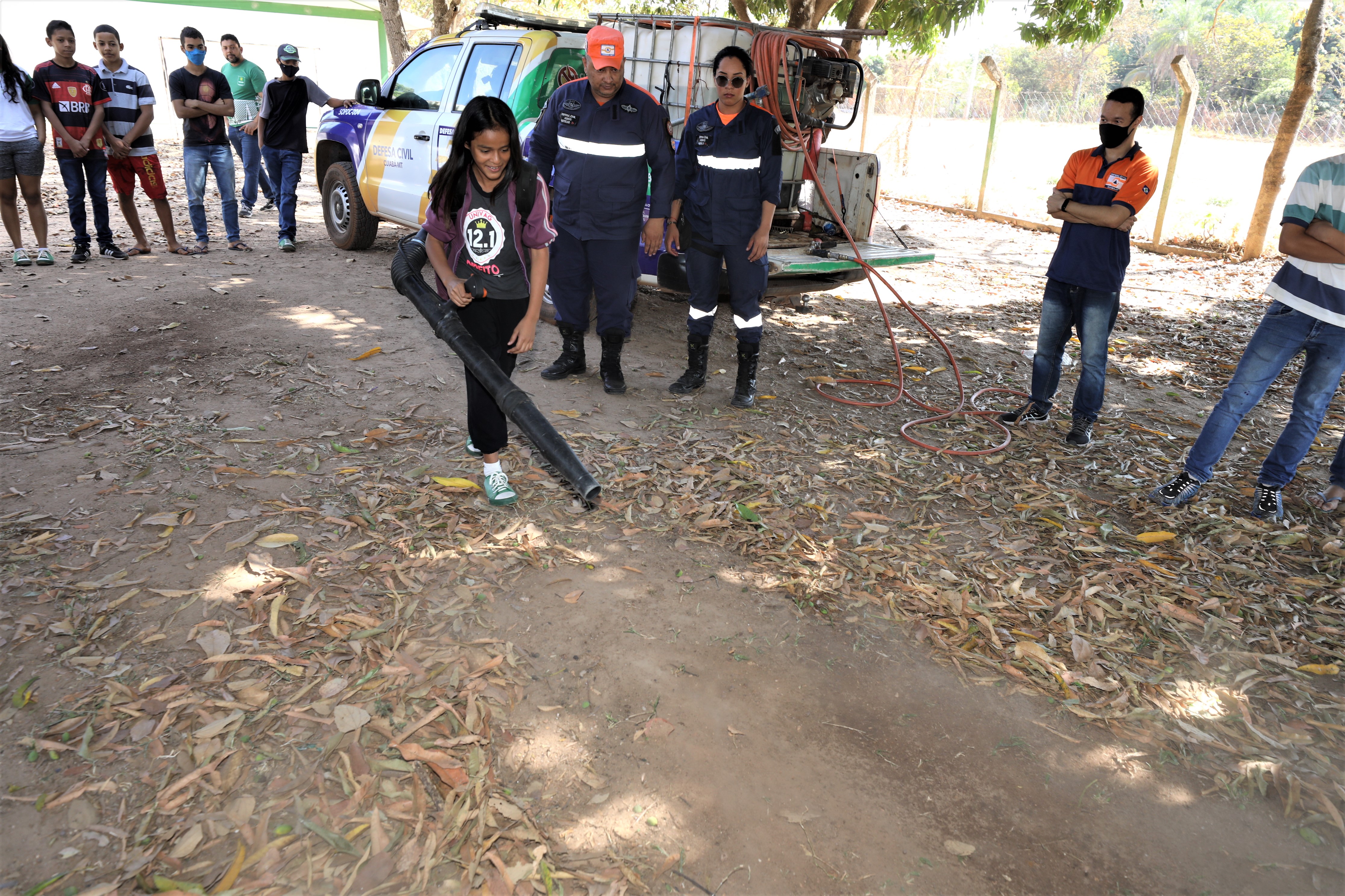 Equipes da Defesa Civil, acompanhadas do Kit Combate, composto por bomba costal, soprador, abafador e rastelo, demonstraram de fato algumas das medidas utilizadas pelo Executivo Municipal no atendimento a ocorrências dessa natureza. Ao todo, mais de 40 alunos participaram da aula extraclasse.