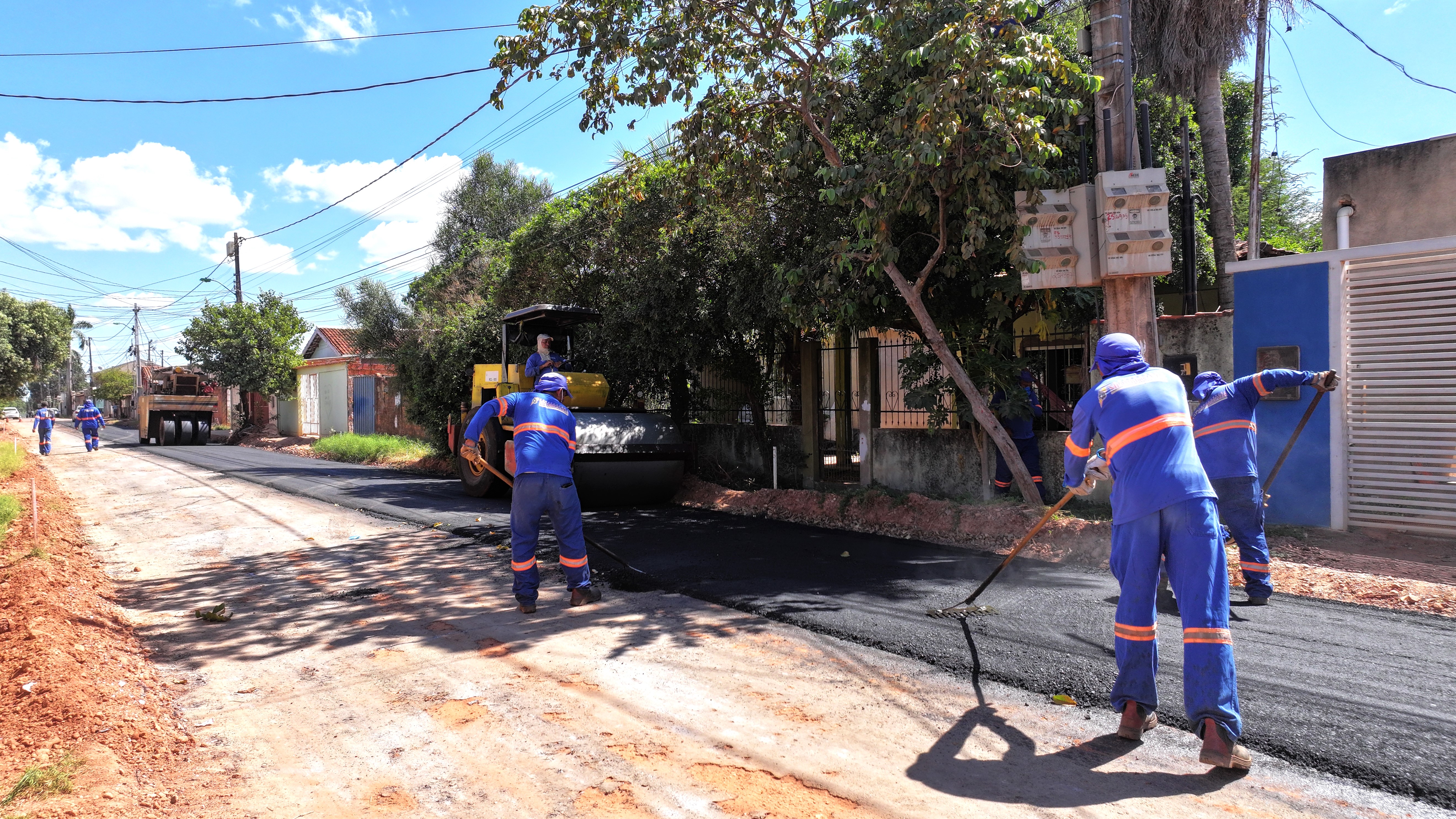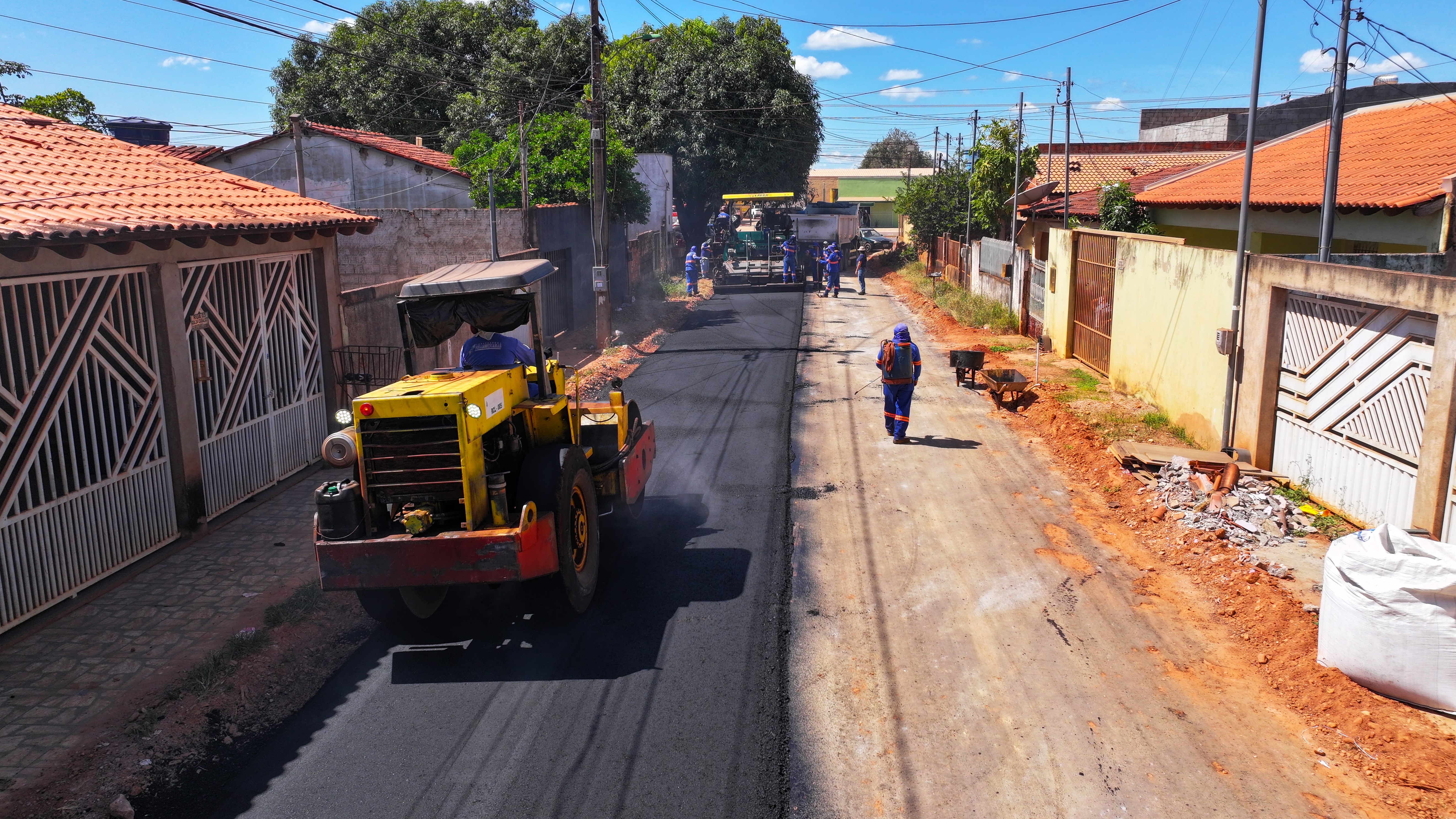 A capa asfáltica para concluir o asfaltamento do bairro começou a ser lançada nas ruas na manhã desta quarta-feira (8) e abrangerá as ruas 4, 5 e 6, onde o serviço se estenderá pelos próximos dias. As vias foram preparadas e possuem drenagem e rede fluvial.
