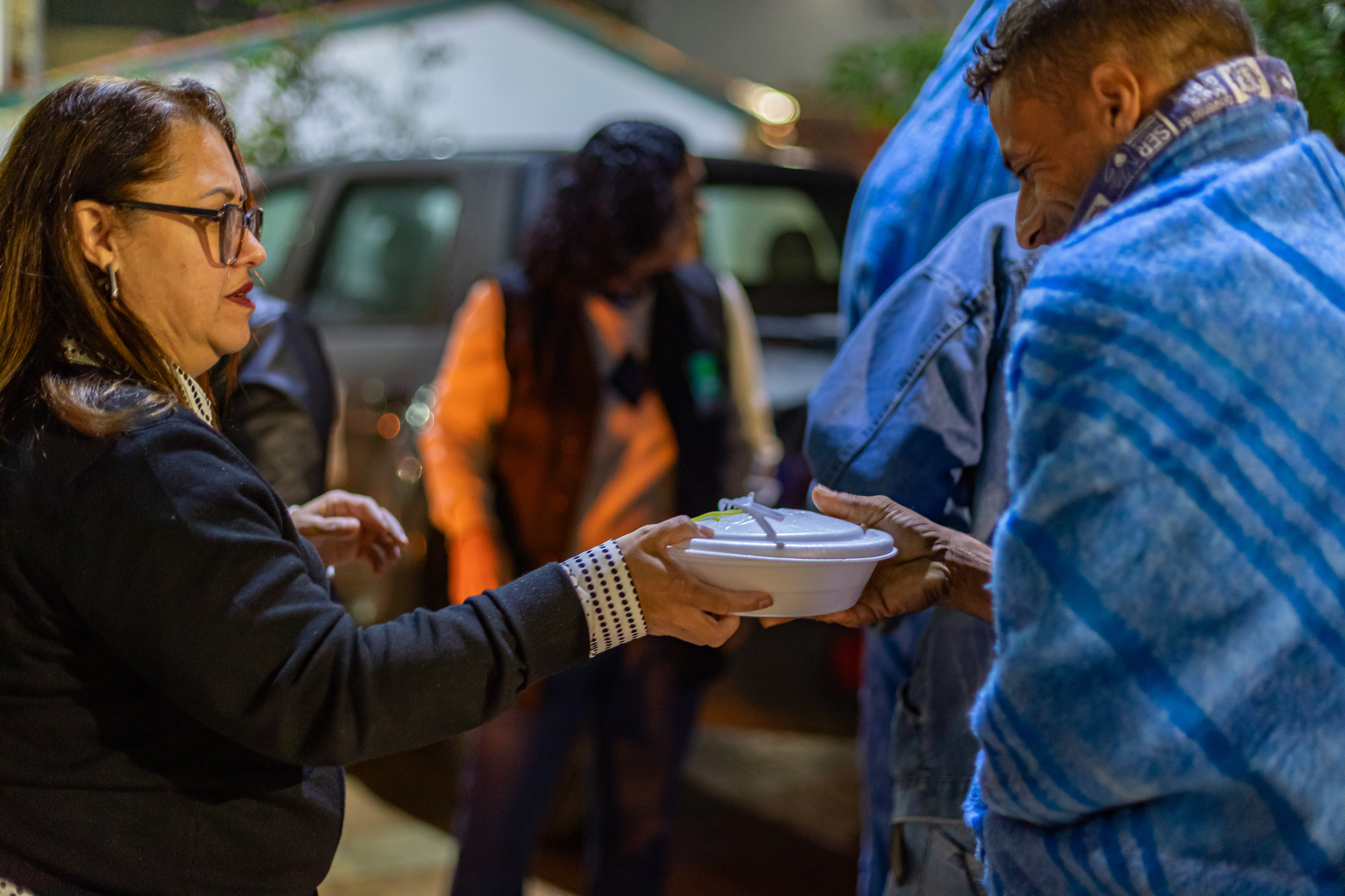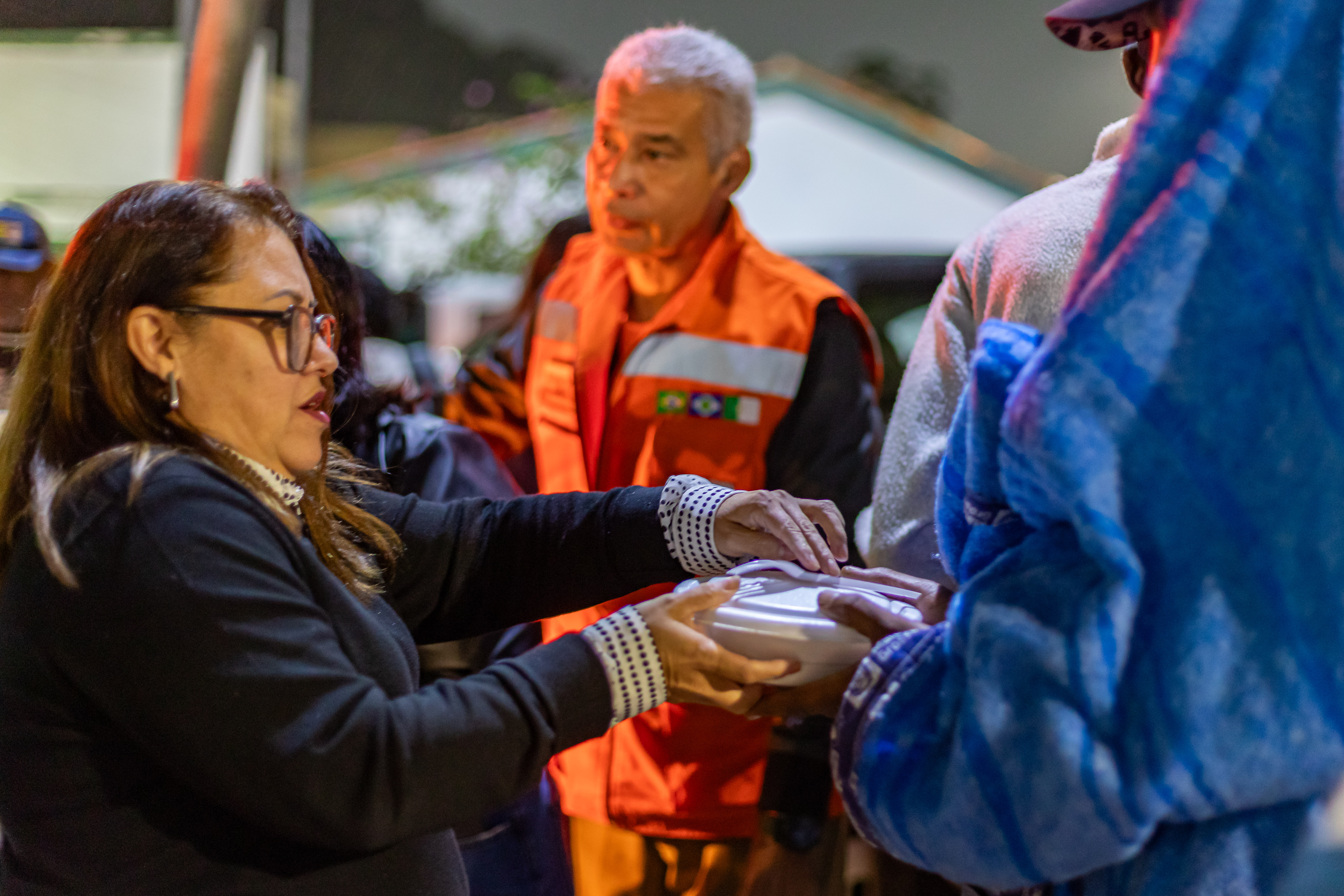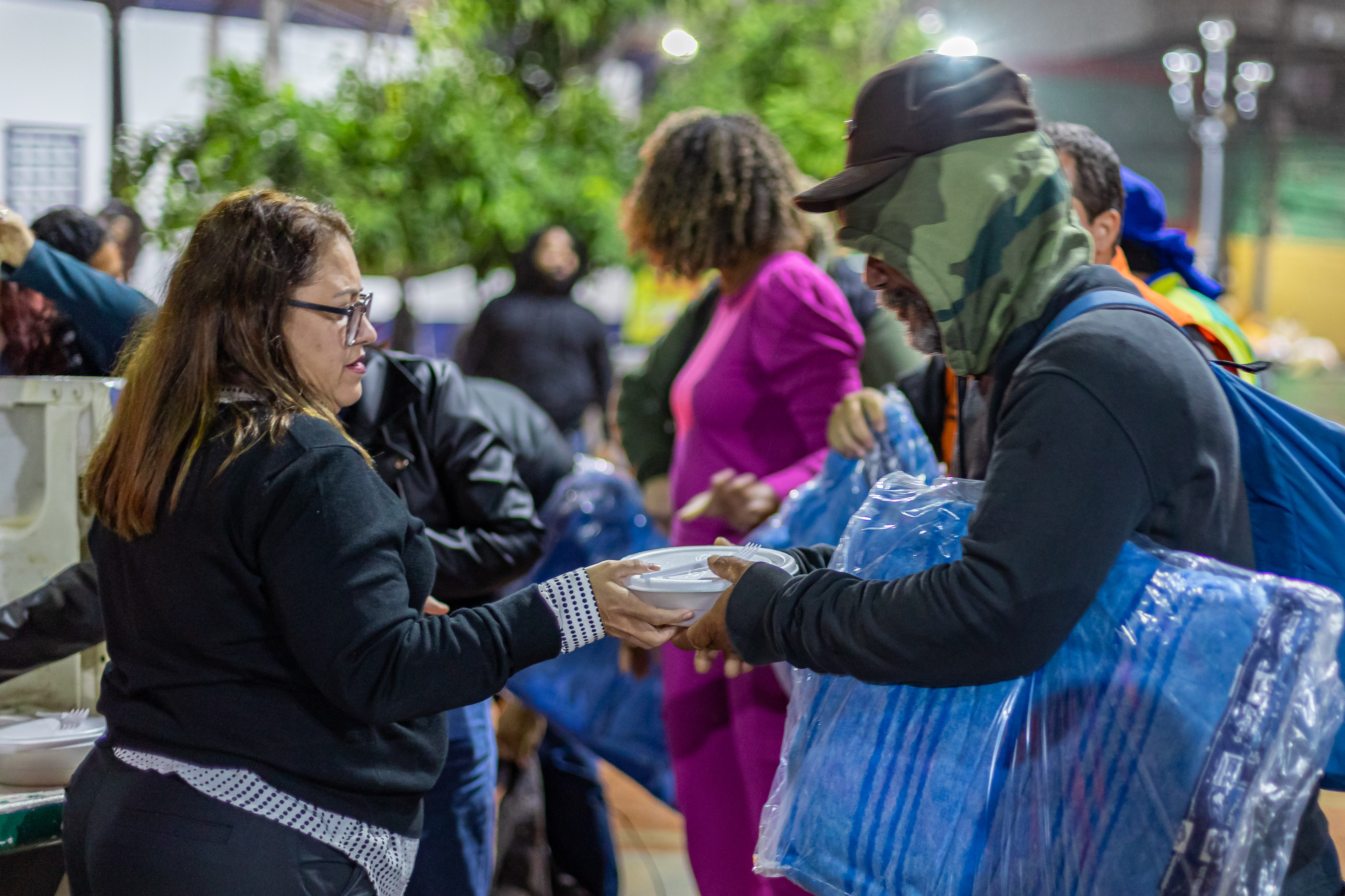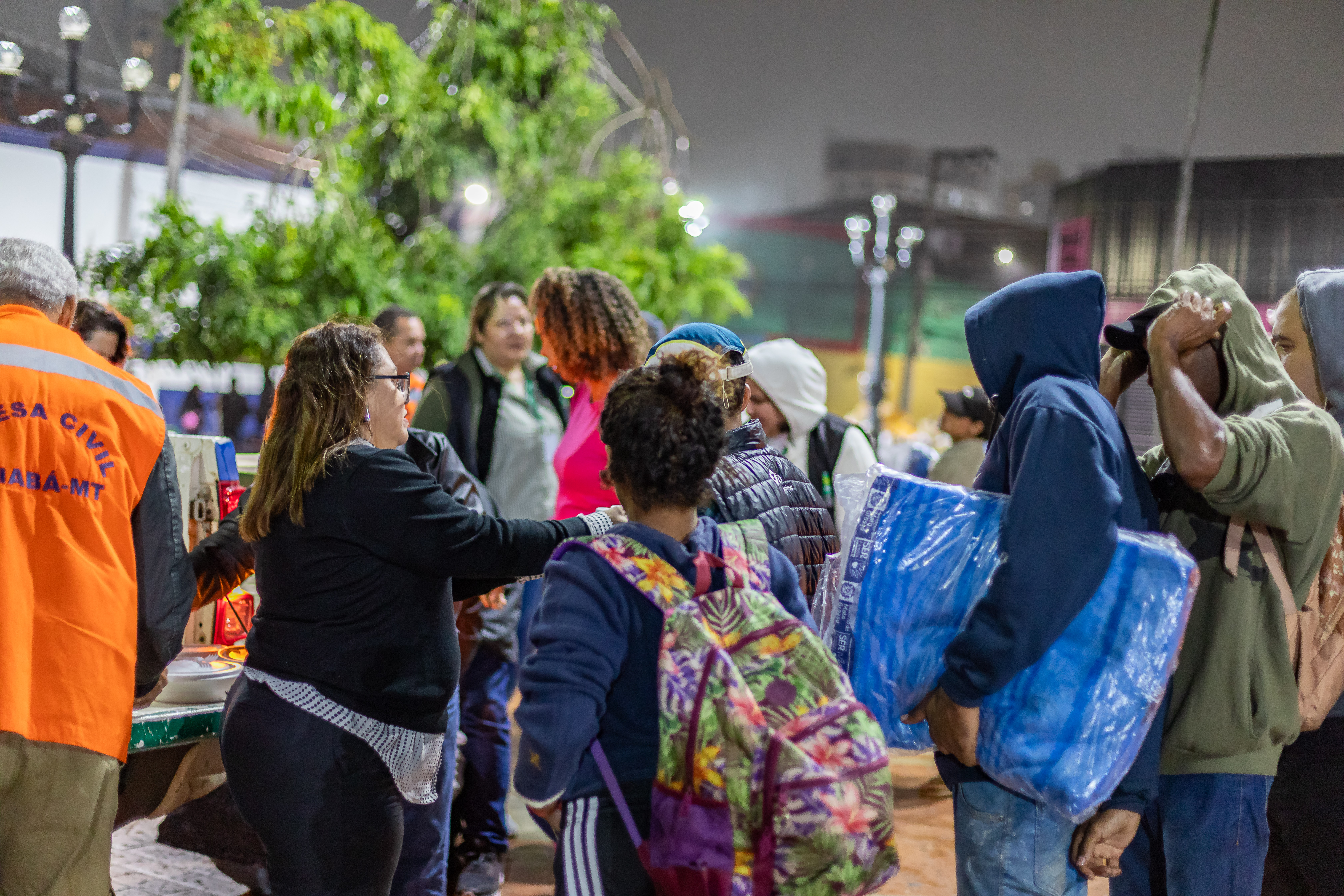 Com os termômetros marcando 13°C e sensação térmica ainda mais baixa por conta da neblina e dos ventos, a Prefeitura de Cuiabá realizou na noite de segunda-feira (30) mais uma ação emergencial de distribuição de cobertores e marmitas para pessoas em situação de rua. A iniciativa foi coordenada pela Secretaria Municipal de Assistência Social, com apoio da Defesa Civil, e integra a quarta edição da força-tarefa de enfrentamento ao frio na capital.