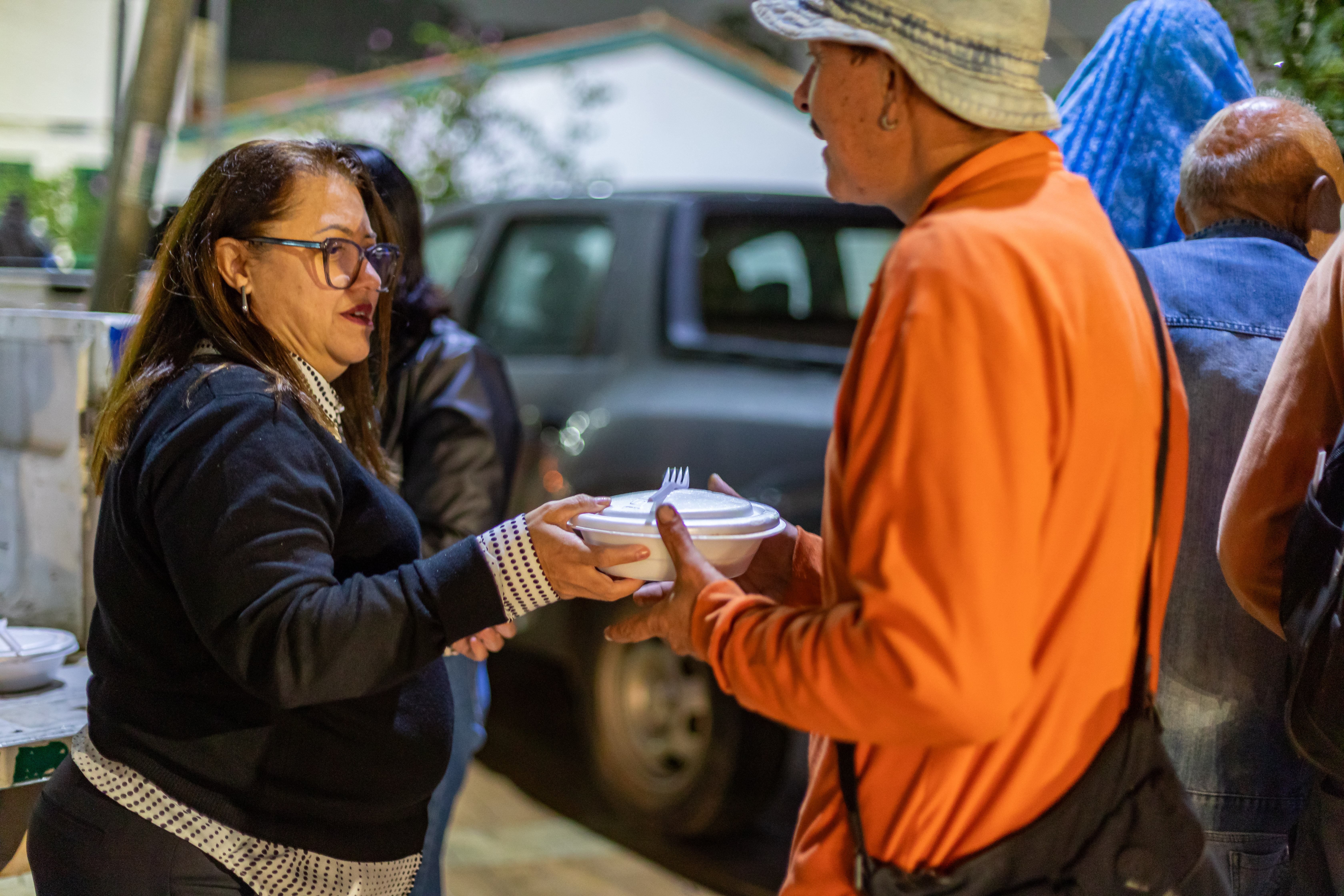 na imagem a secretária Hélida entrega uma marmita a idodos no beco do candeeiro.