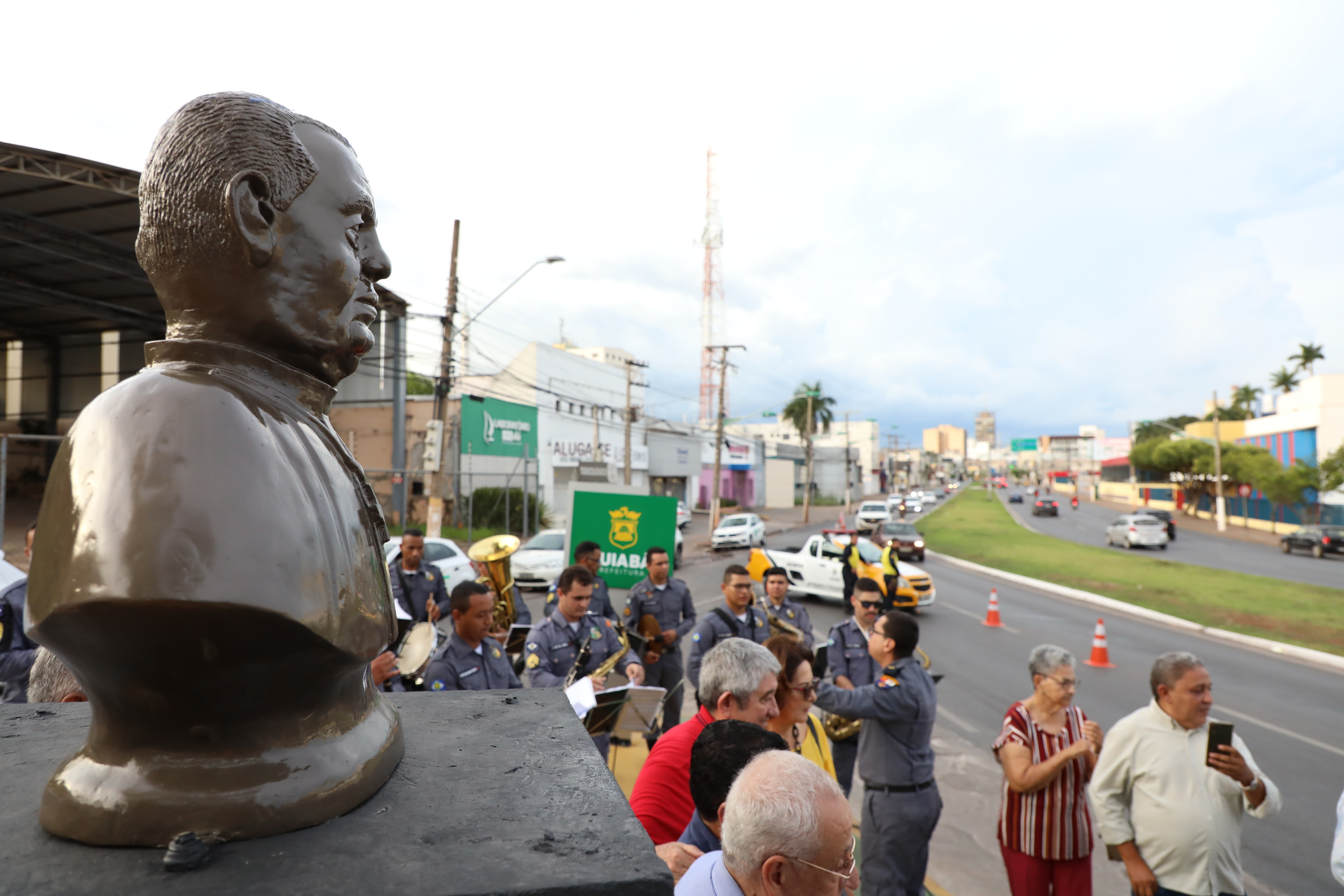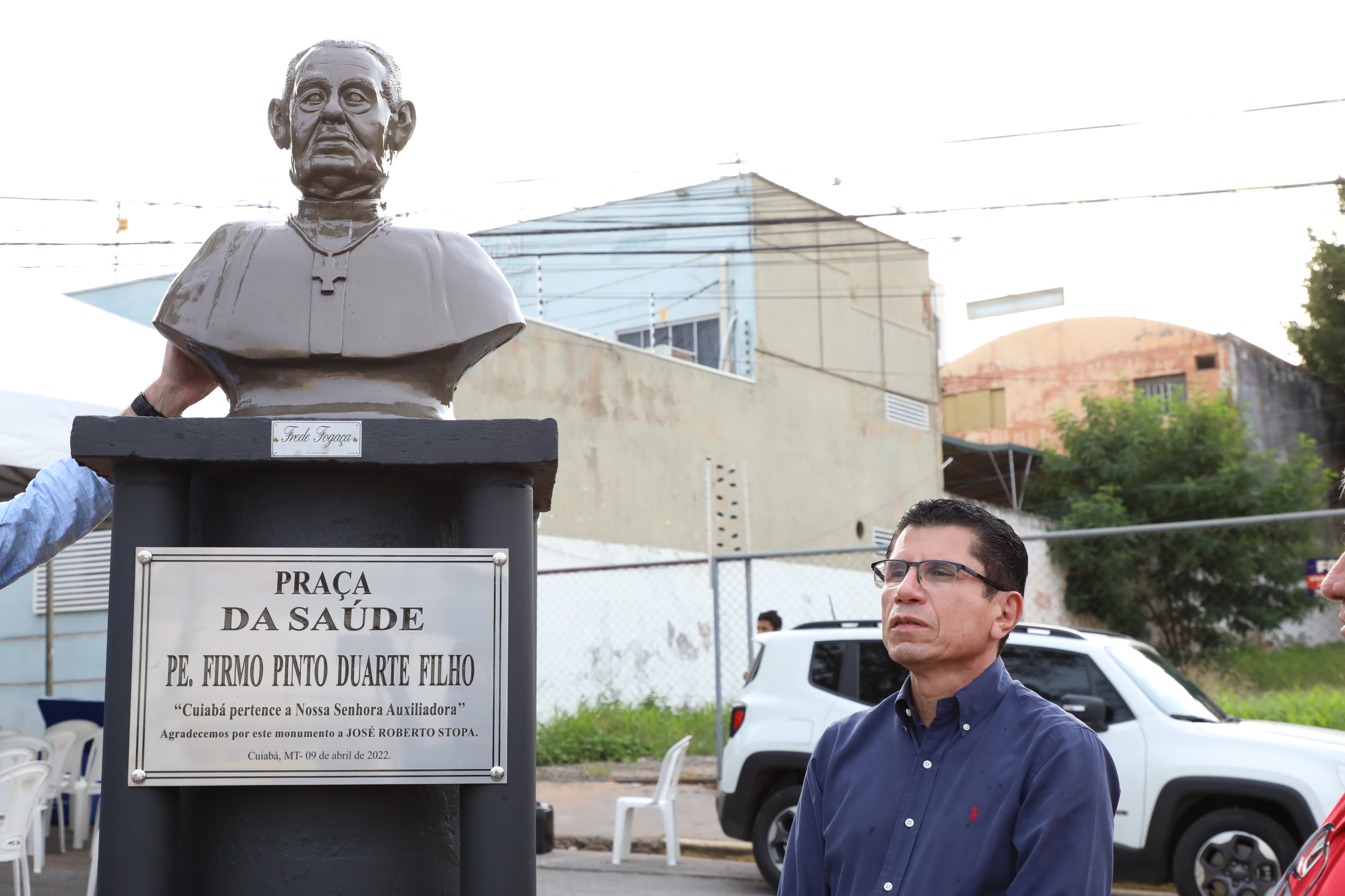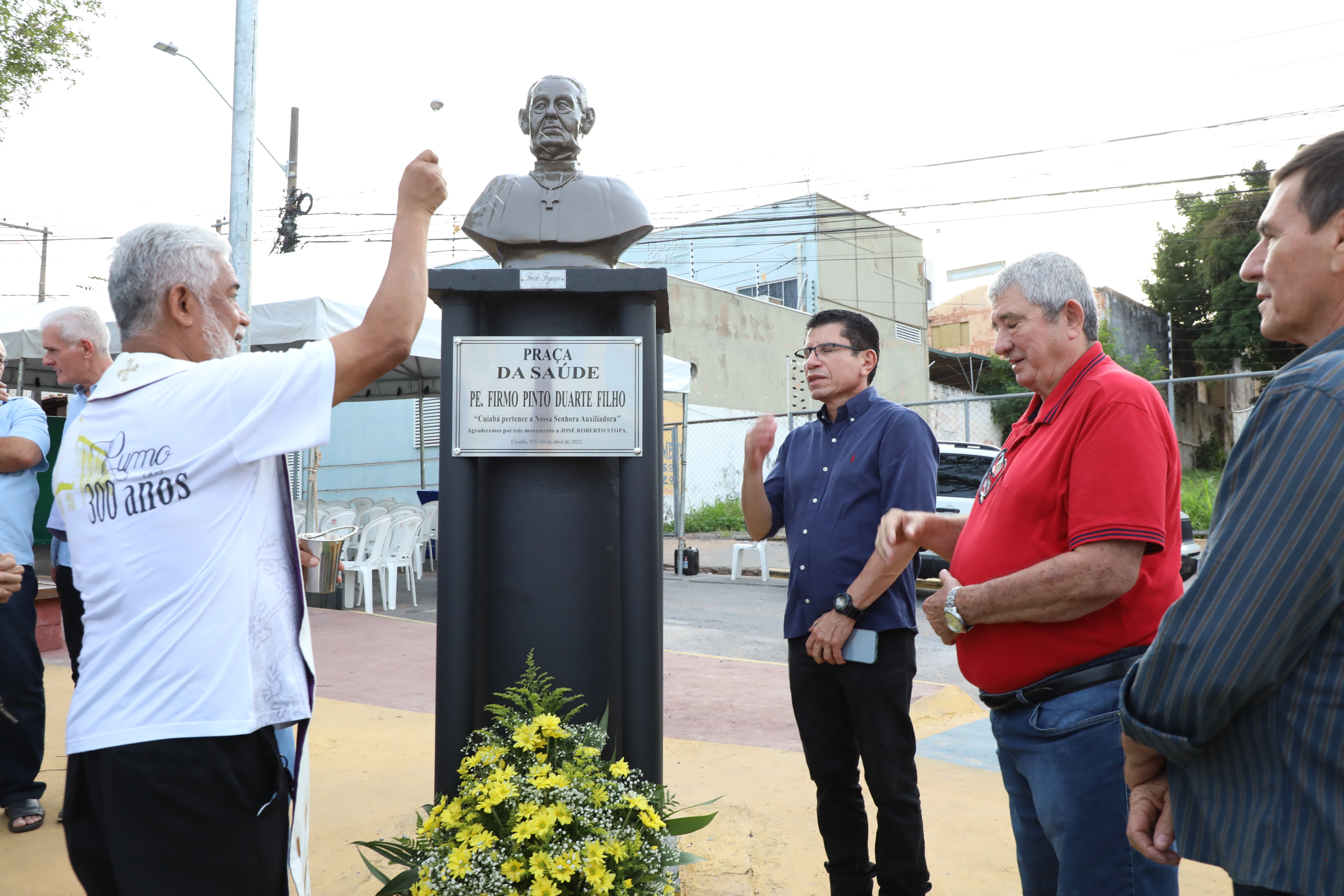 A Prefeitura de Cuiabá, por meio da Secretaria Municipal de Cultura, Esporte e Lazer, reinaugurou, na tarde de sábado (9), o busto do padre Firmo Duarte, um dos ícones religiosos do Estado, na Praça da Saúde. A solenidade integrou a programação de festividades alusivas ao aniversário de 303 anos que seguirá até meados do mês de maio, com entregas de obras pela gestão Emanuel Pinheiro.