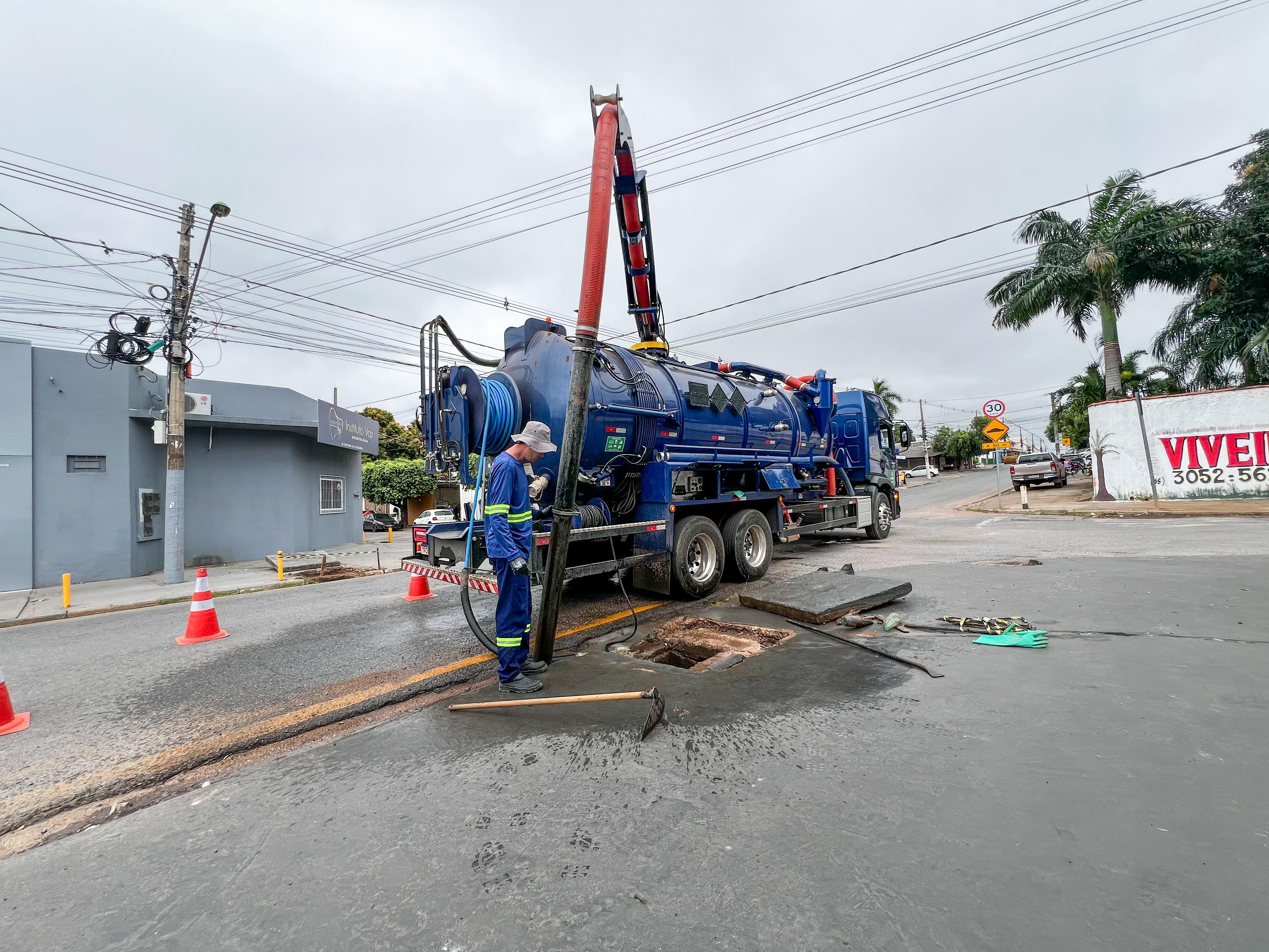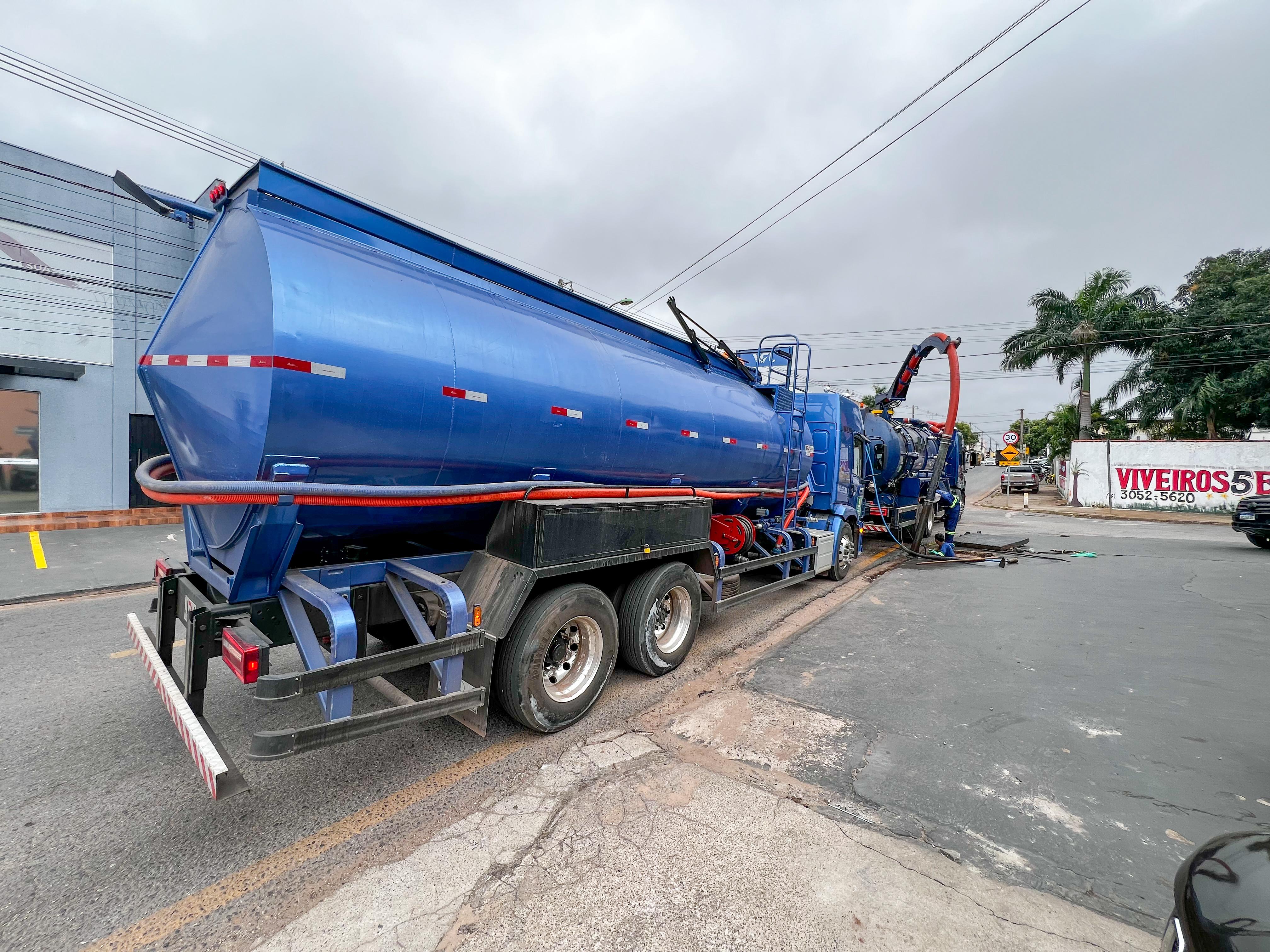 Para a execução da atividade, a equipe técnica contou com o apoio de equipamentos como caminhão hidrojato, retroescavadeira e caminhão caçamba. O hidrojato é responsável pela sucção dos materiais contaminantes, enquanto a limpeza manual é realizada dentro das caixas coletoras. Já a retroescavadeira auxilia na abertura das tampas de concreto das bocas de lobo, permitindo acesso às estruturas internas. Todo o resíduo recolhido é devidamente transportado e descartado de forma ambientalmente adequada.