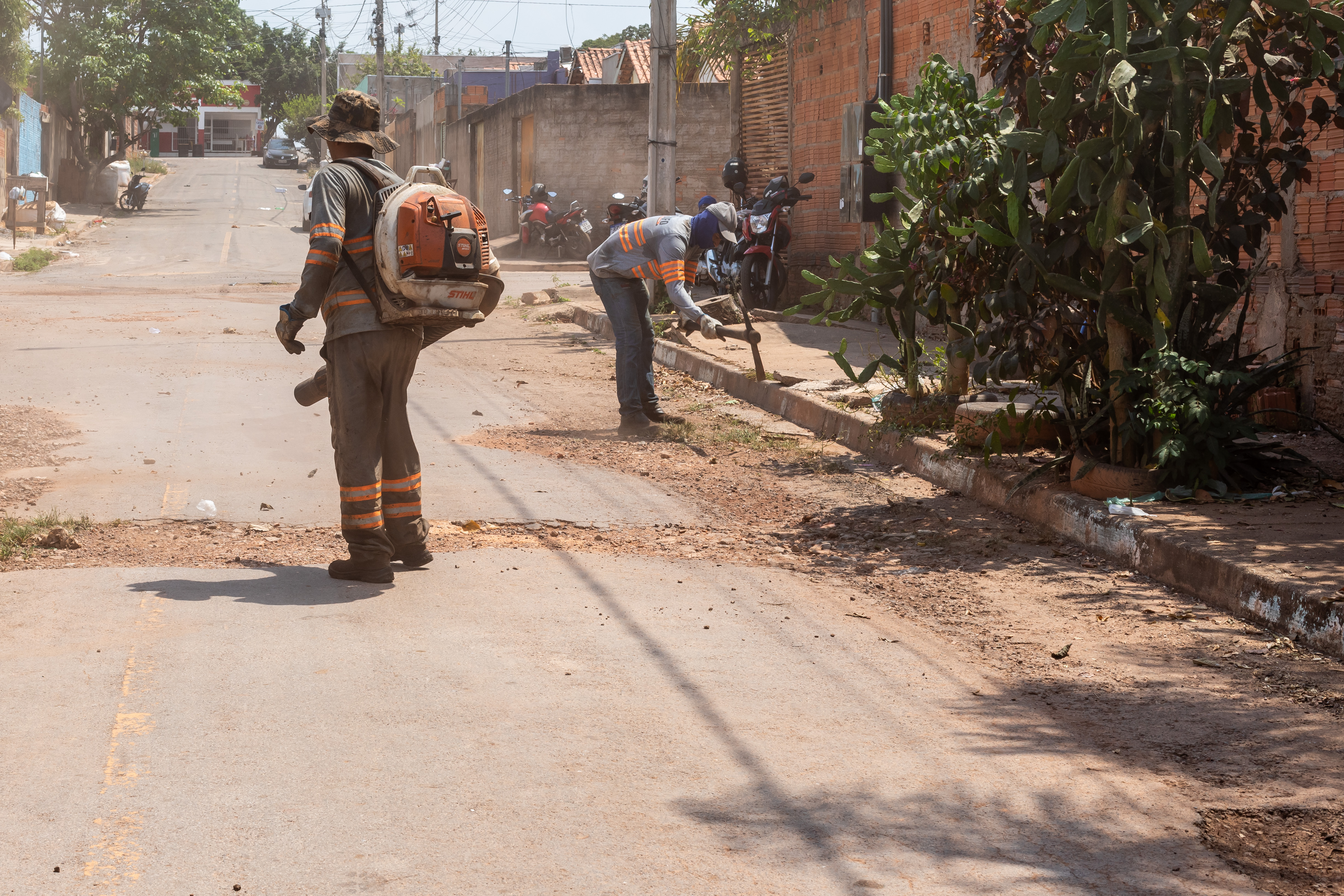 Os serviços envolvem desde a preparação da base, com remoção da umidade do solo por caminhão-pipa, até a aplicação de asfalto quente, técnica que proporciona maior durabilidade ao pavimento. Além da recomposição do asfalto, as equipes também executam manutenção na rede de drenagem, substituindo manilhas antigas por tubos de concreto de maior vazão, o que melhora o escoamento da água das chuvas e reforça a resistência das vias.