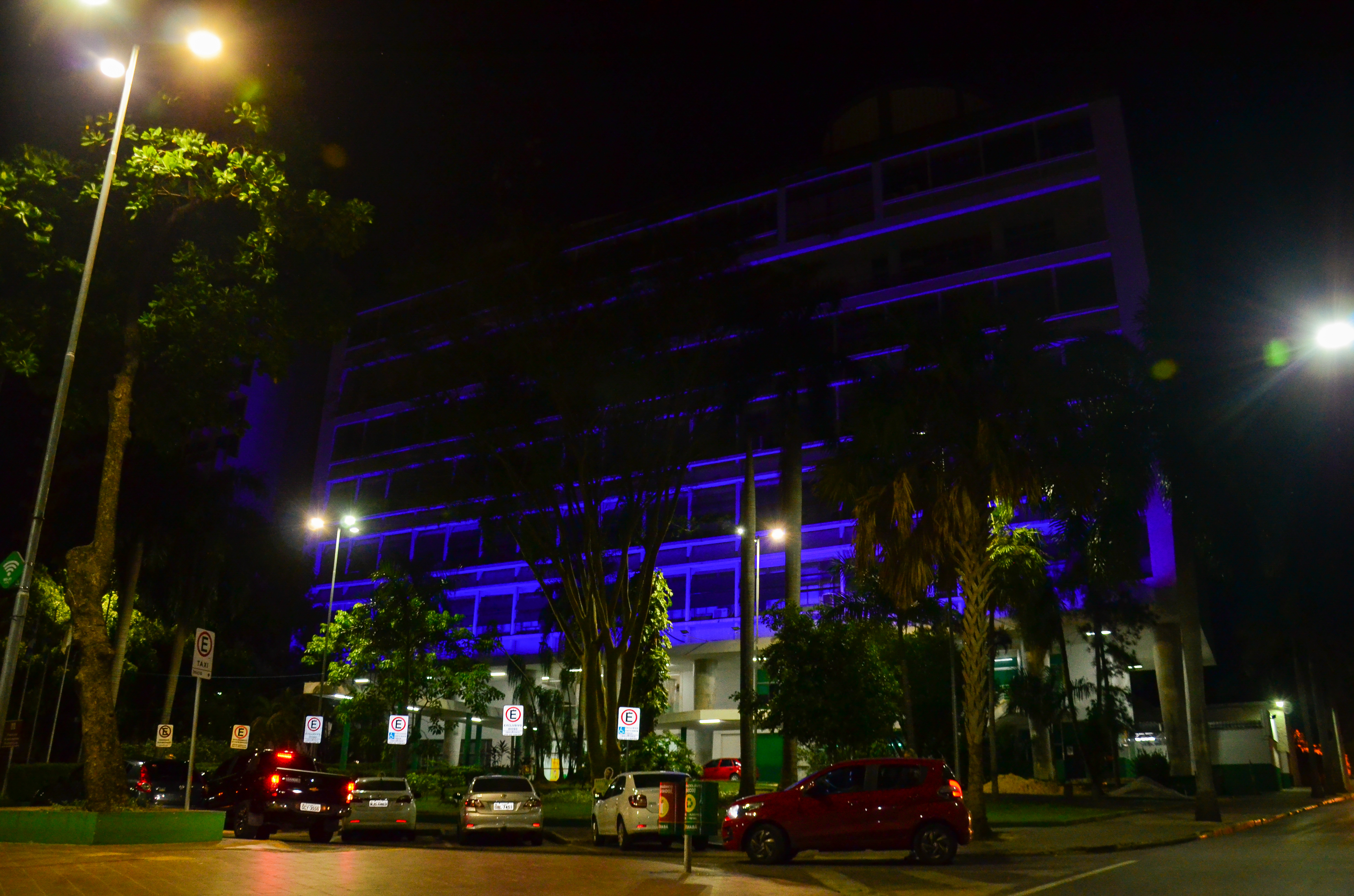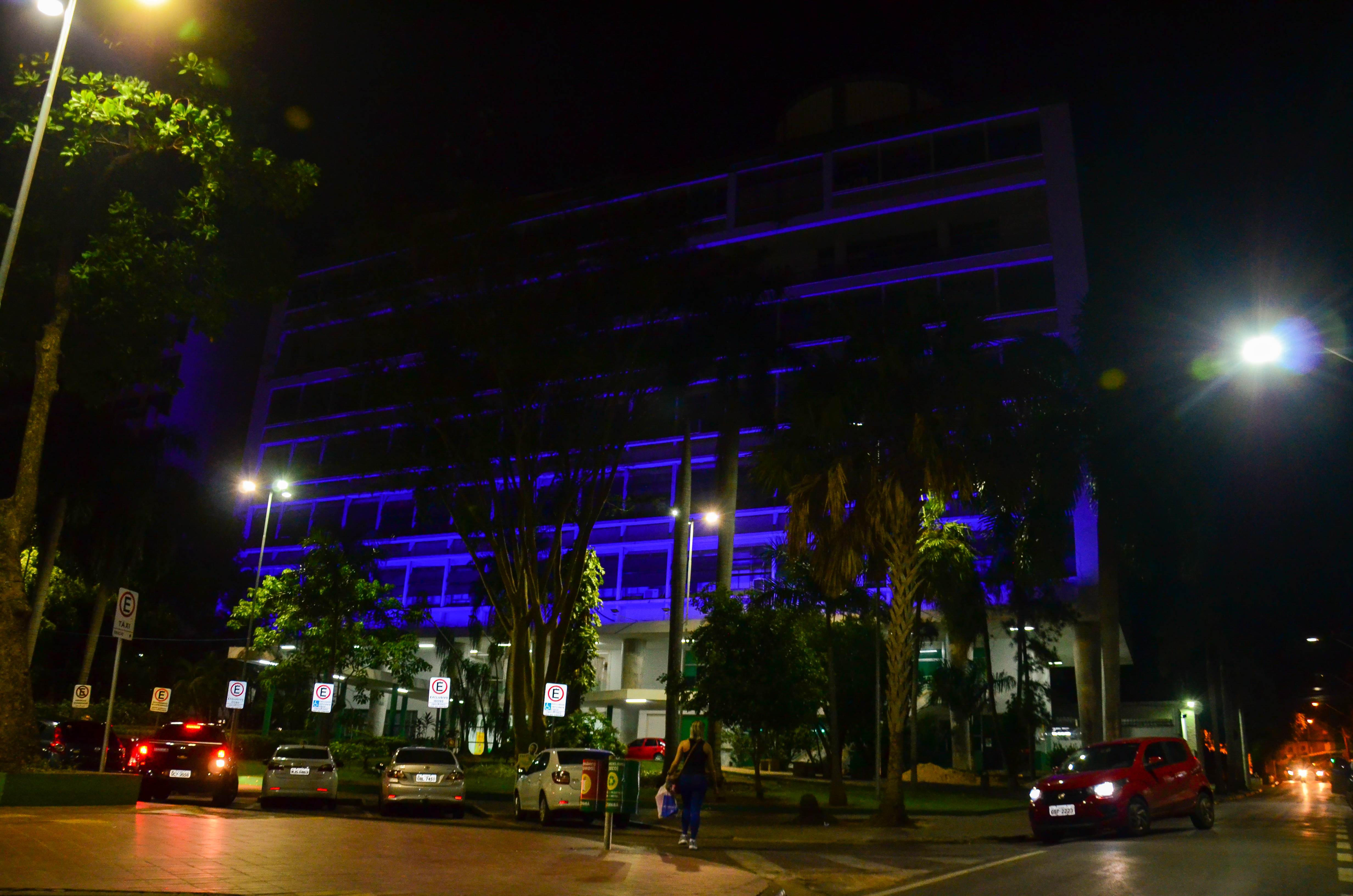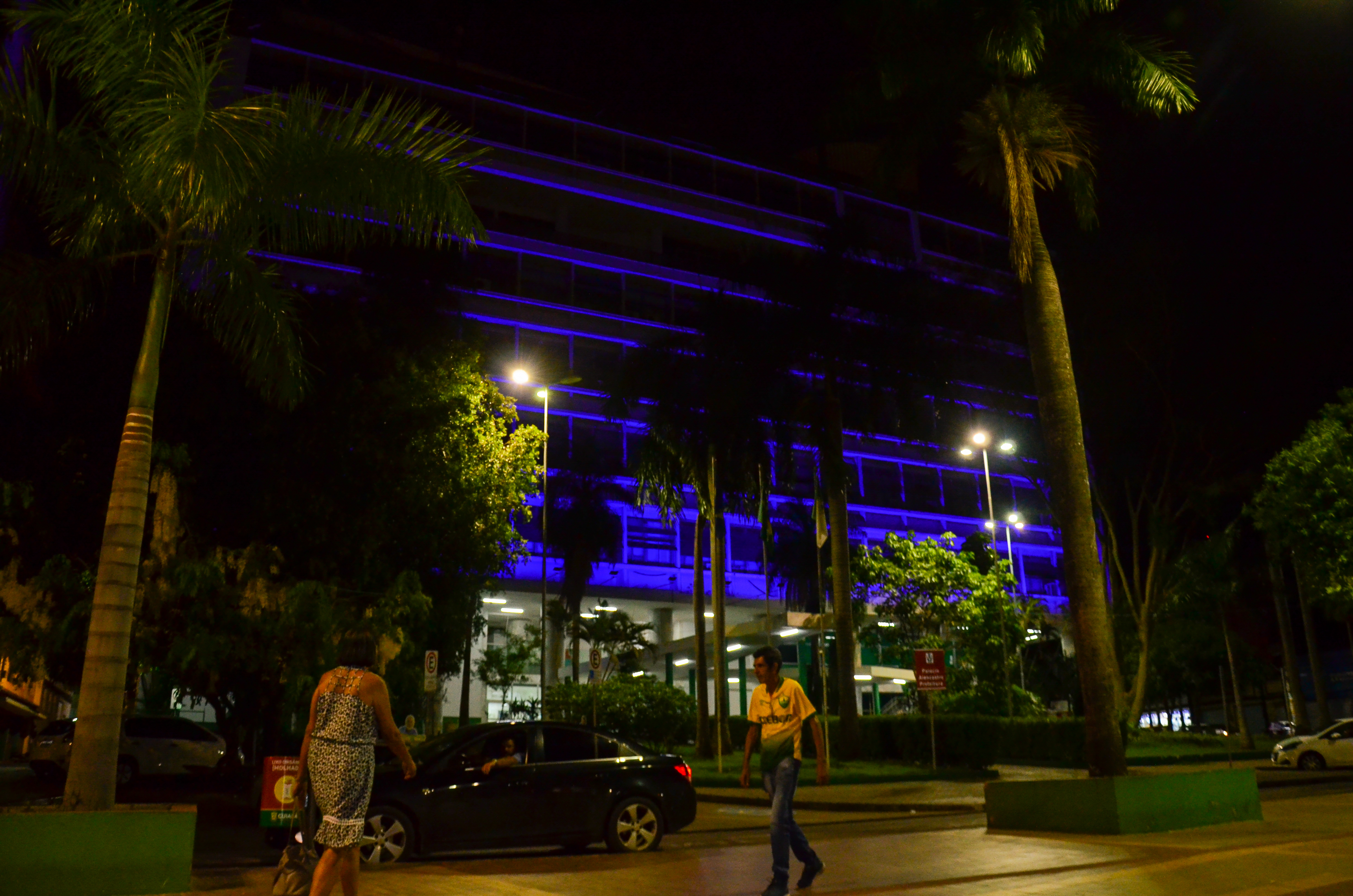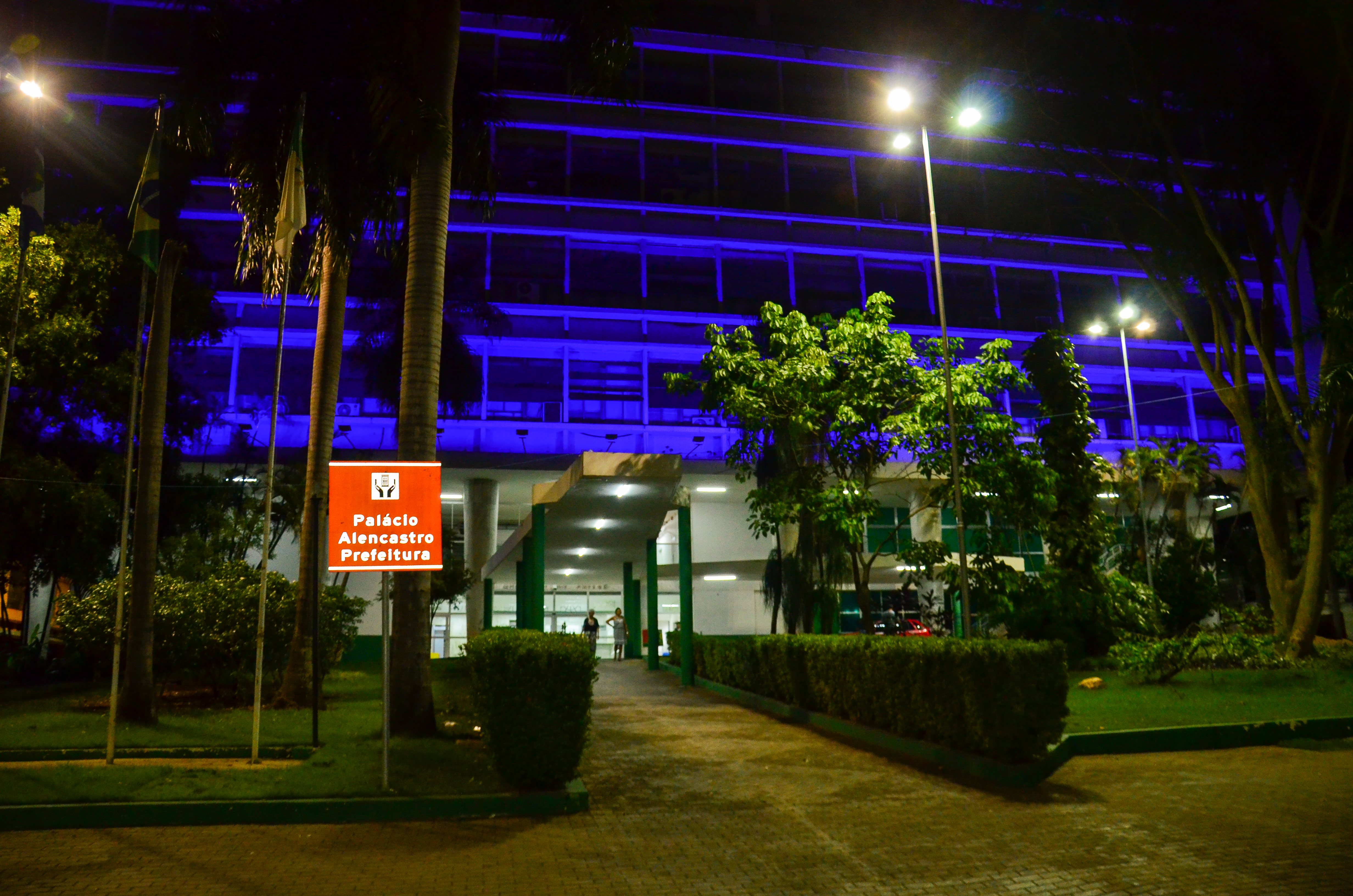 Prefeitura de Cuiabá troca iluminação rosa pela cor azul