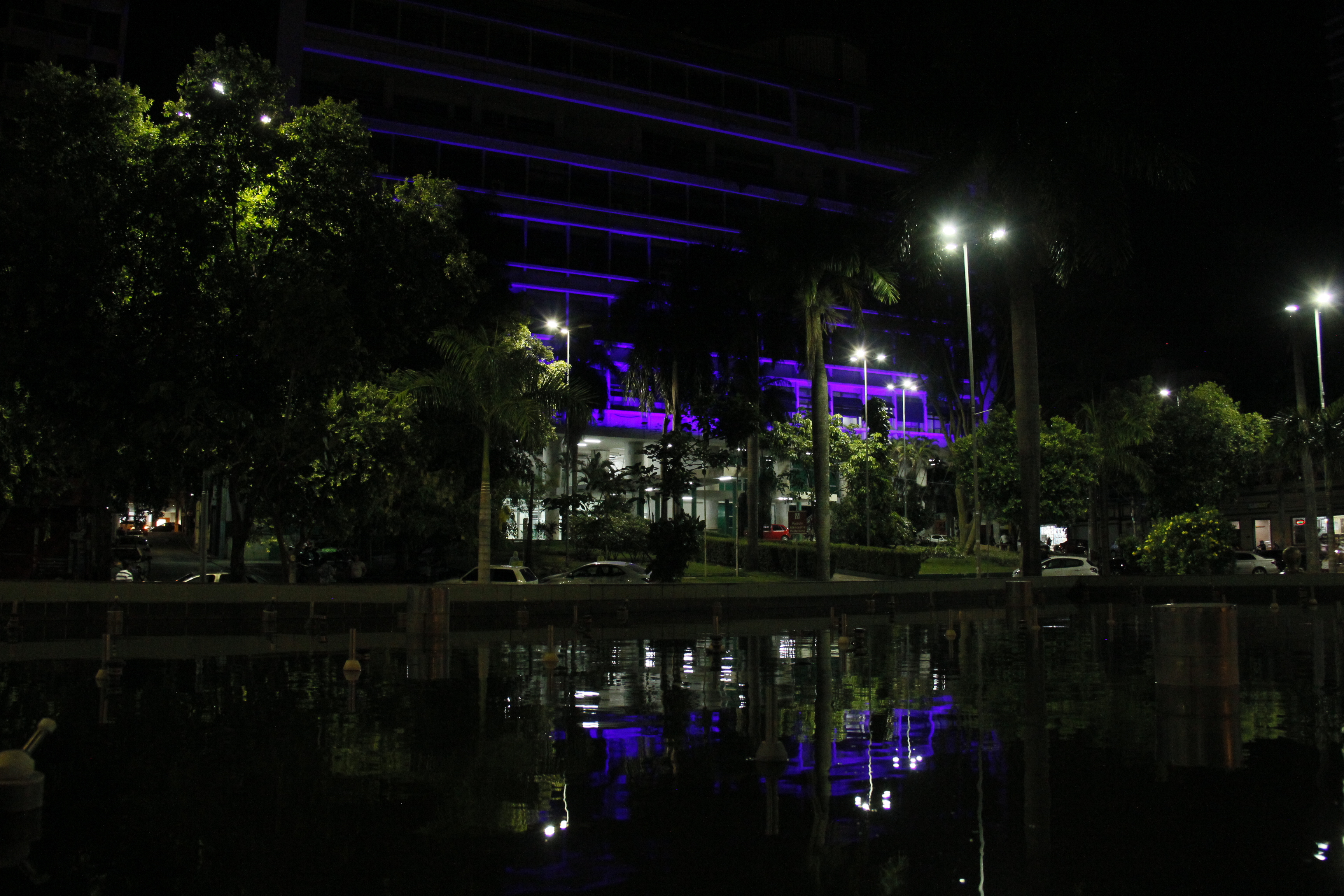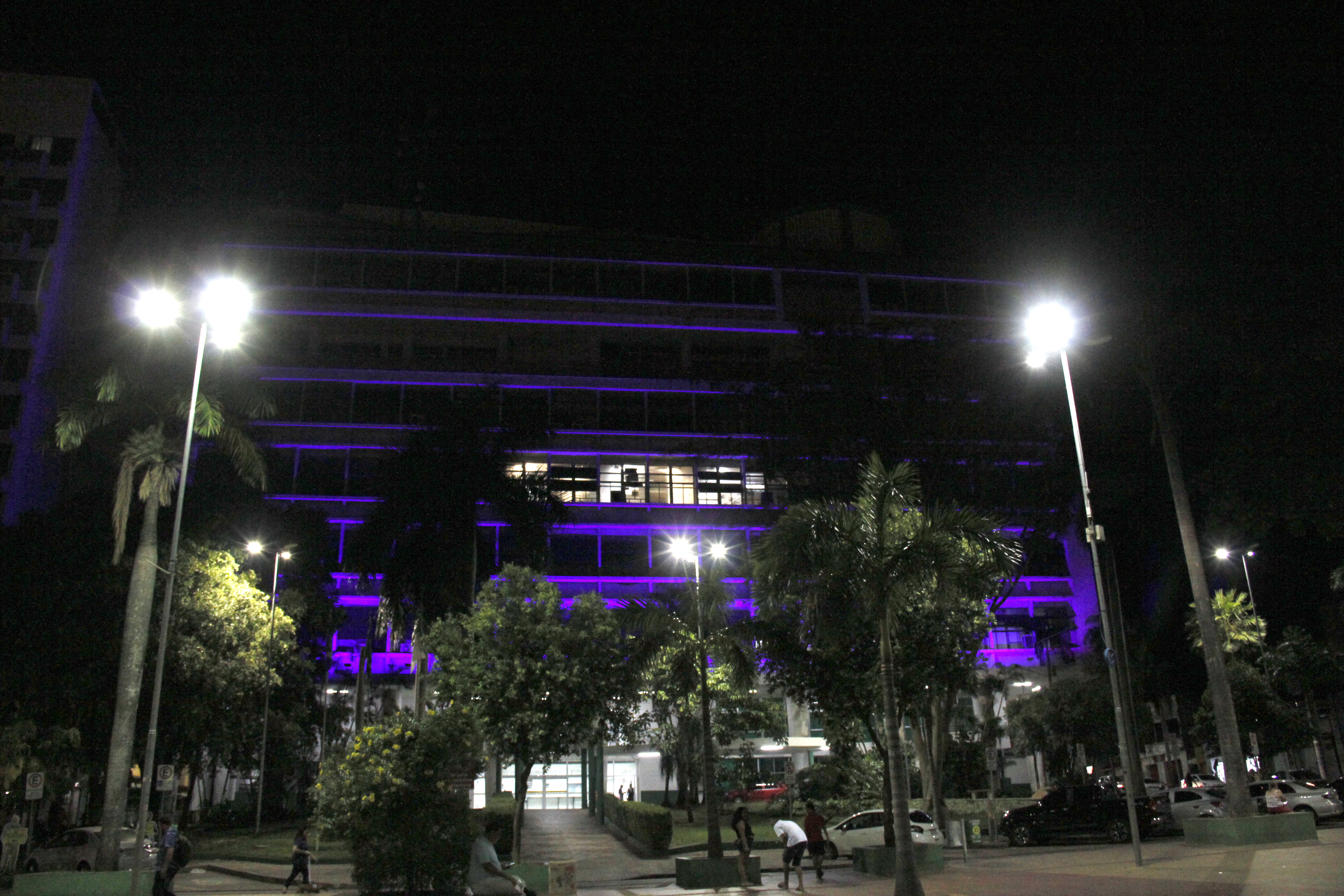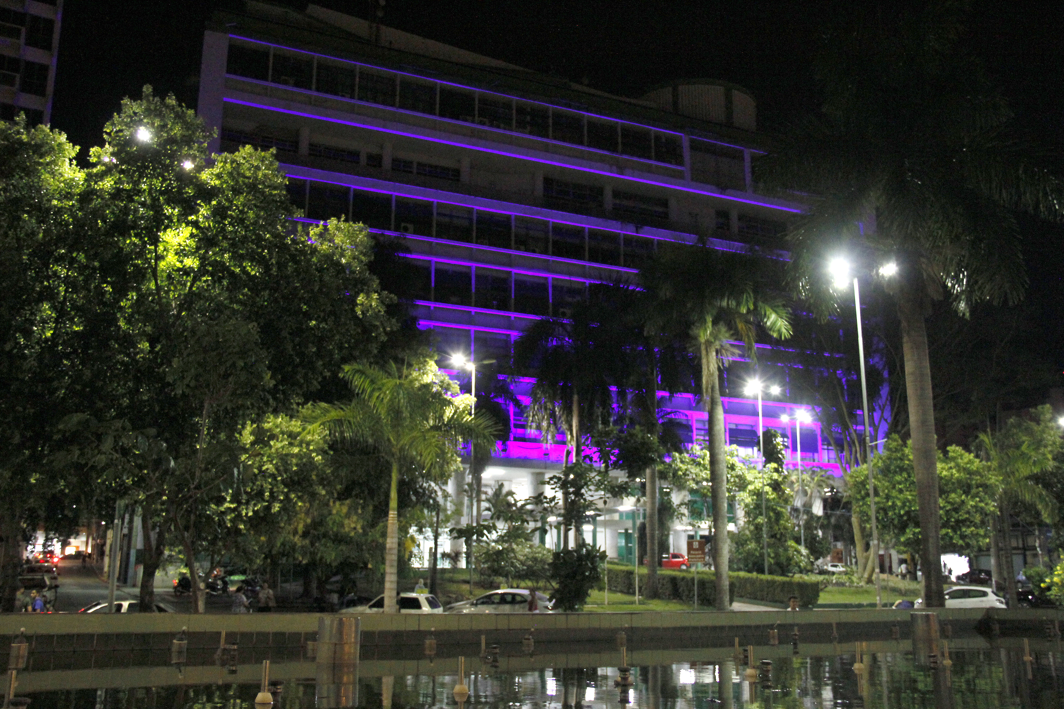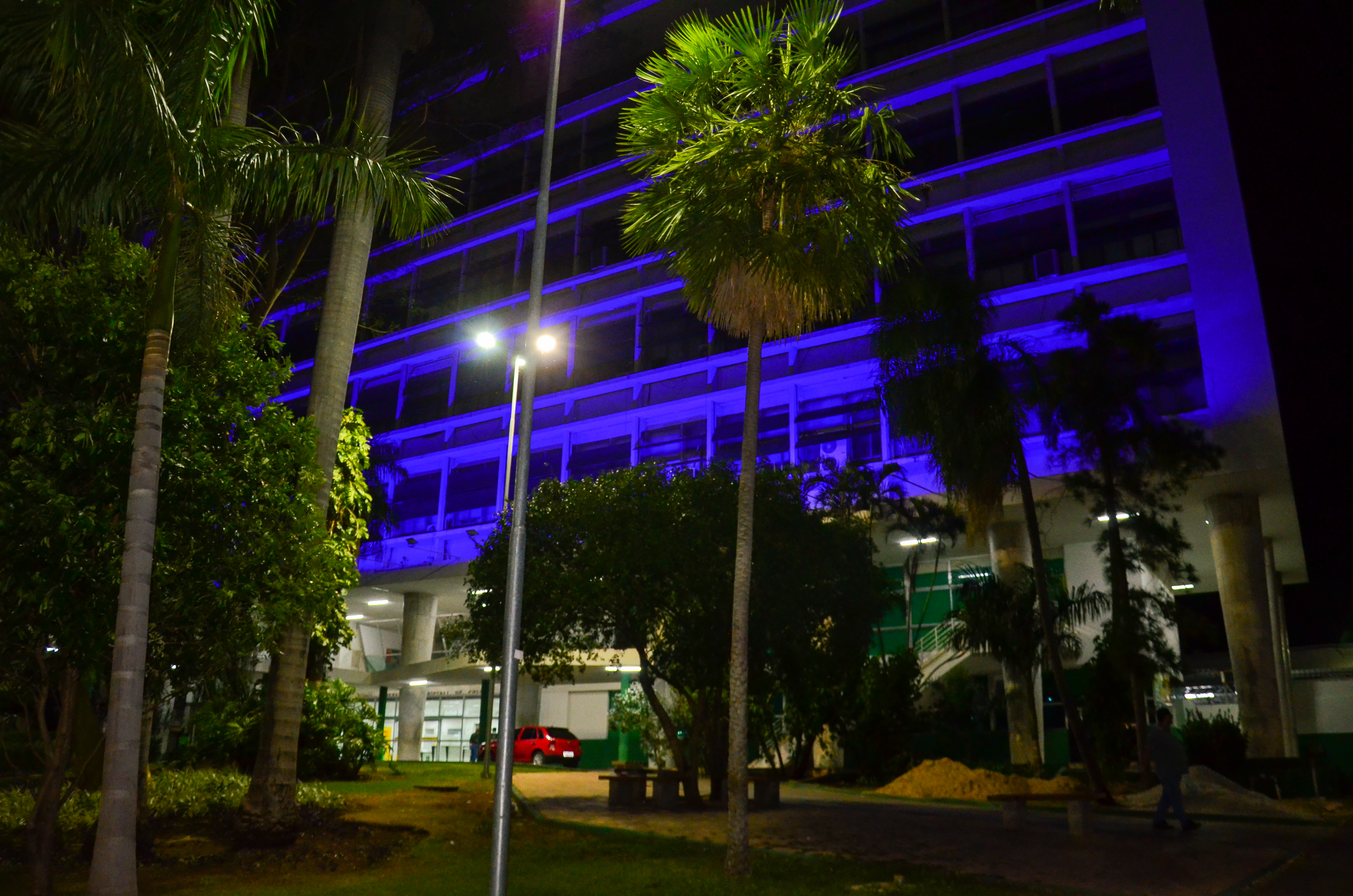 Prefeitura de Cuiabá troca iluminação rosa pela cor azul