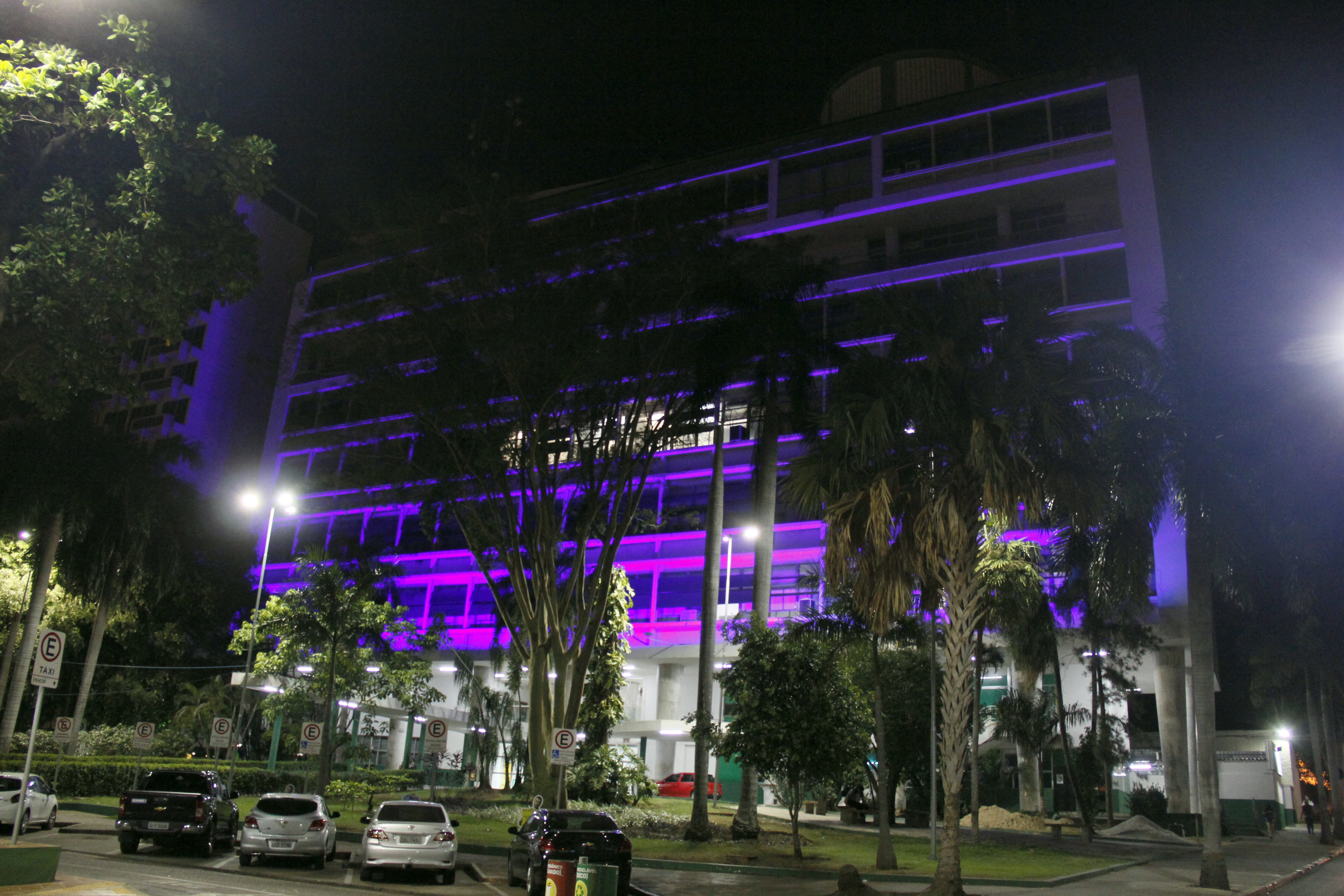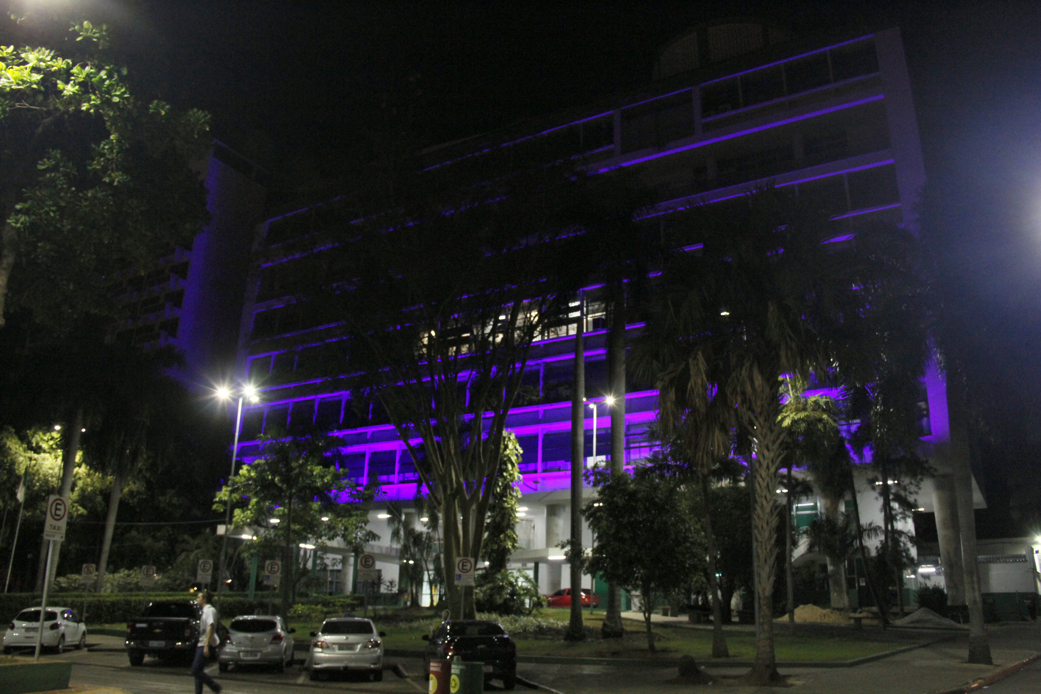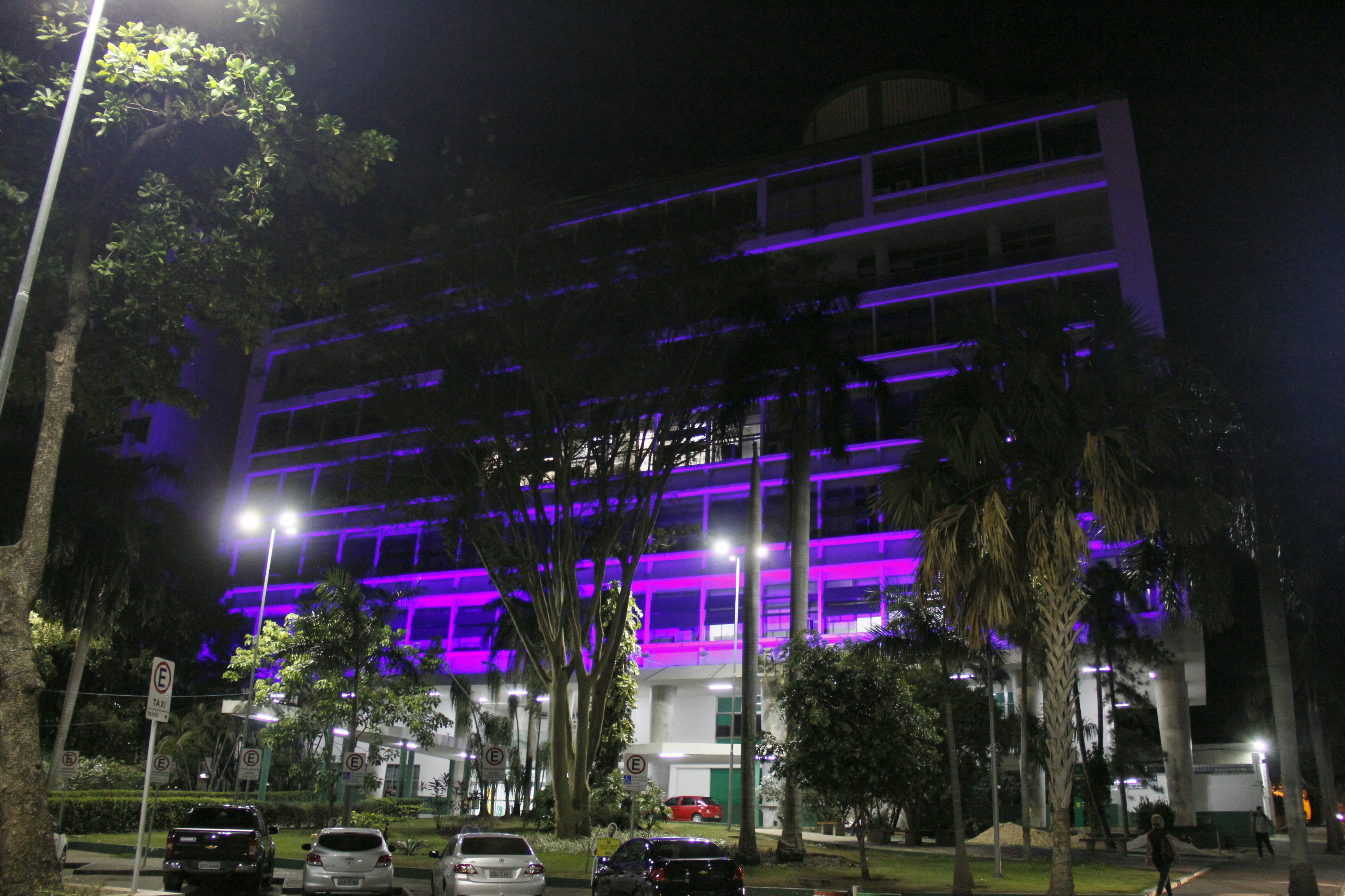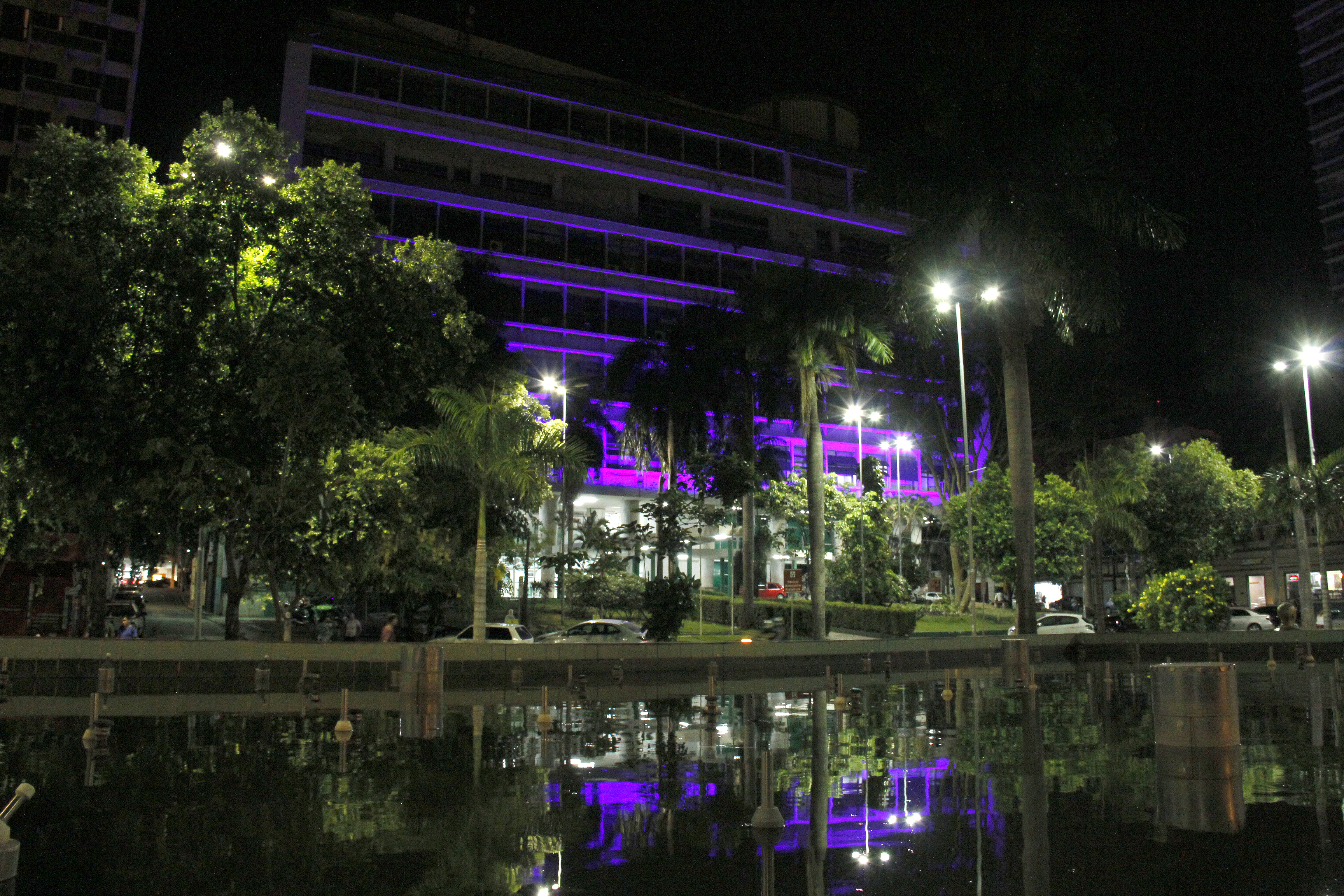 Prefeitura de Cuiabá troca iluminação rosa pela cor azul