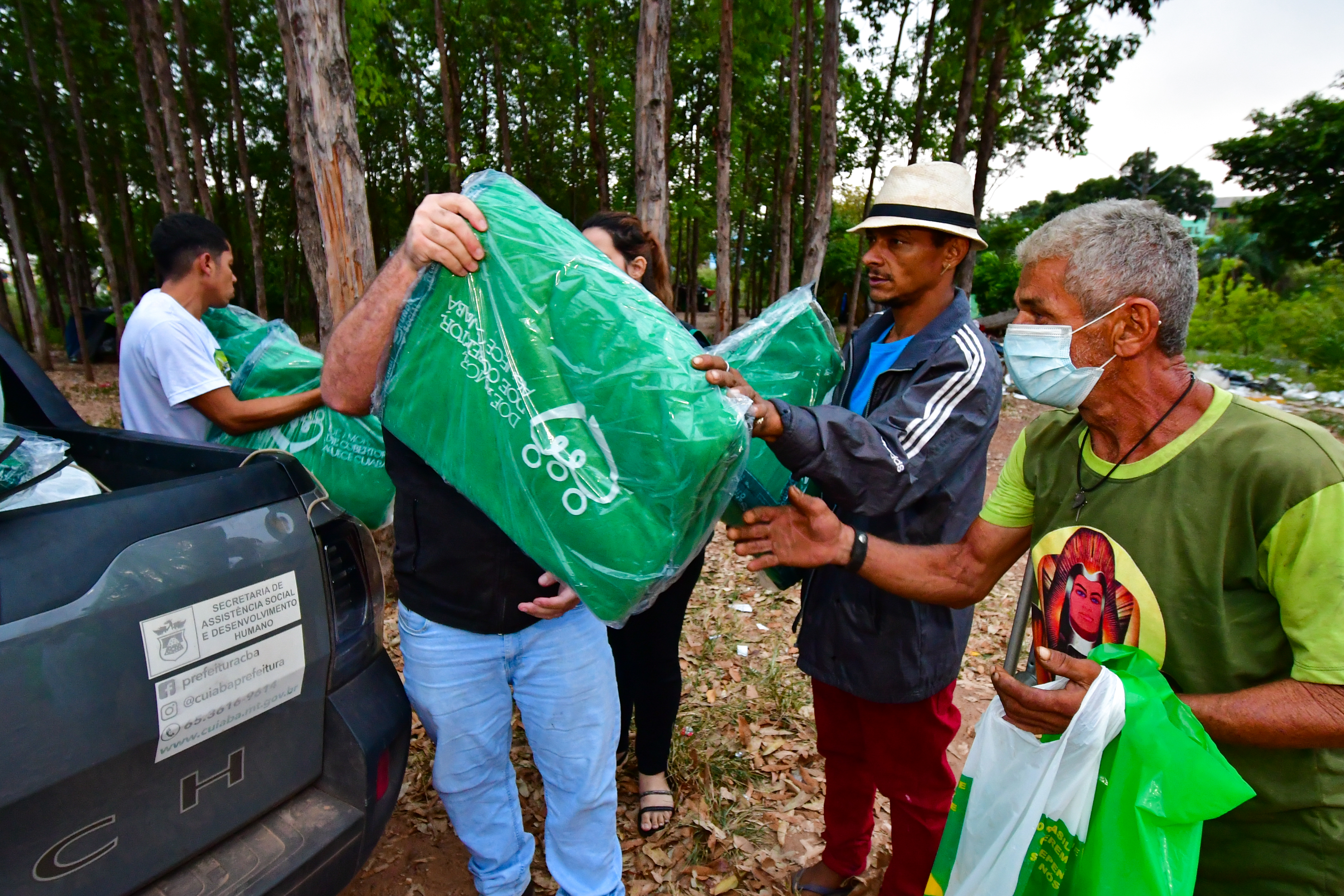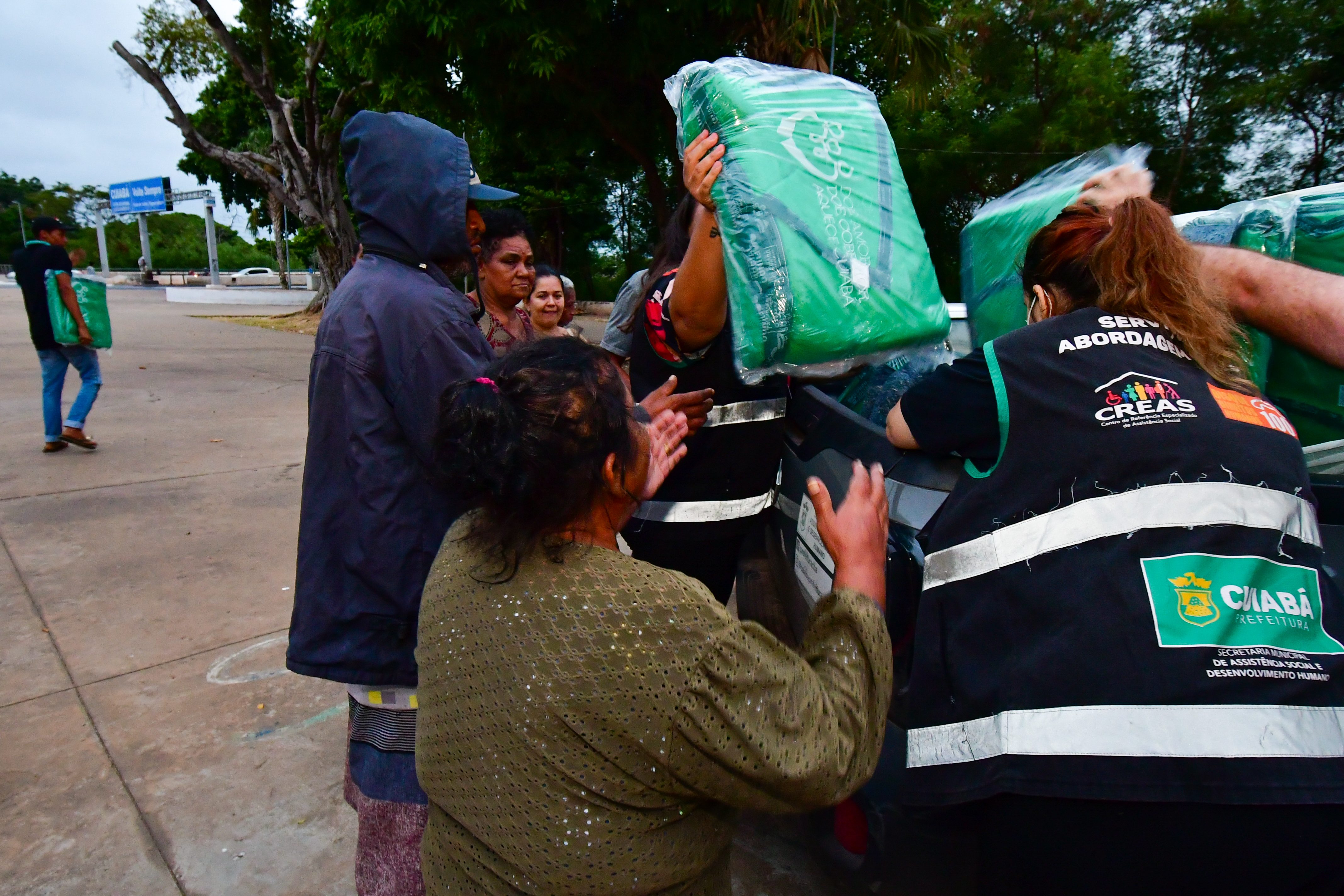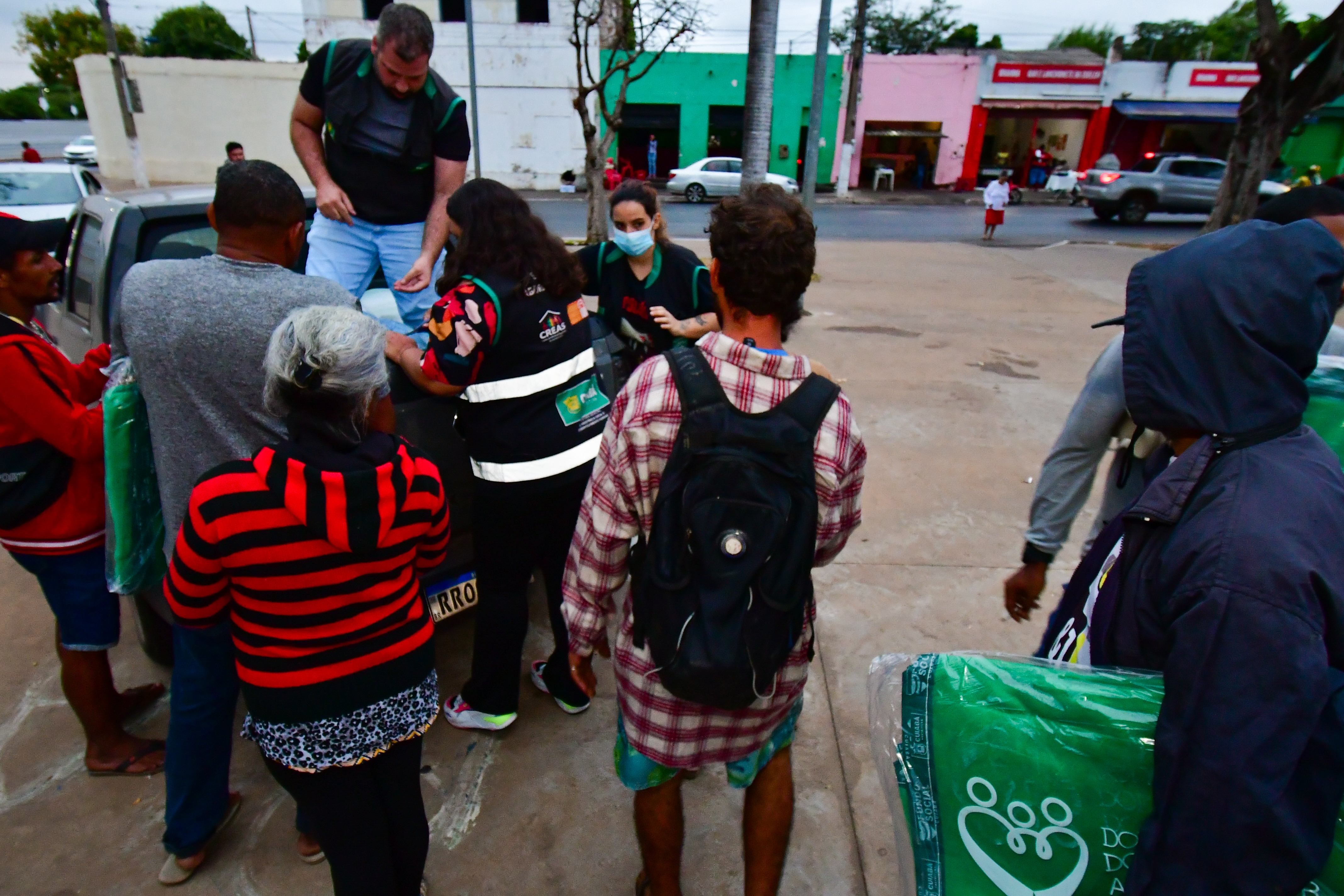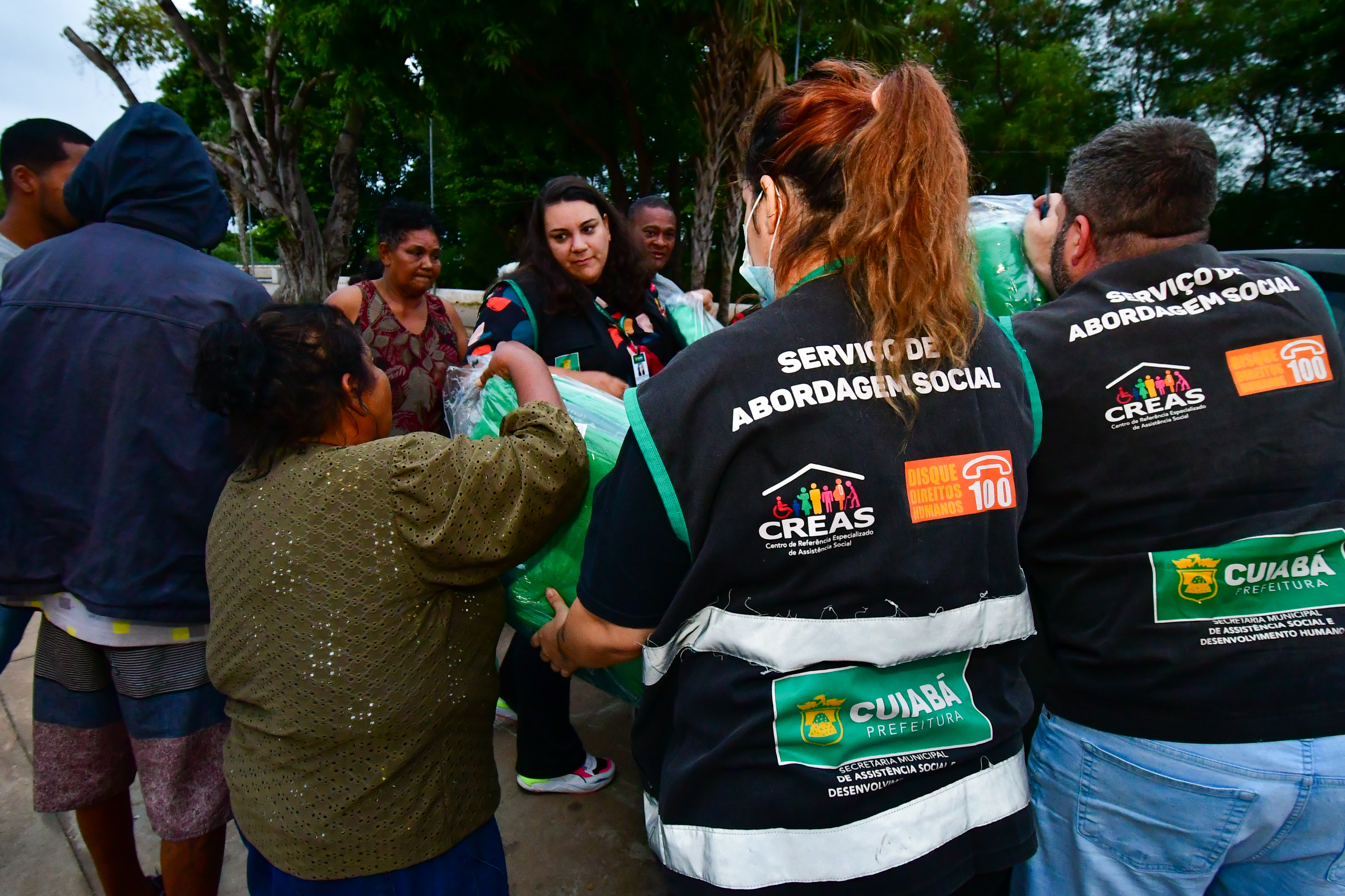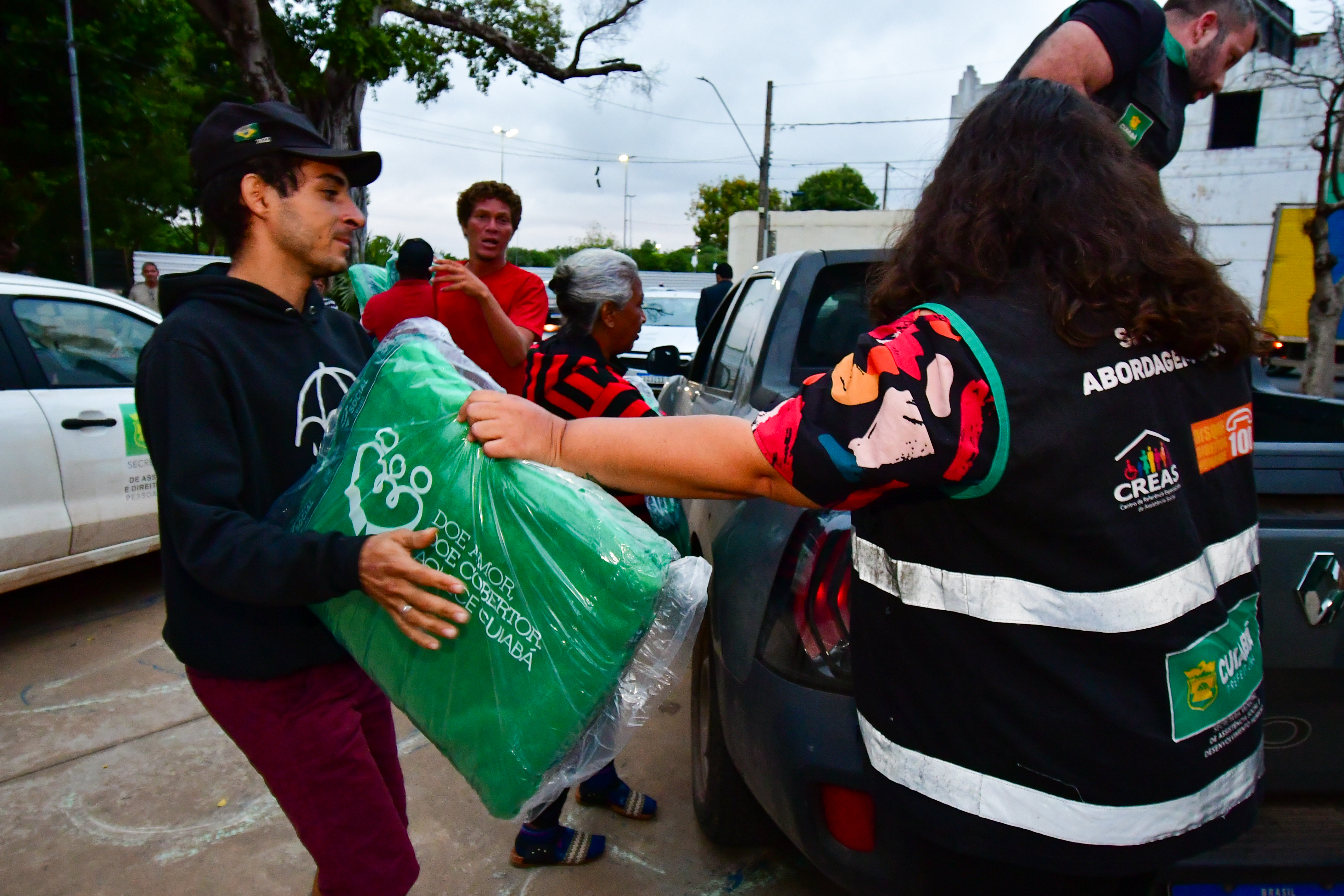 A Prefeitura de Cuiabá, via Secretaria Municipal de Assistência Social, Direitos Humanos e da Pessoa com Deficiência, entregou mais de 200 cobertores, nesta terça-feira (14), nos principais pontos de aglomeração da população em situação de rua da capital.