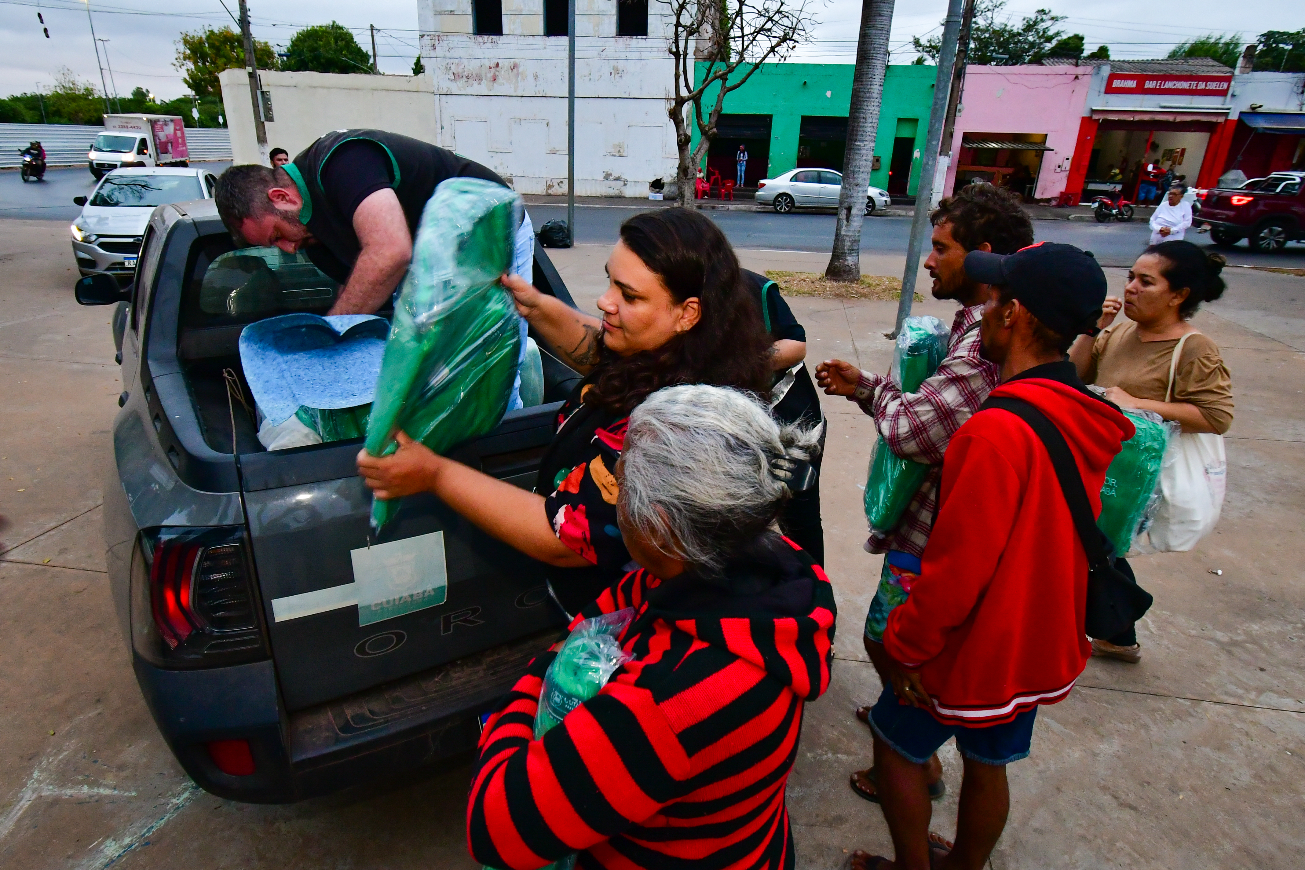 A ação é feita rotineiramente e utiliza os cobertores do estoque da campanha Aquece Cuiabá, promovida pela primeira-dama Márcia Pinheiro, que já distribuiu mais de 70 mil cobertores desde 2017.