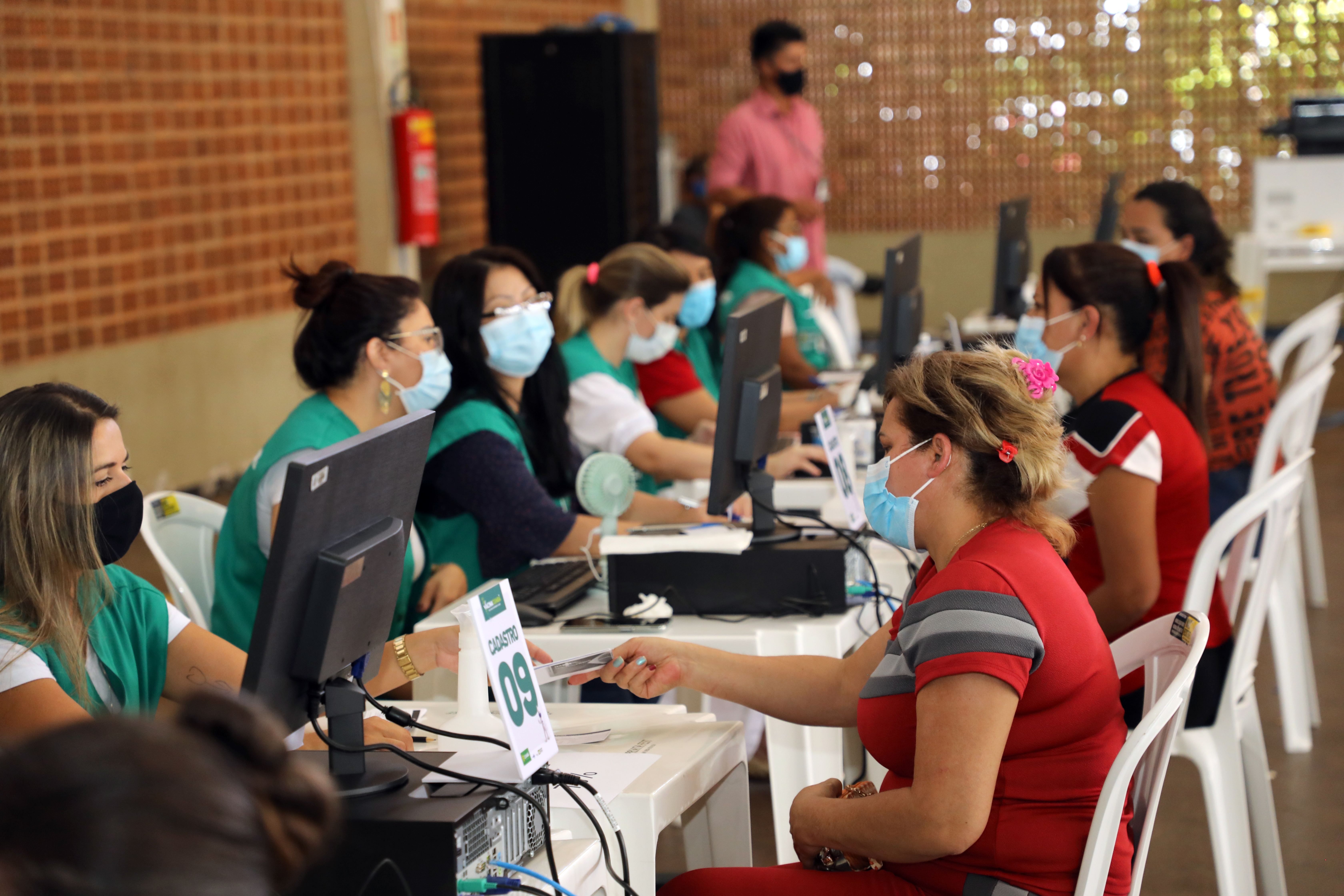 O acesso ao Centro de Eventos do Pantanal este sendo controlado, por questão de segurança. Dentro do prédio, a pessoa é recebida com uma senha e aguarda para ser chamada ao setor de Registro, onde é feito o lançamento do paciente no sistema do Ministério da Saúde. Em seguida, ocorre a etapa da vacinação e, depois, existe um espaço pós-vacina, onde a pessoa vacinada aguarda sentada por 30 minutos para que, em caso de reação adversa, receba atendimento médico imediato.