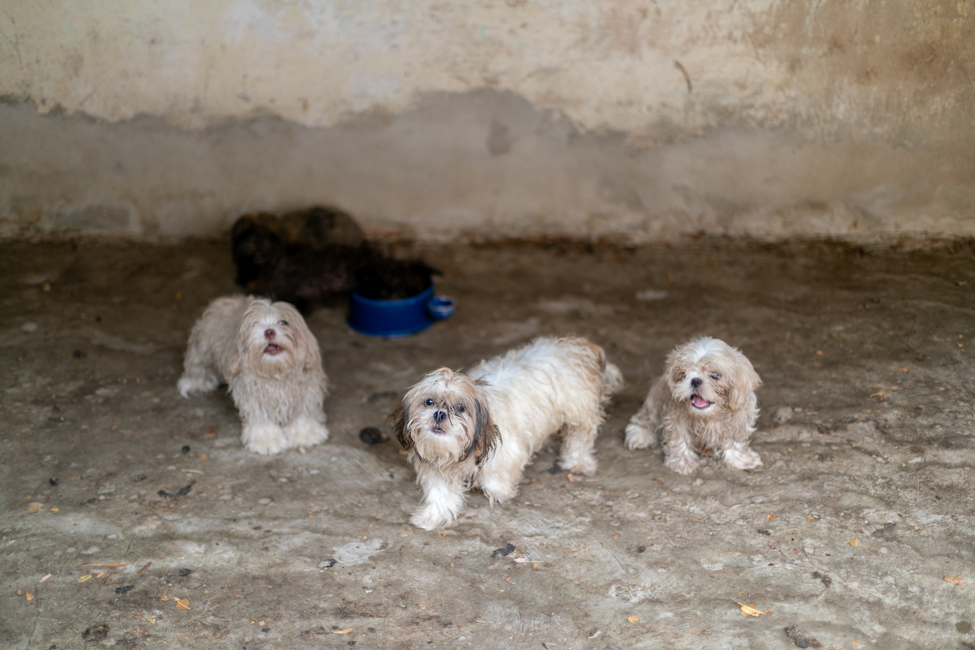 Os animais, de várias raças como Shih Tzu, Spitz Alemão e Pinscher, entre outras, estavam confinados em espaços pequenos, sem ventilação adequada e sem manejo sanitário. Também foram encontrados hamsters em um viveiro irregular. Muitos apresentavam sinais de doença e debilidade física.