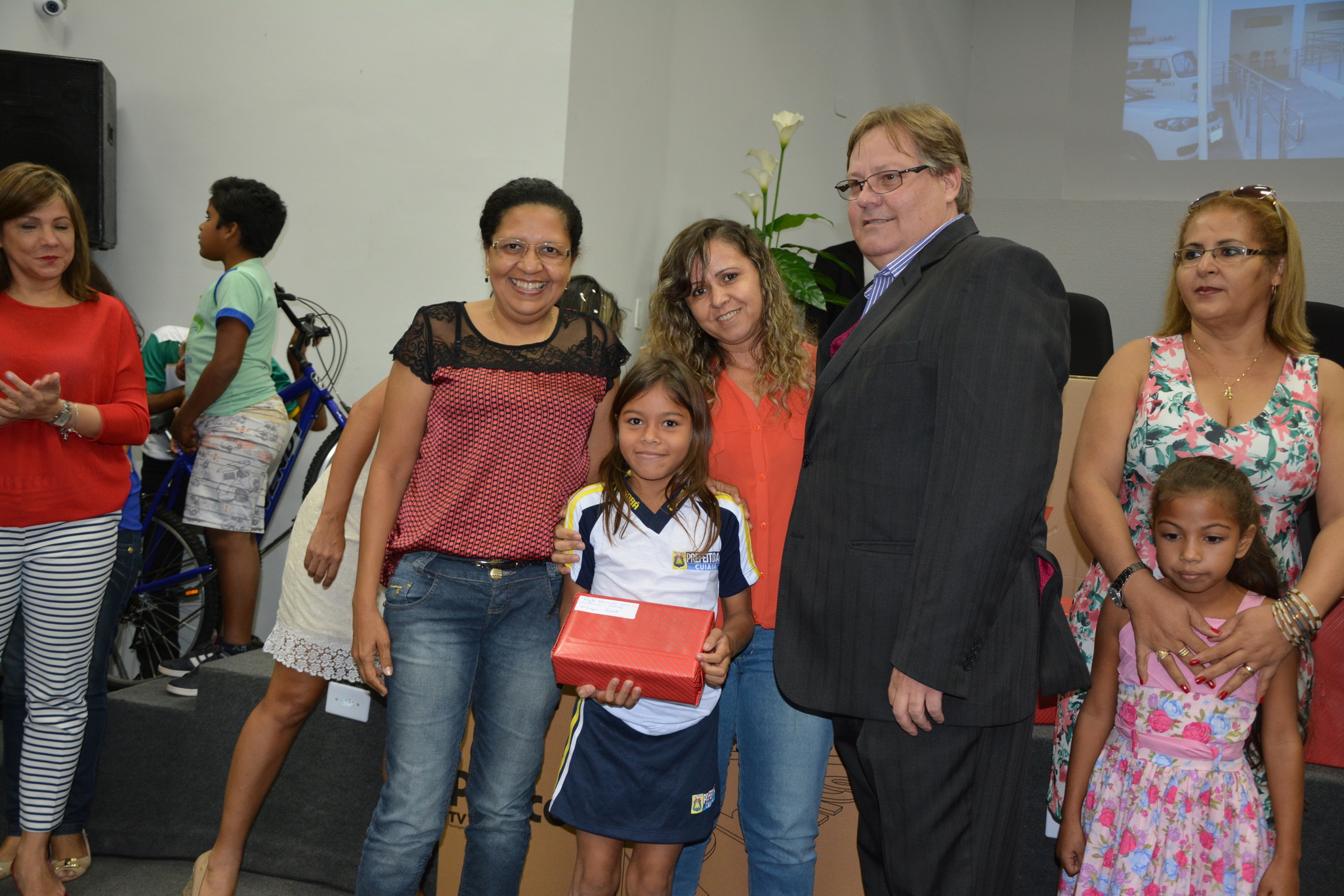 O concurso de desenho premiou os alunos do primeiro lugar com um tablet, uma bicicleta para o segundo lugar e patins para o terceiro colocado. Todos ganharam medalhas.