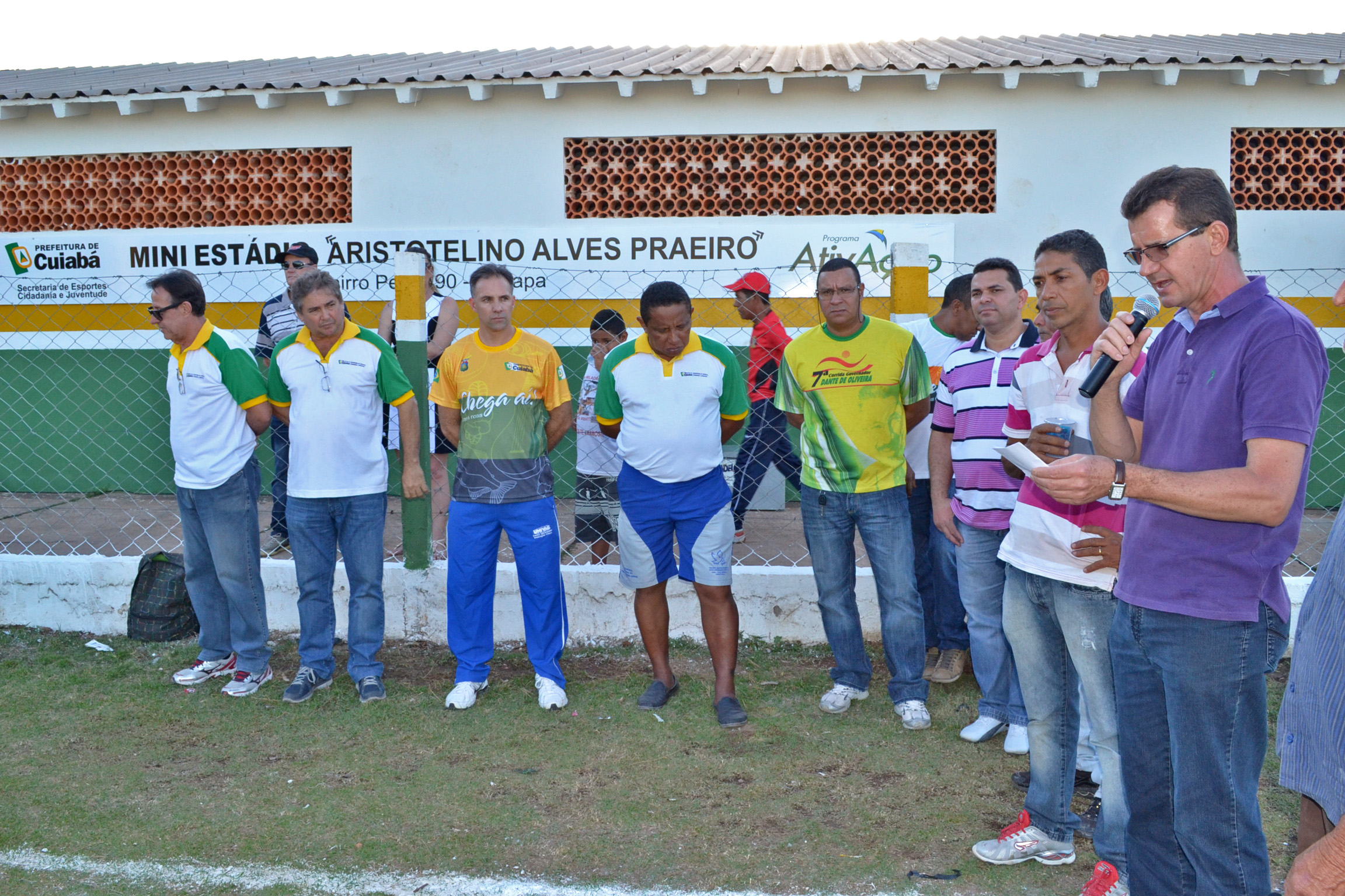Os moradores do bairro Pedra 90 foram receber neste sábado (02) a reforma do mini estádio “Aristotelino Alves Praeiro”, o segundo entregue pela Prefeitura de Cuiabá do total de 12 que estão sendo reformados. A comemoração foi marcada por uma partida com dois times de futebol da região.