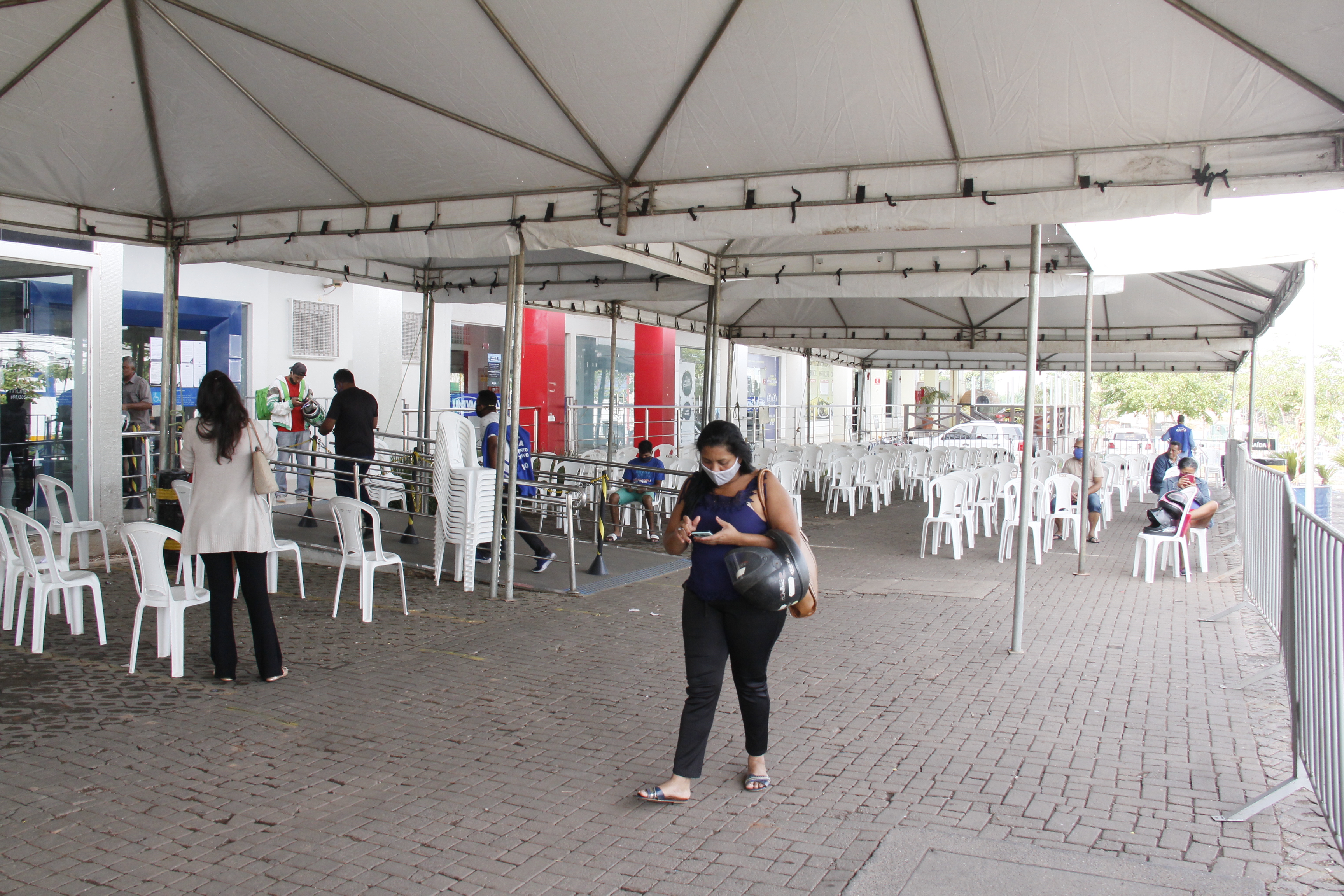 As pessoas que precisam se deslocar a uma das agências da Caixa para sacar o auxílio emergencial no valor de R$ 600 em razão da pandemia do novo Coronavirus contam com uma estrutura completa composta por tendas e cadeiras. Por determinação do prefeito Emanuel Pinheiro, todas as unidades da Caixa que realizam o pagamento do benefício contam tendas e cadeiras, em respeito à população.
