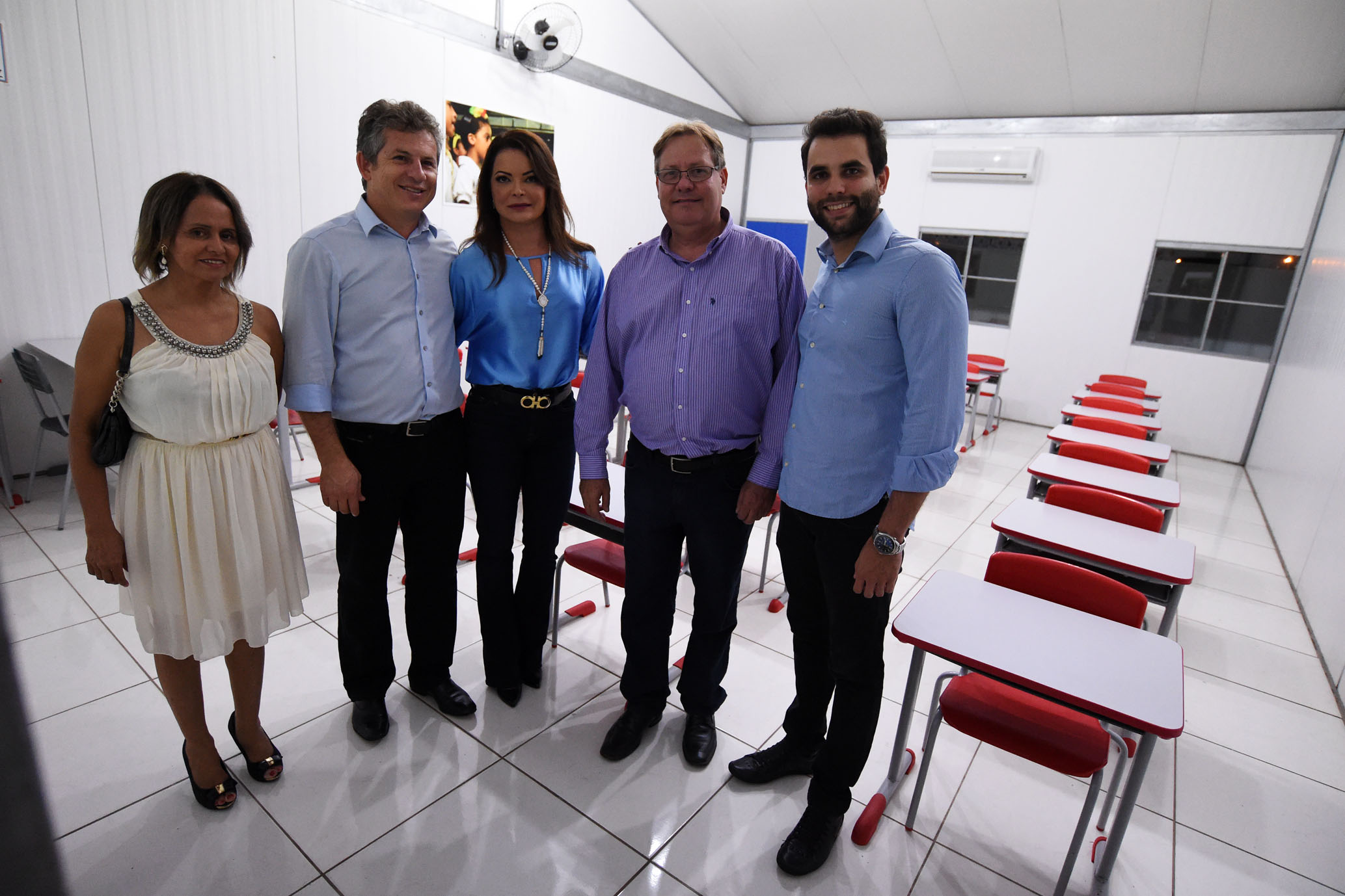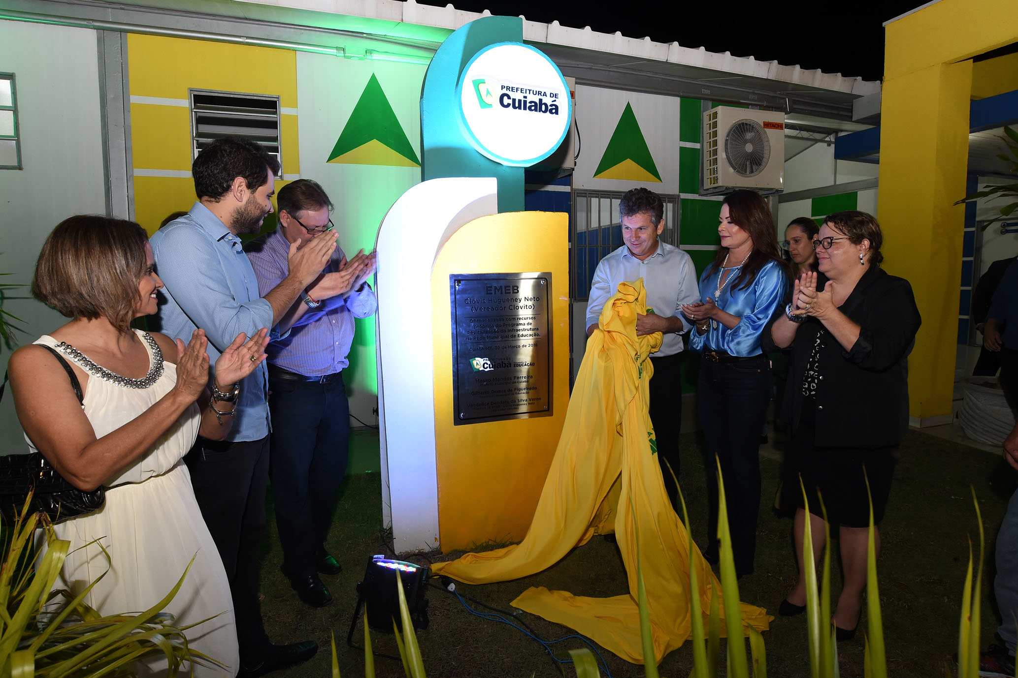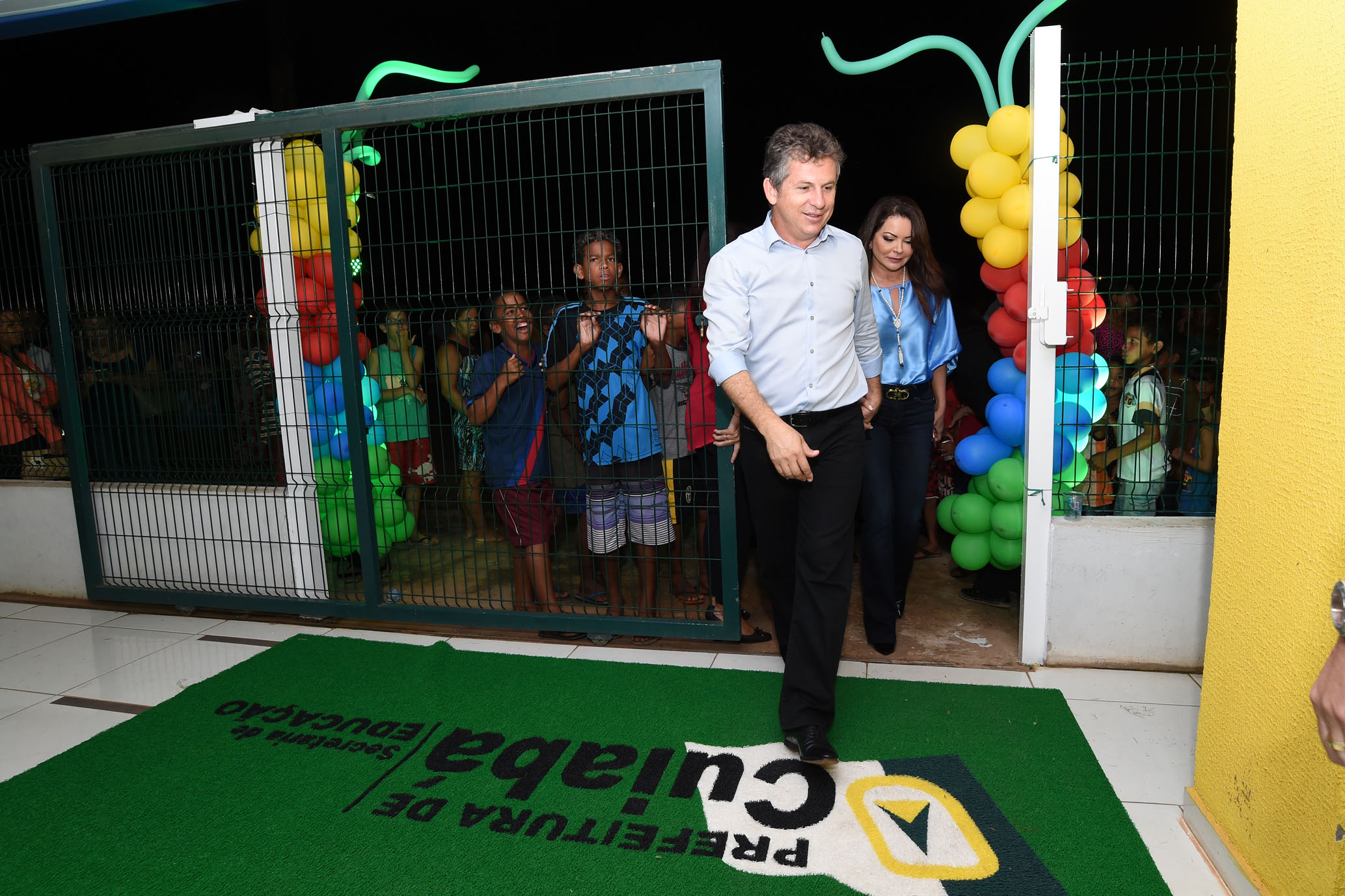O prefeito Mauro Mendes, acompanhado da primeira dama Virginia Mendes, inaugurou na noite desta quarta-feira (30) a escola municipal Clóvis Hugueney Neto – Vereador Clovito, localizada no residencial Altos do Parque. Esta é a primeira unidade de ensino de Cuiabá construída em tempo recorde, em apenas 120 dias.