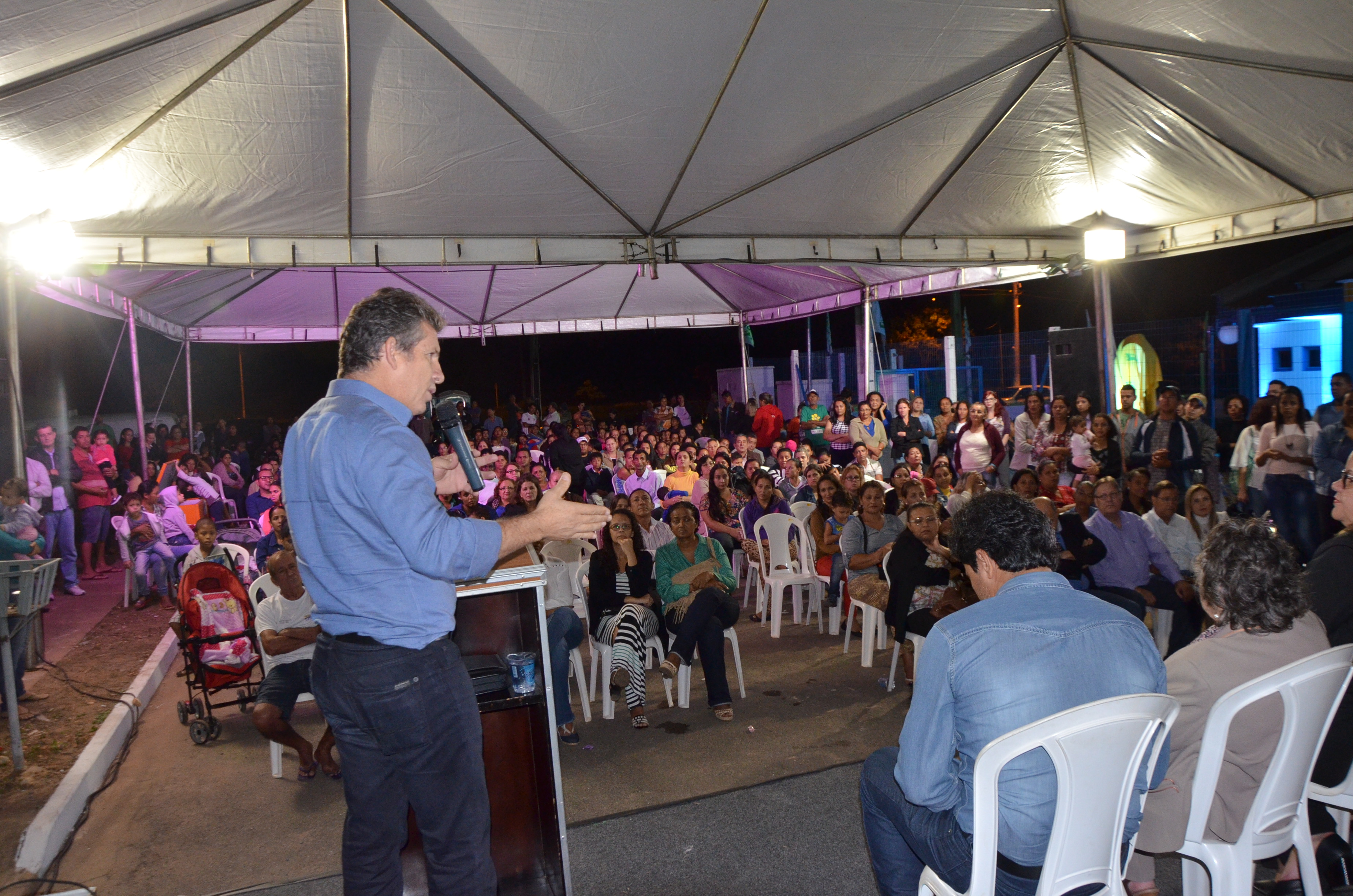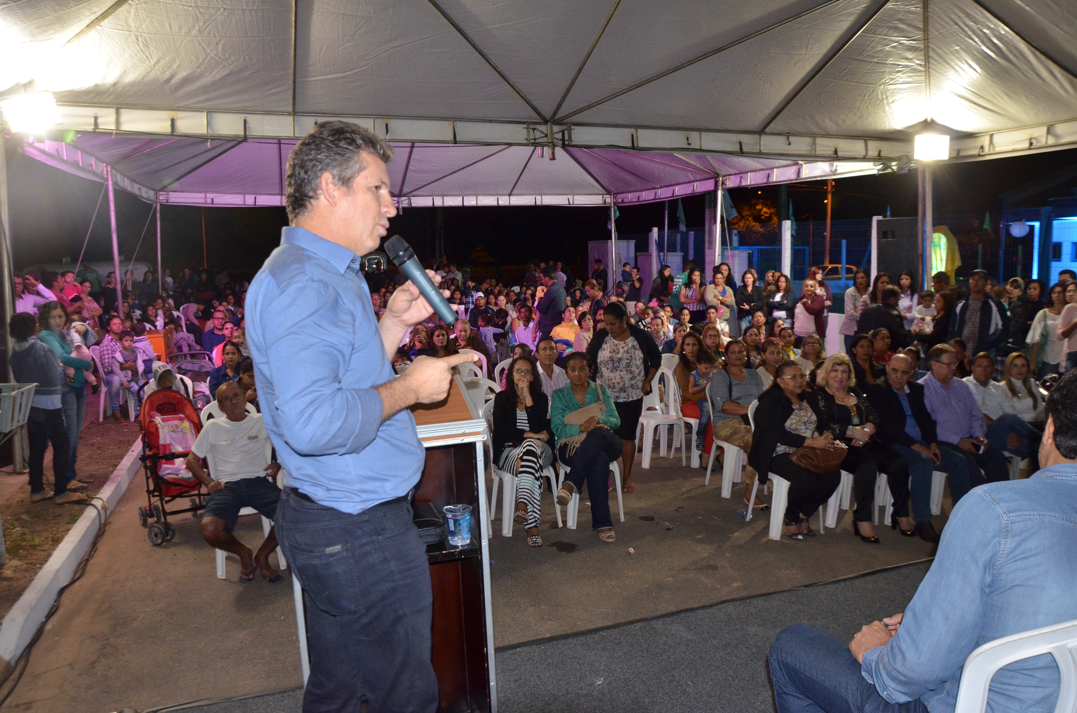 Nem mesmo o clima atípico que fez em Cuiabá na noite desta quarta-feira (18), com garoa fina e temperatura de 22 graus, impediu que a comunidade do Residencial Salvador Costa Marques prestigiasse a inauguração do Centro Municipal de Educação Infantil (CMEI) Governador José Garcia Neto. Este é o oitavo CMEI entregue pela Prefeitura de Cuiabá este ano, o que garante a ampliação de 1,8 mil novas vagas para a educação infantil.