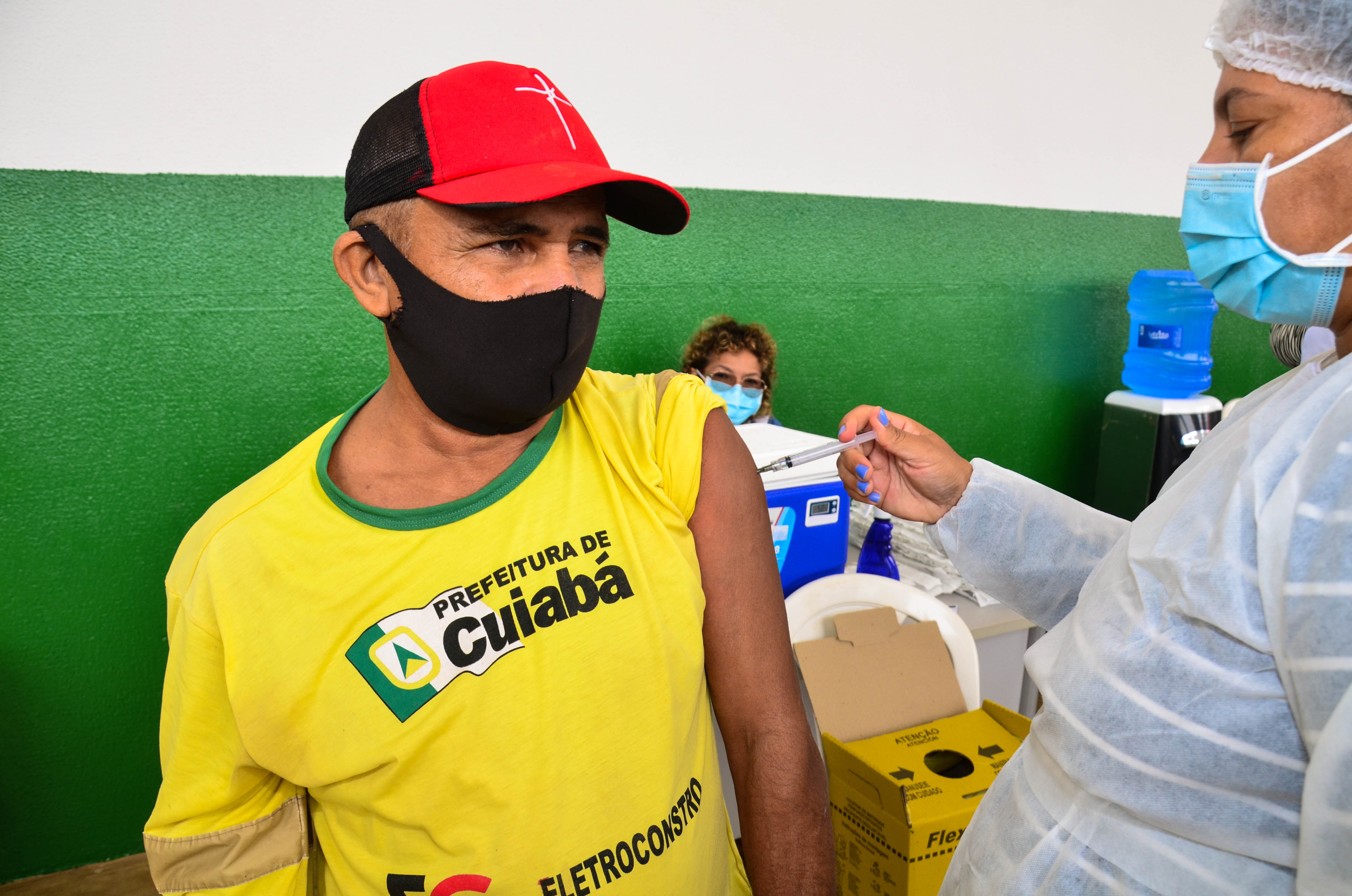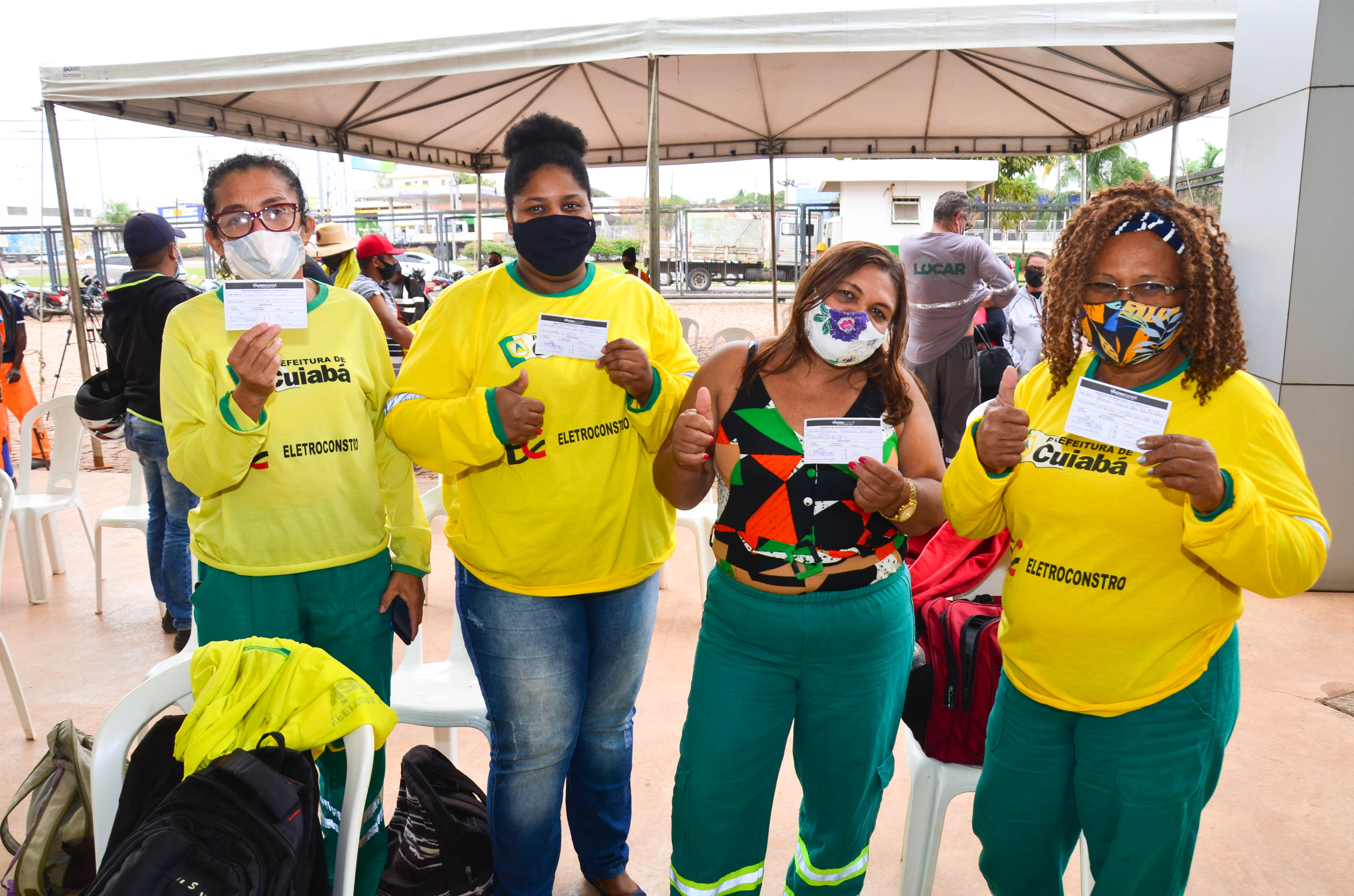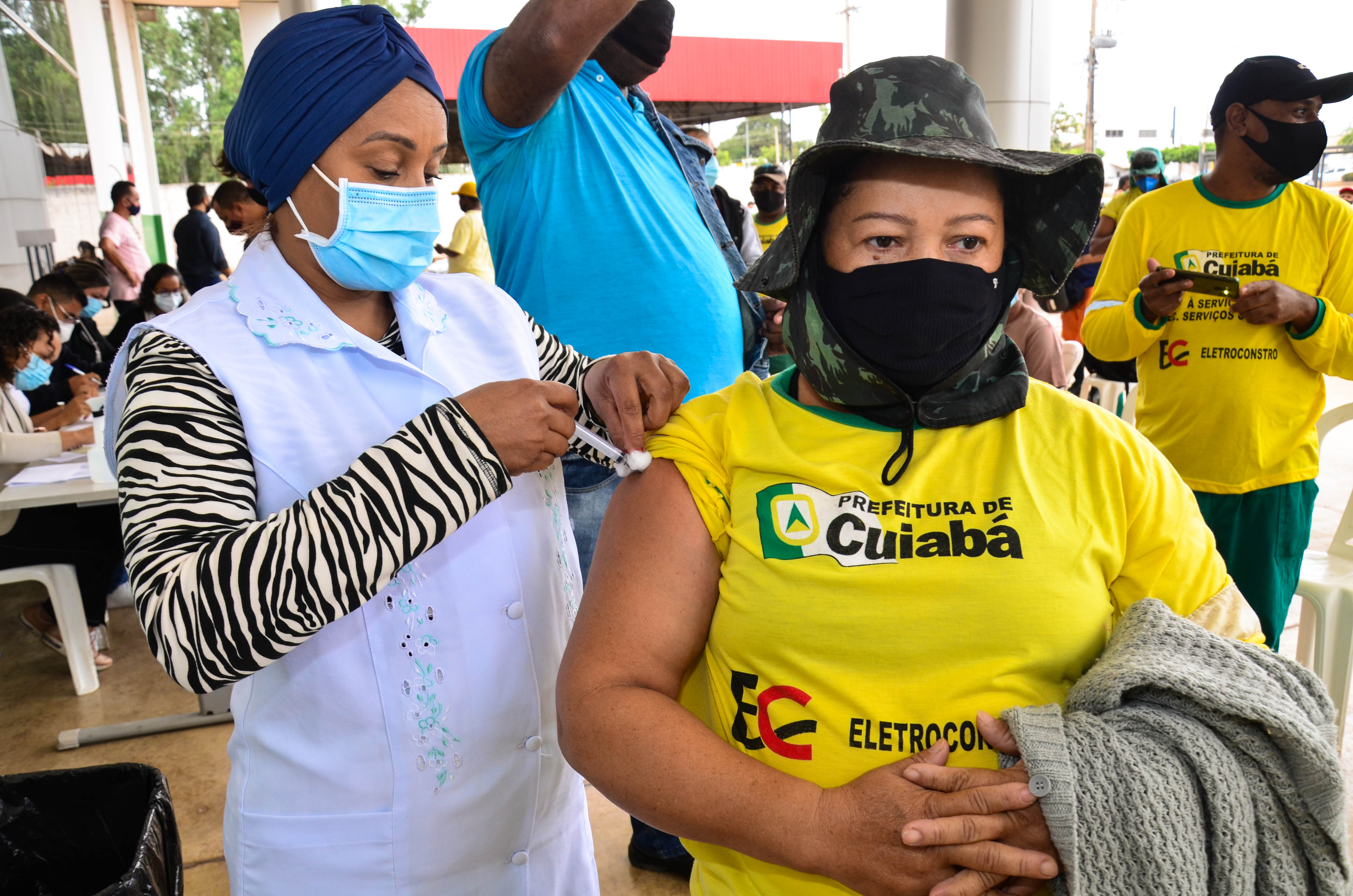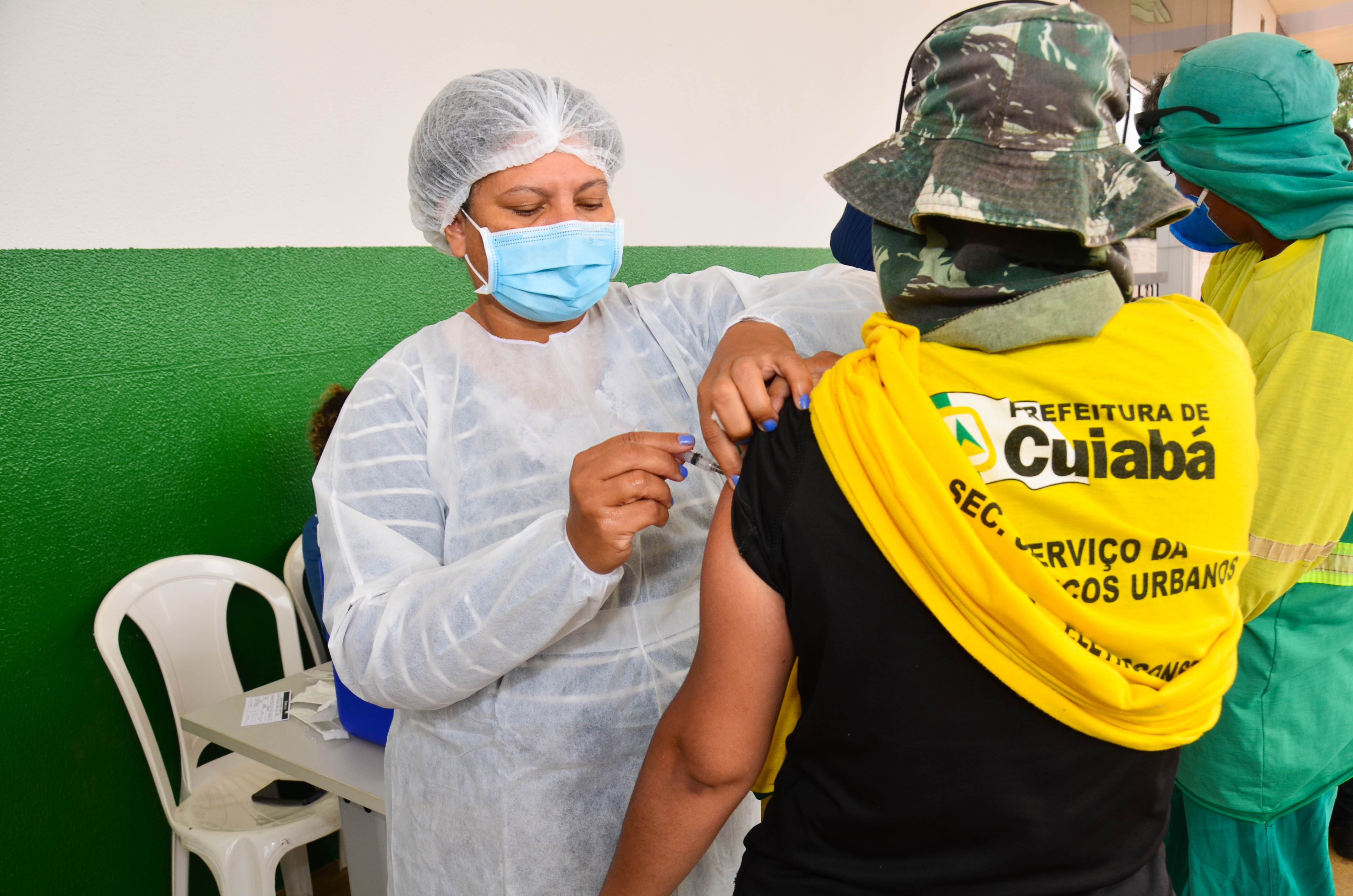 Cerca de 950 trabalhadores, entre varredores, garis da coleta de lixo domiciliar e catadores de recicláveis começaram a receber a primeira dose da vacina contra a Covid-19. A ação é coordenada pela Secretaria Municipal de Saúde, em parceria com a Empresa Cuiabana de Zeladoria e Serviços Urbanos (Limpurb), e faz parte da campanha “Vacina Cuiabá – sua vida em primeiro lugar”.