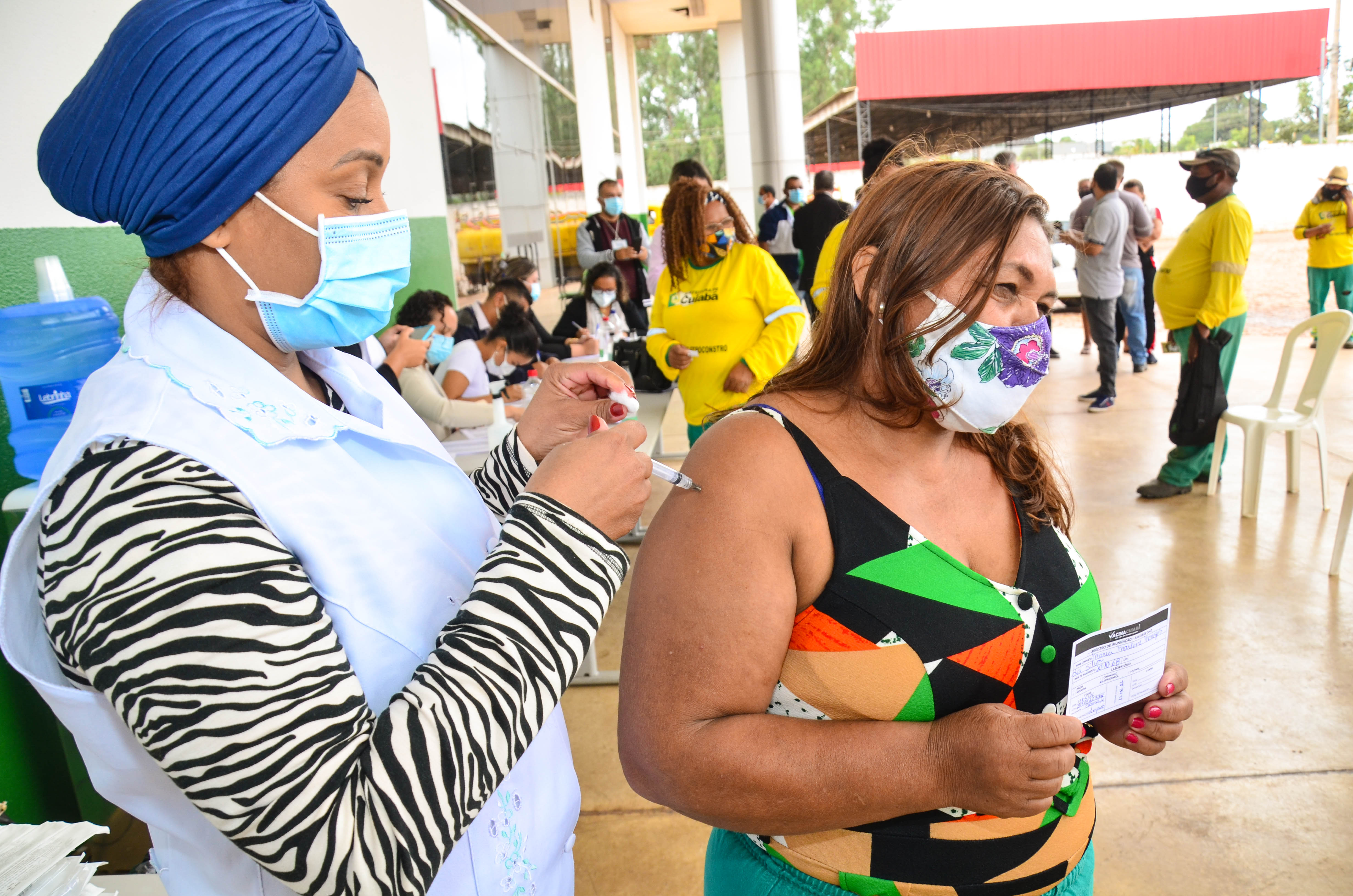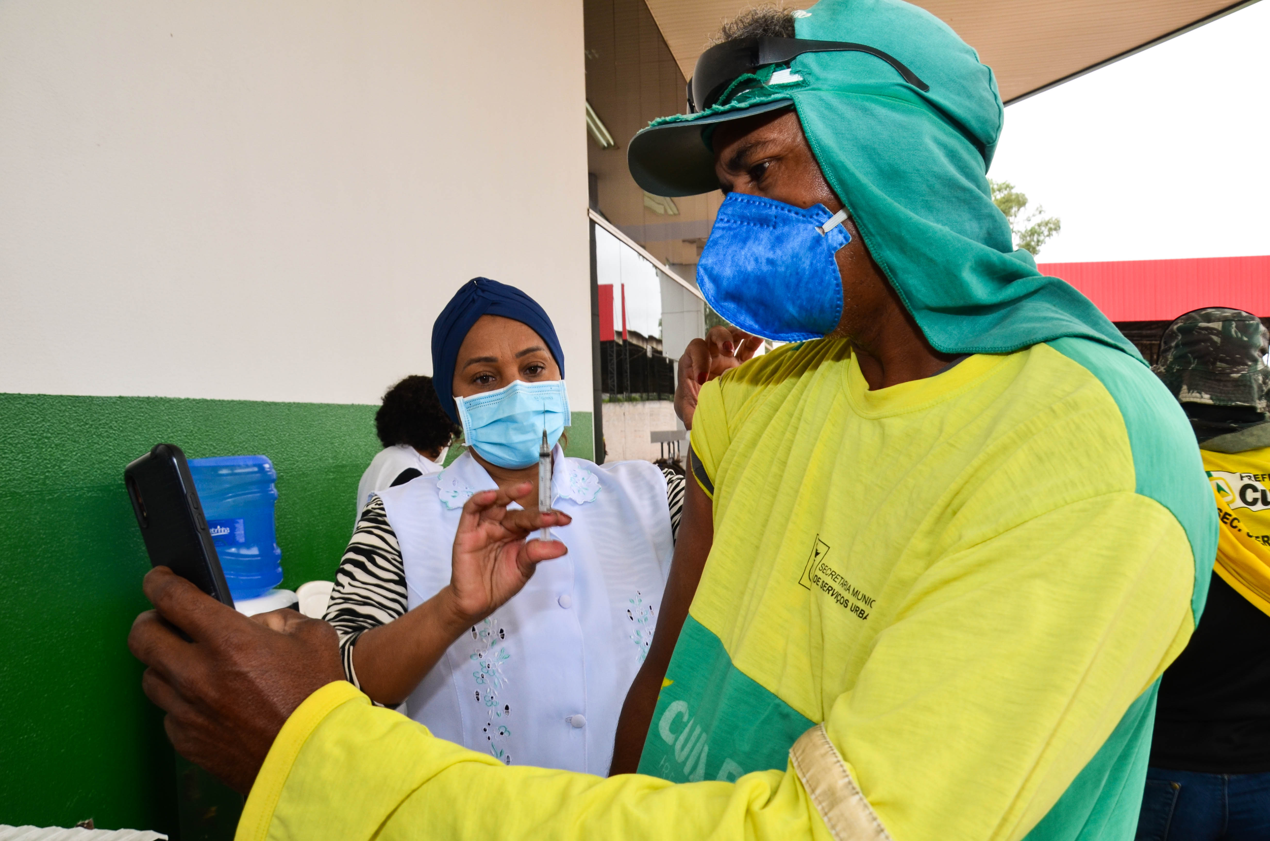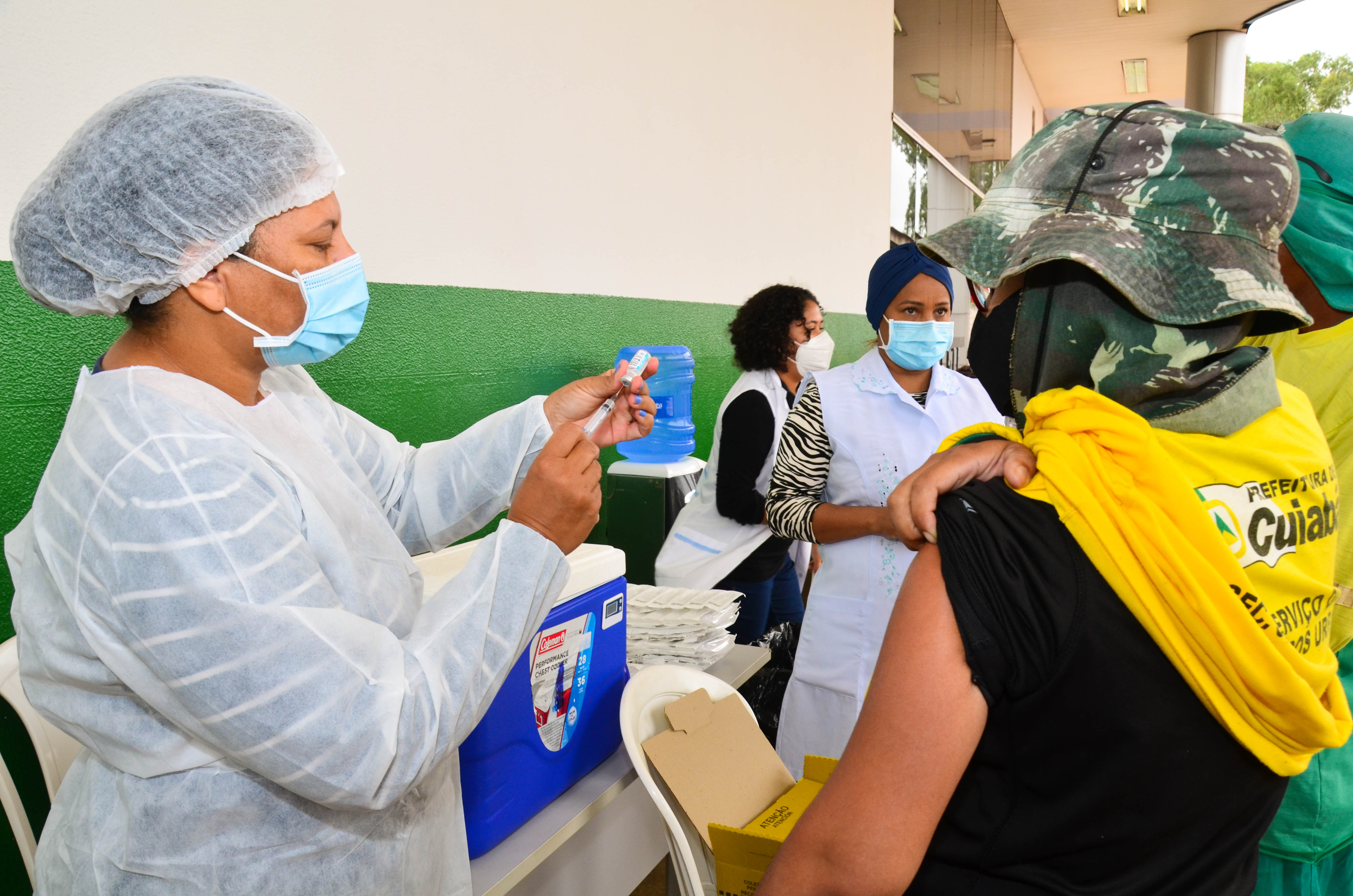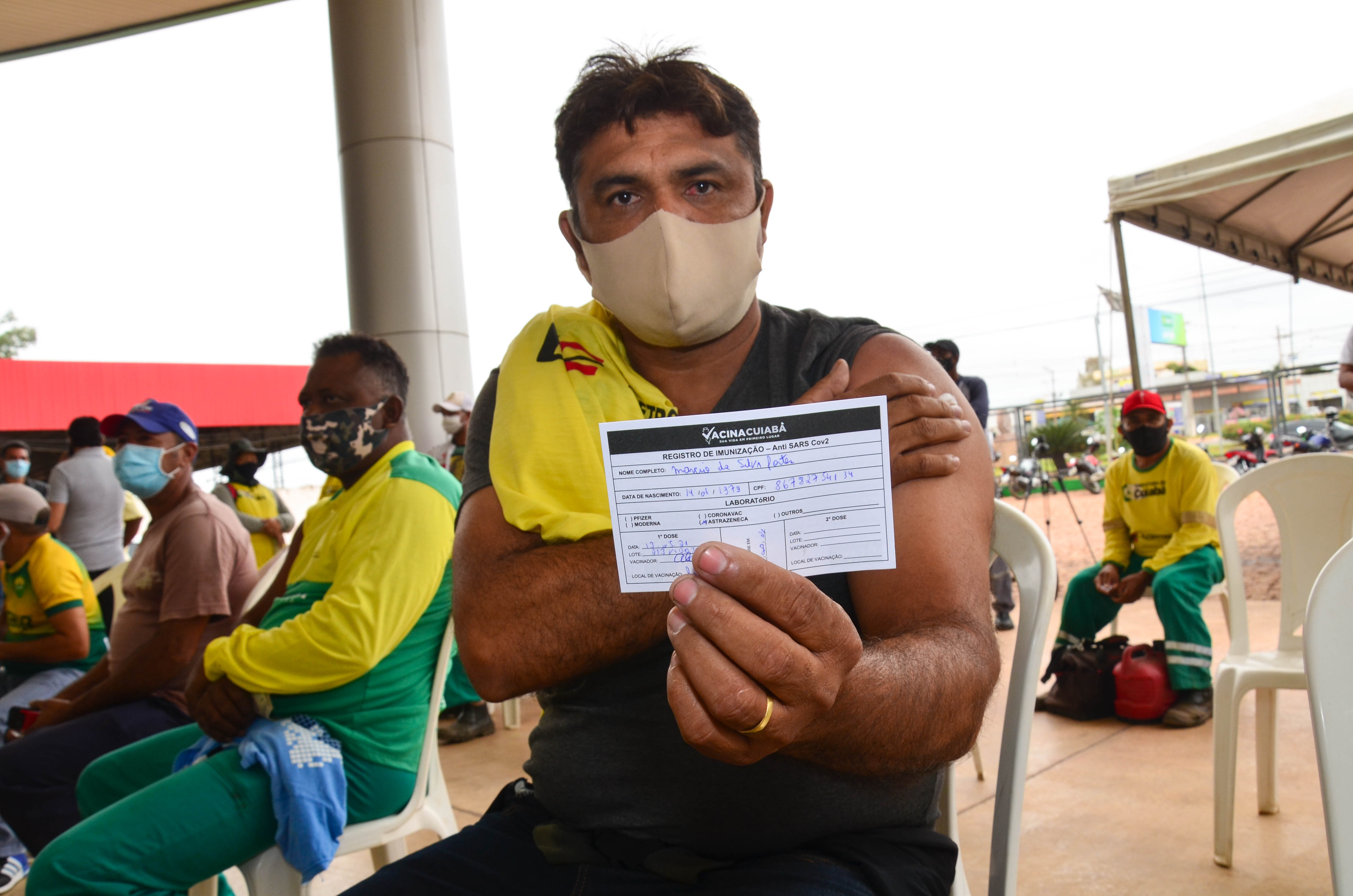 Cerca de 950 trabalhadores, entre varredores, garis da coleta de lixo domiciliar e catadores de recicláveis começaram a receber a primeira dose da vacina contra a Covid-19. A ação é coordenada pela Secretaria Municipal de Saúde, em parceria com a Empresa Cuiabana de Zeladoria e Serviços Urbanos (Limpurb), e faz parte da campanha “Vacina Cuiabá – sua vida em primeiro lugar”.