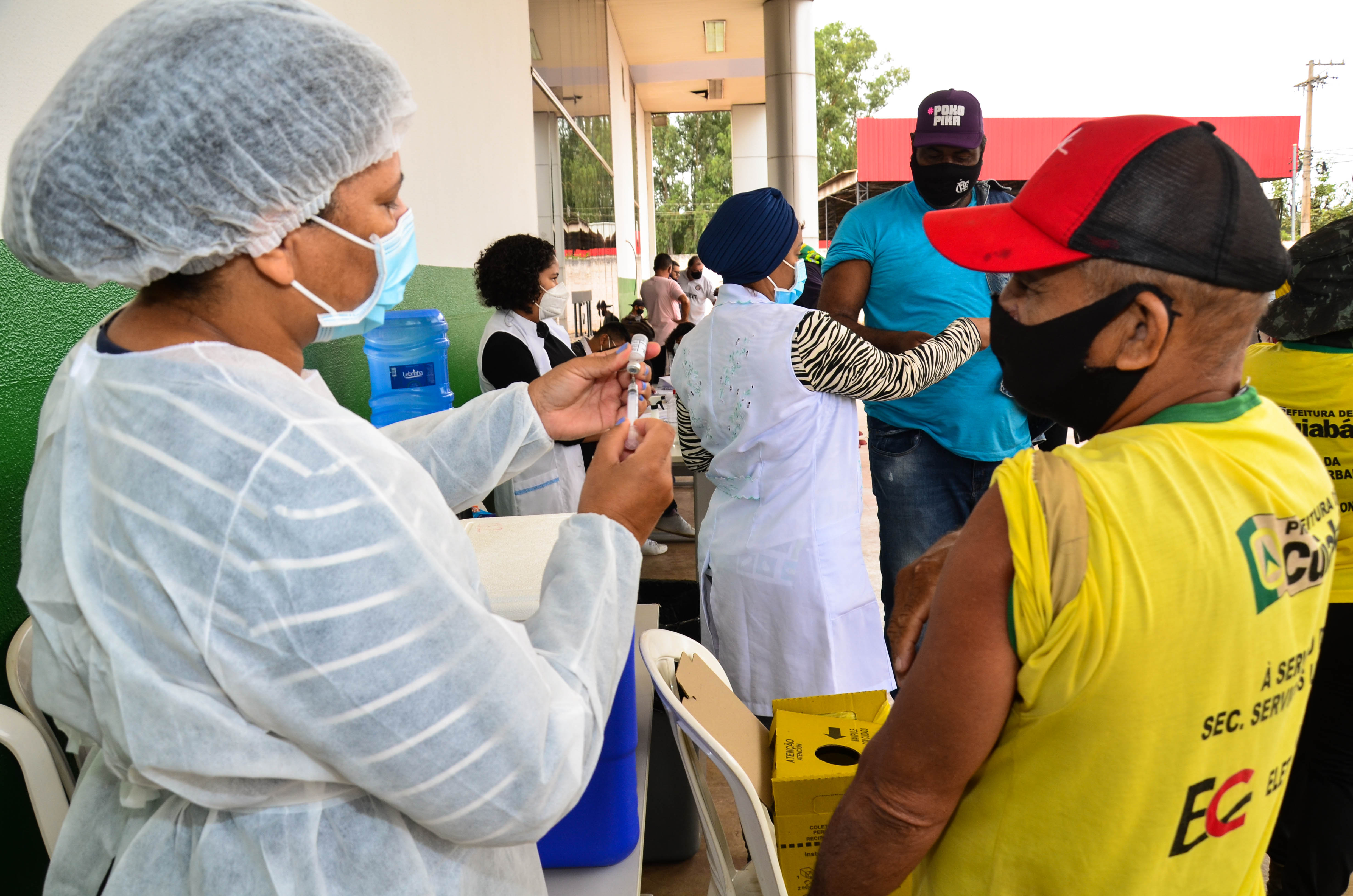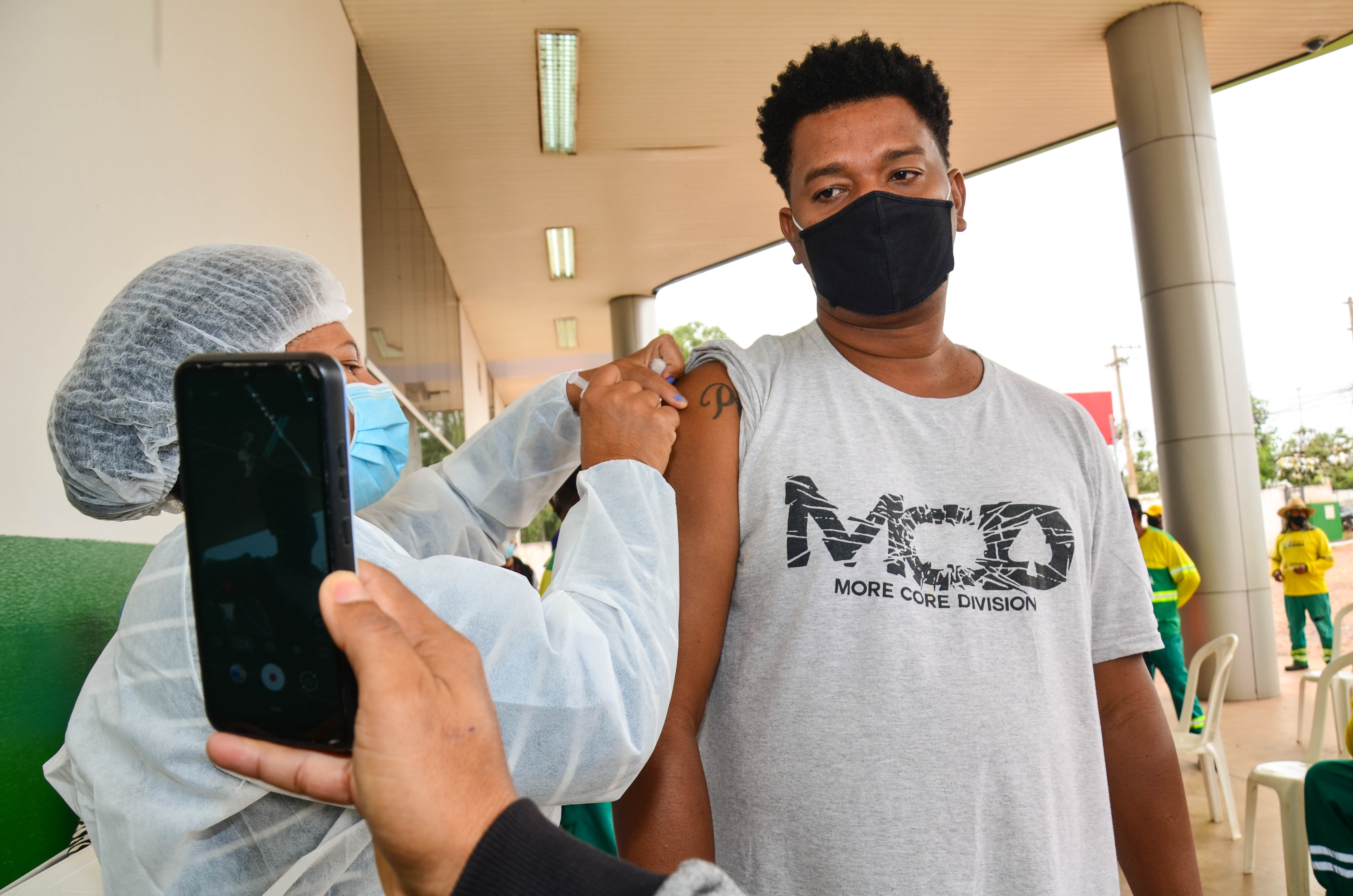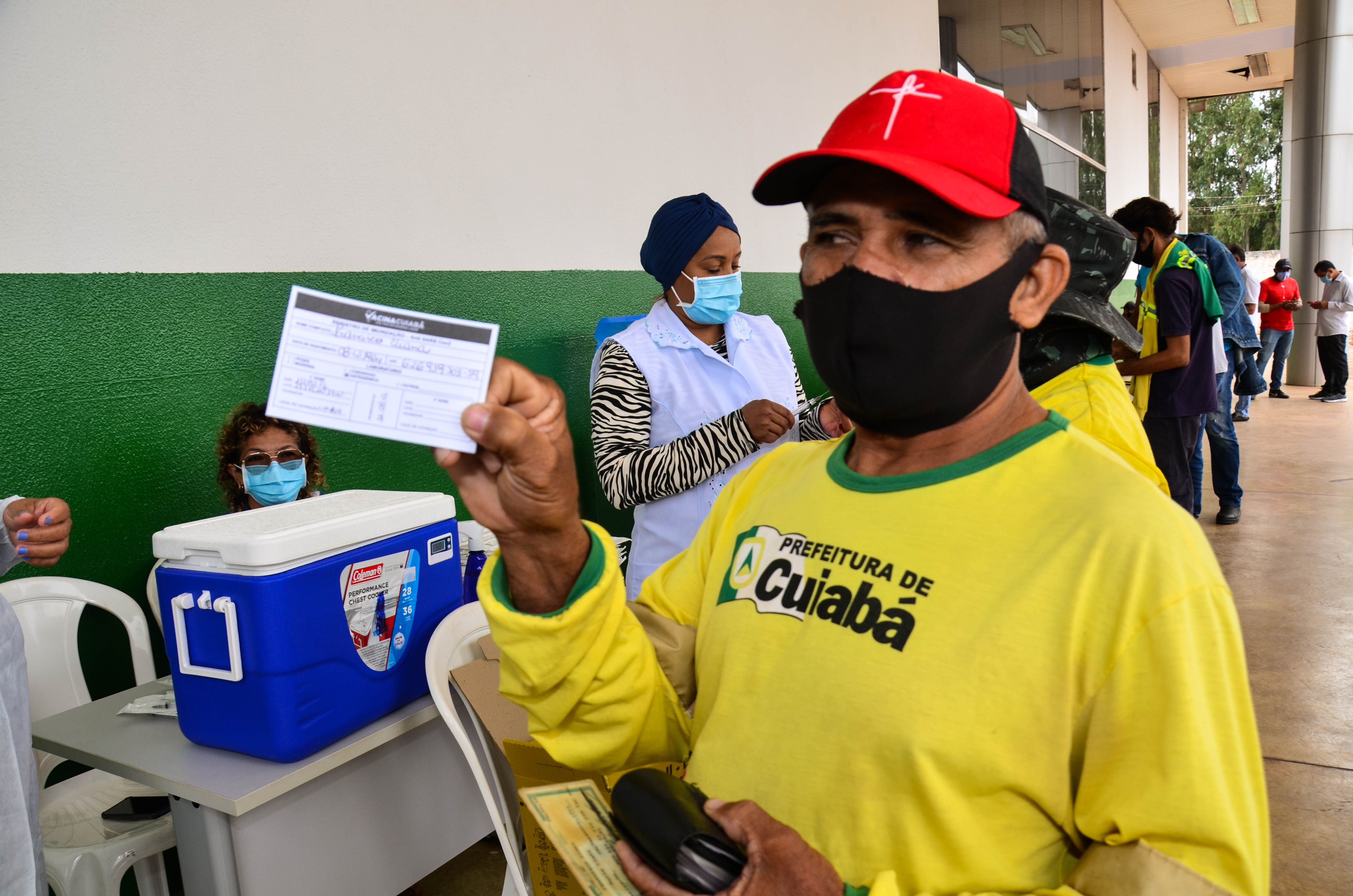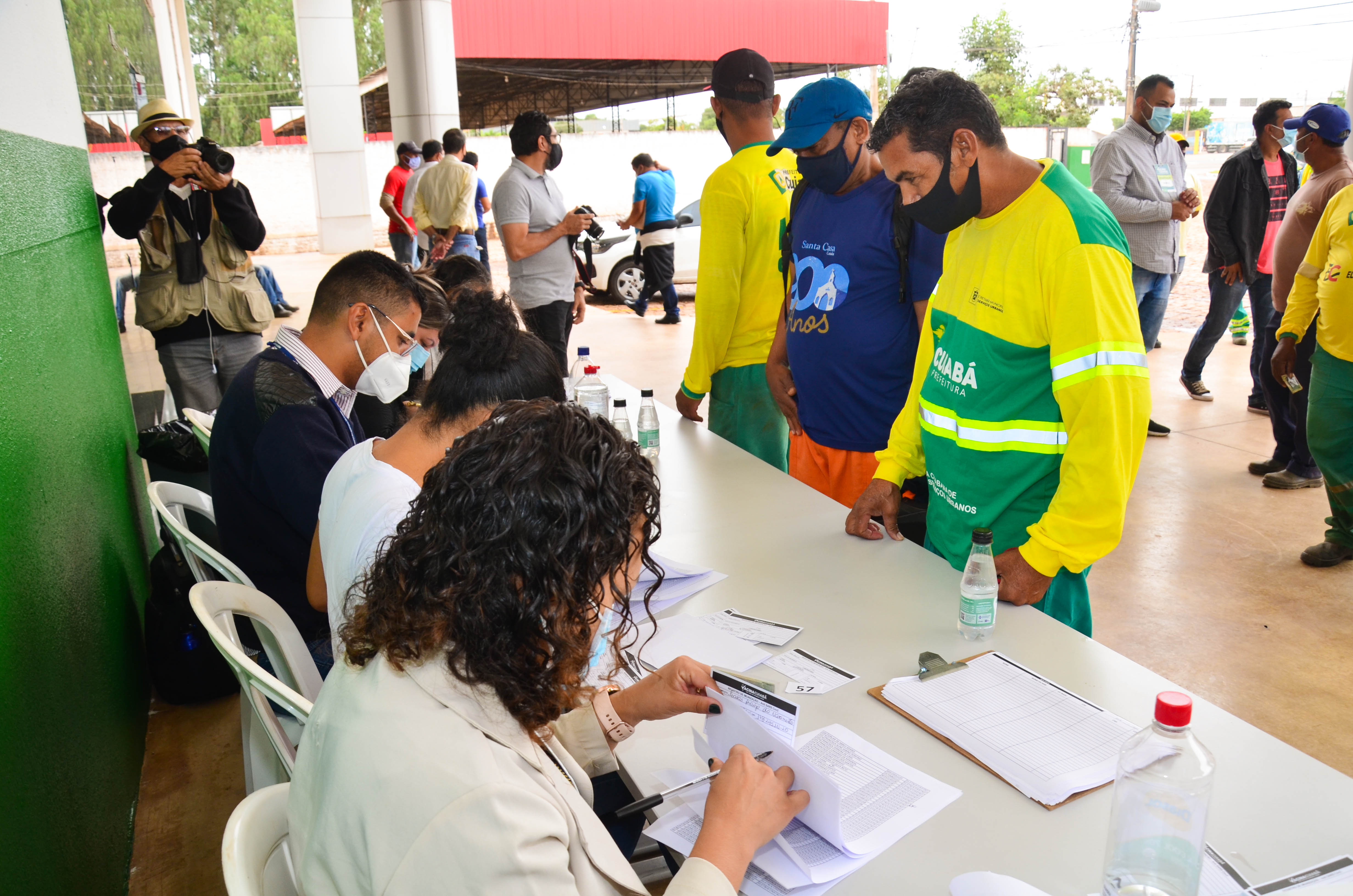 Cerca de 950 trabalhadores, entre varredores, garis da coleta de lixo domiciliar e catadores de recicláveis começaram a receber a primeira dose da vacina contra a Covid-19. A ação é coordenada pela Secretaria Municipal de Saúde, em parceria com a Empresa Cuiabana de Zeladoria e Serviços Urbanos (Limpurb), e faz parte da campanha “Vacina Cuiabá – sua vida em primeiro lugar”.