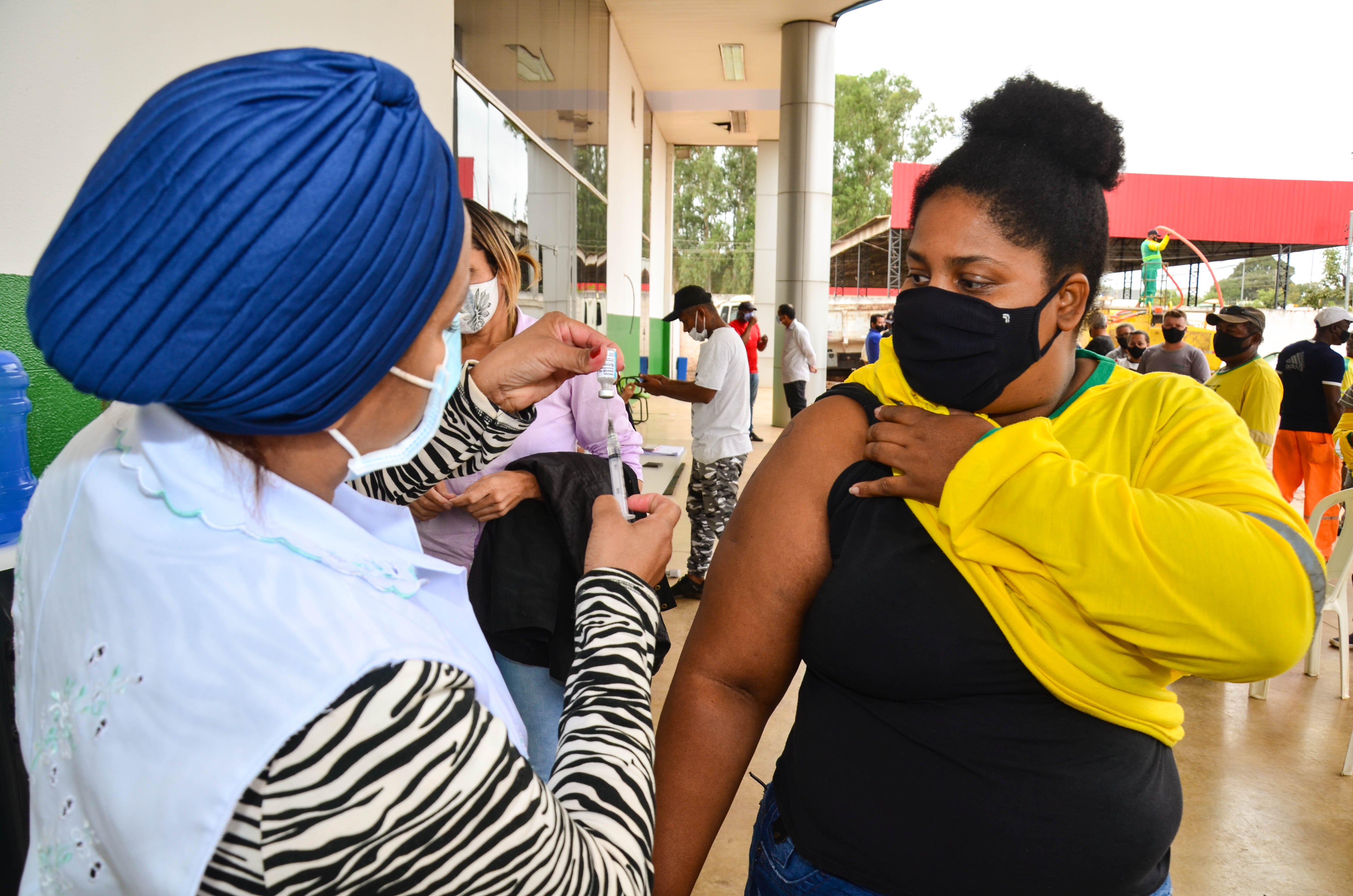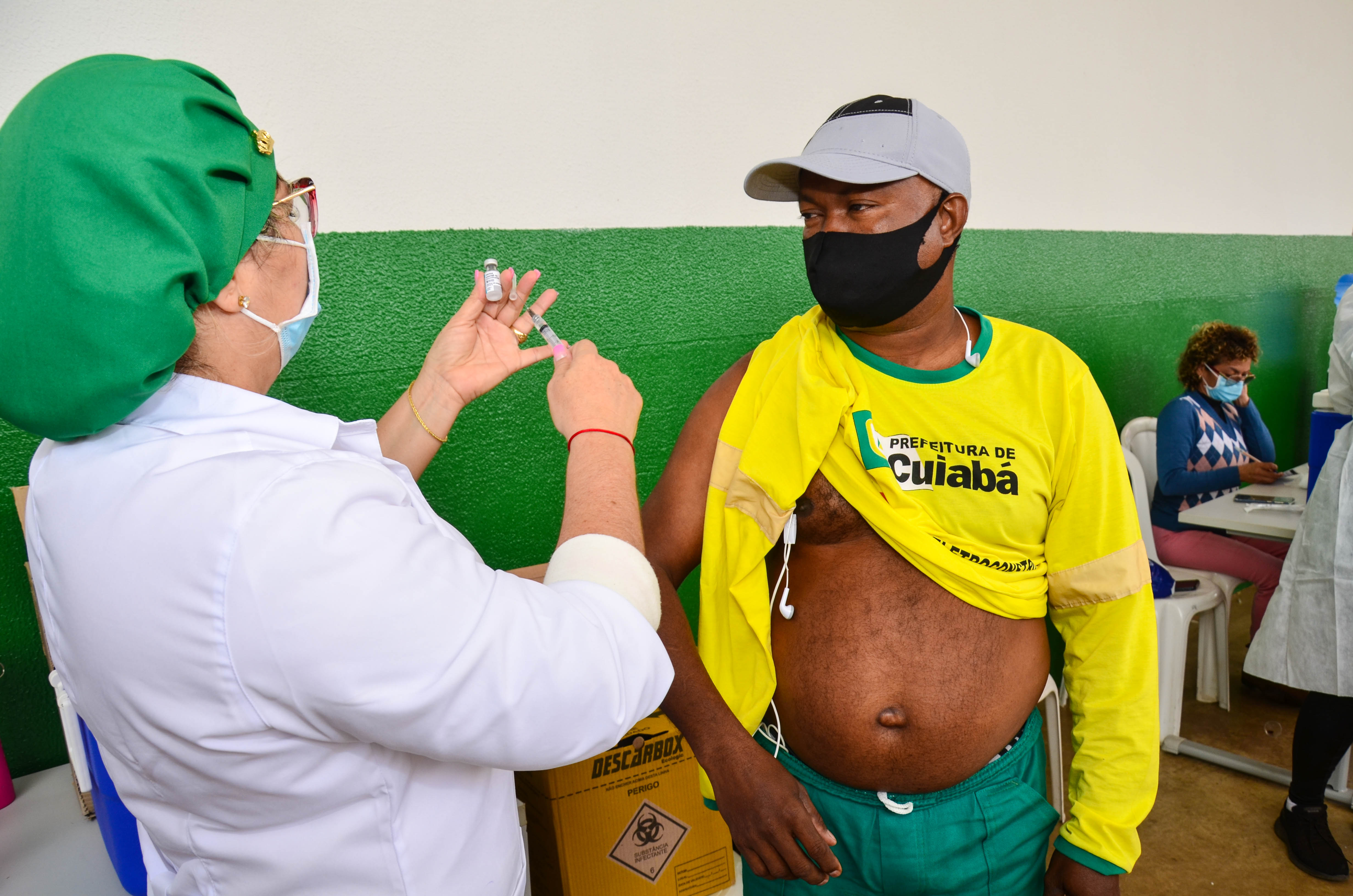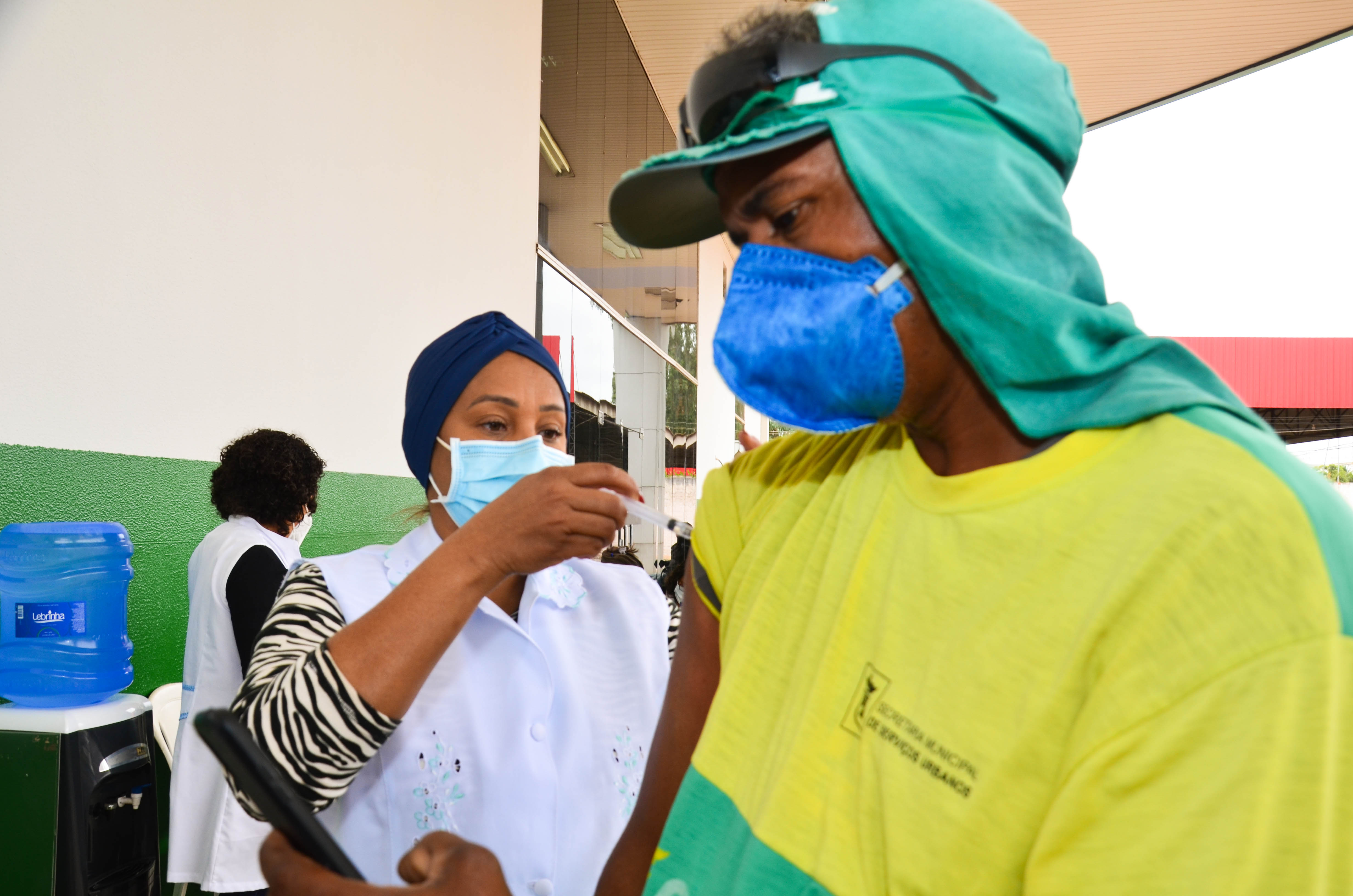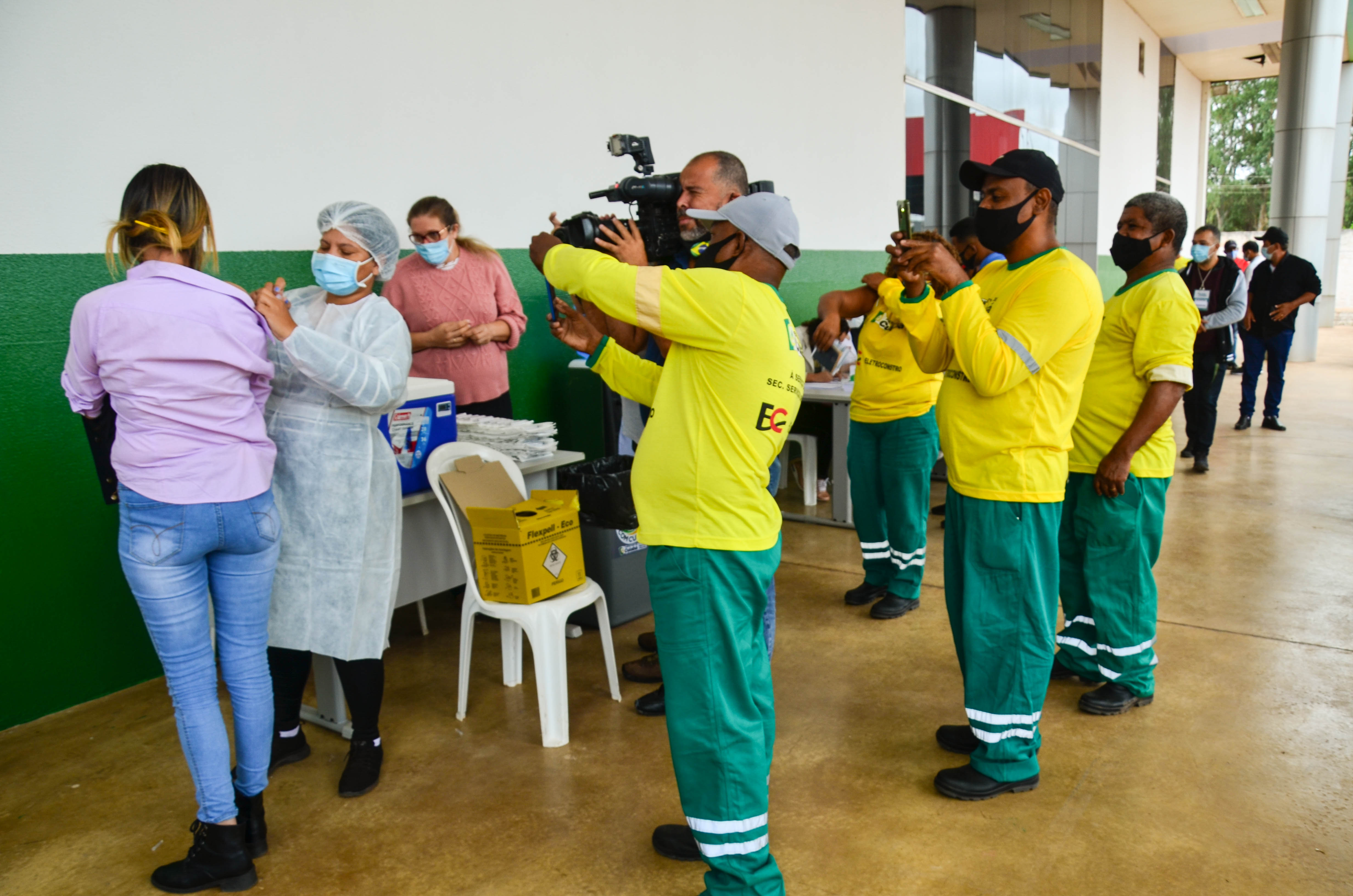 Cerca de 950 trabalhadores, entre varredores, garis da coleta de lixo domiciliar e catadores de recicláveis começaram a receber a primeira dose da vacina contra a Covid-19. A ação é coordenada pela Secretaria Municipal de Saúde, em parceria com a Empresa Cuiabana de Zeladoria e Serviços Urbanos (Limpurb), e faz parte da campanha “Vacina Cuiabá – sua vida em primeiro lugar”.