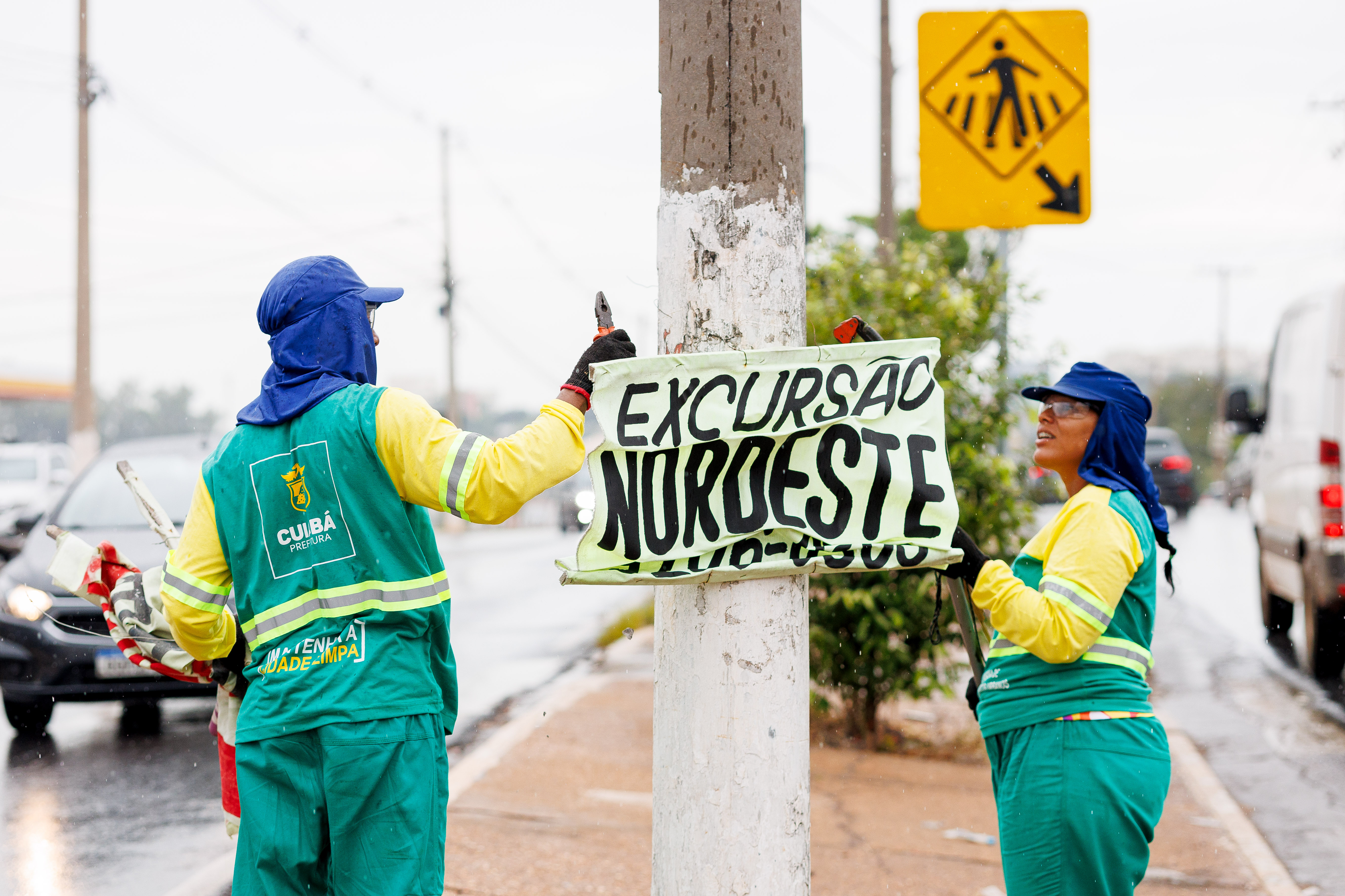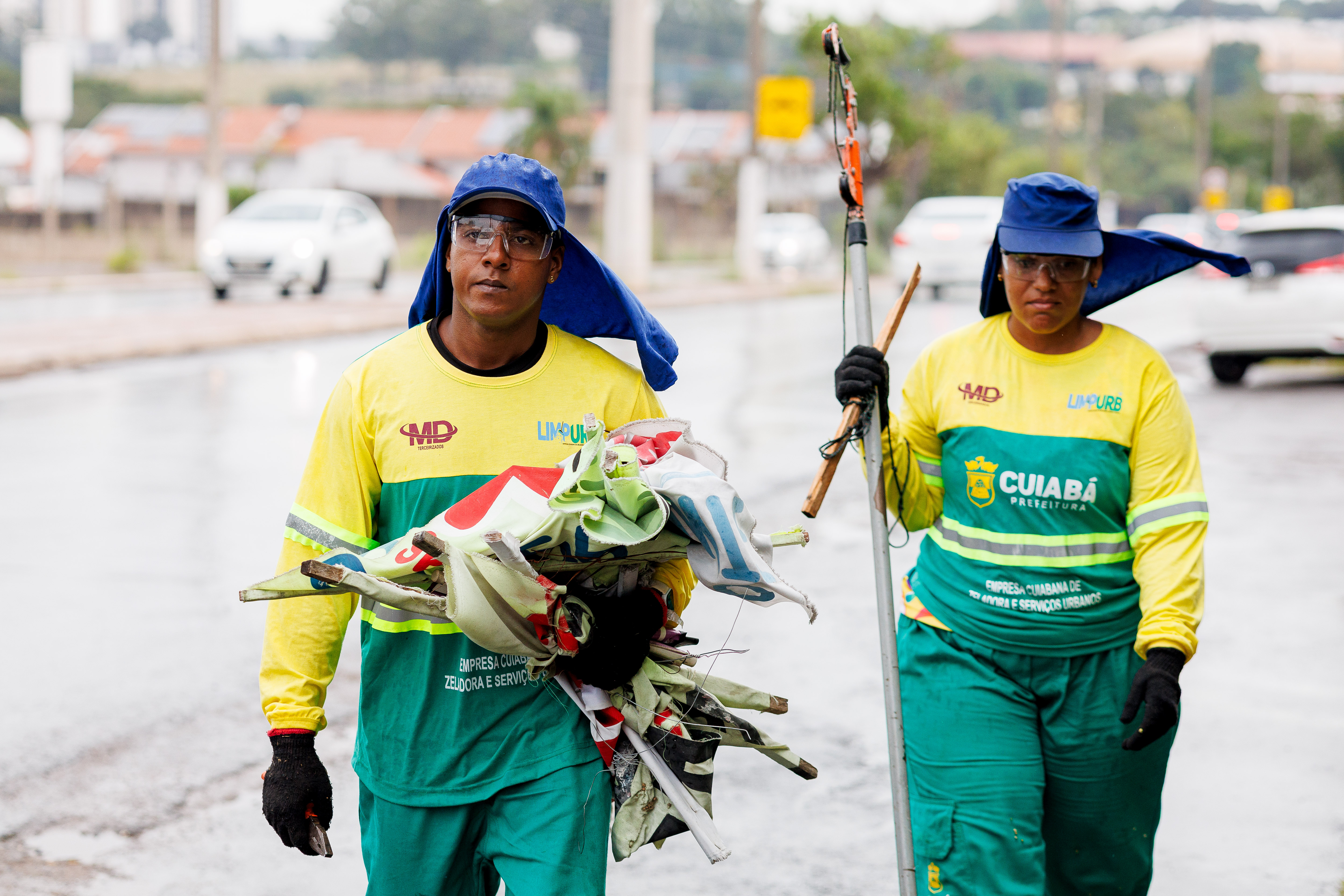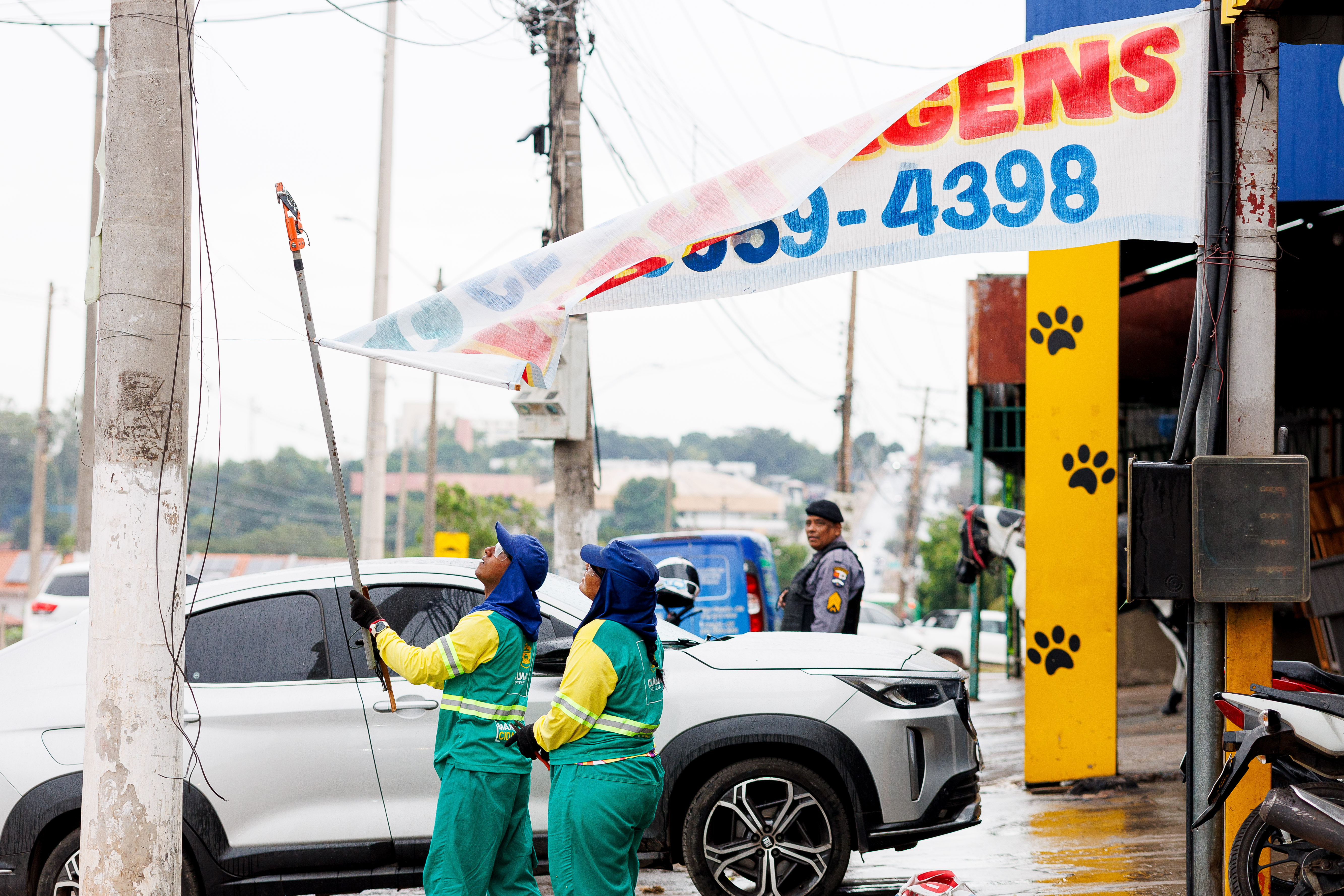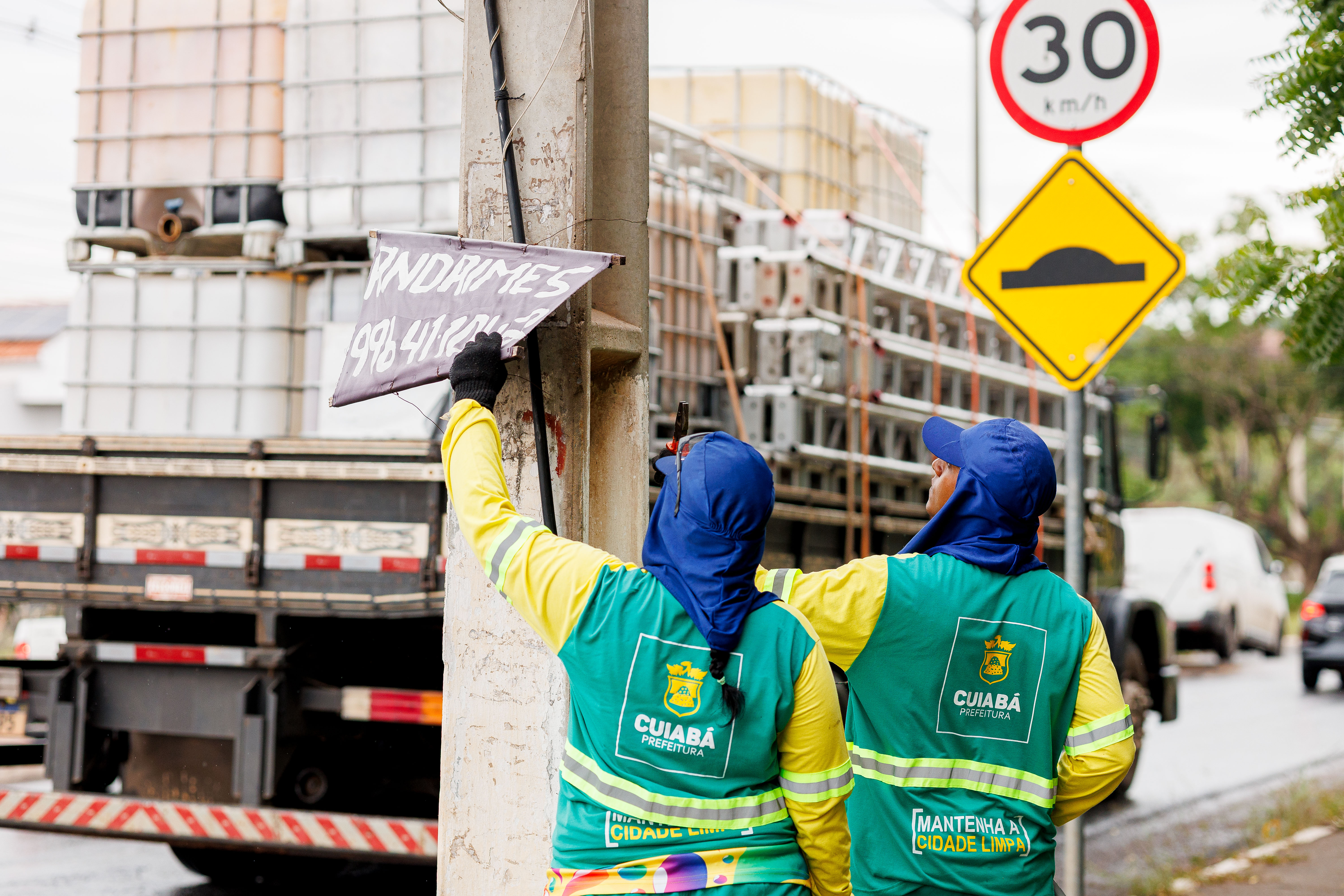A Prefeitura de Cuiabá, por meio da Secretaria Municipal de Ordem Pública, realizou na quarta-feira (26) a ação “Cidade Limpa”, com foco na retirada de publicidades instaladas irregularmente em áreas públicas. A operação contou com o apoio da Empresa Cuiabana de Zeladoria e Serviços Urbanos (Limpurb) e ocorreu ao longo da Avenida República do Líbano.