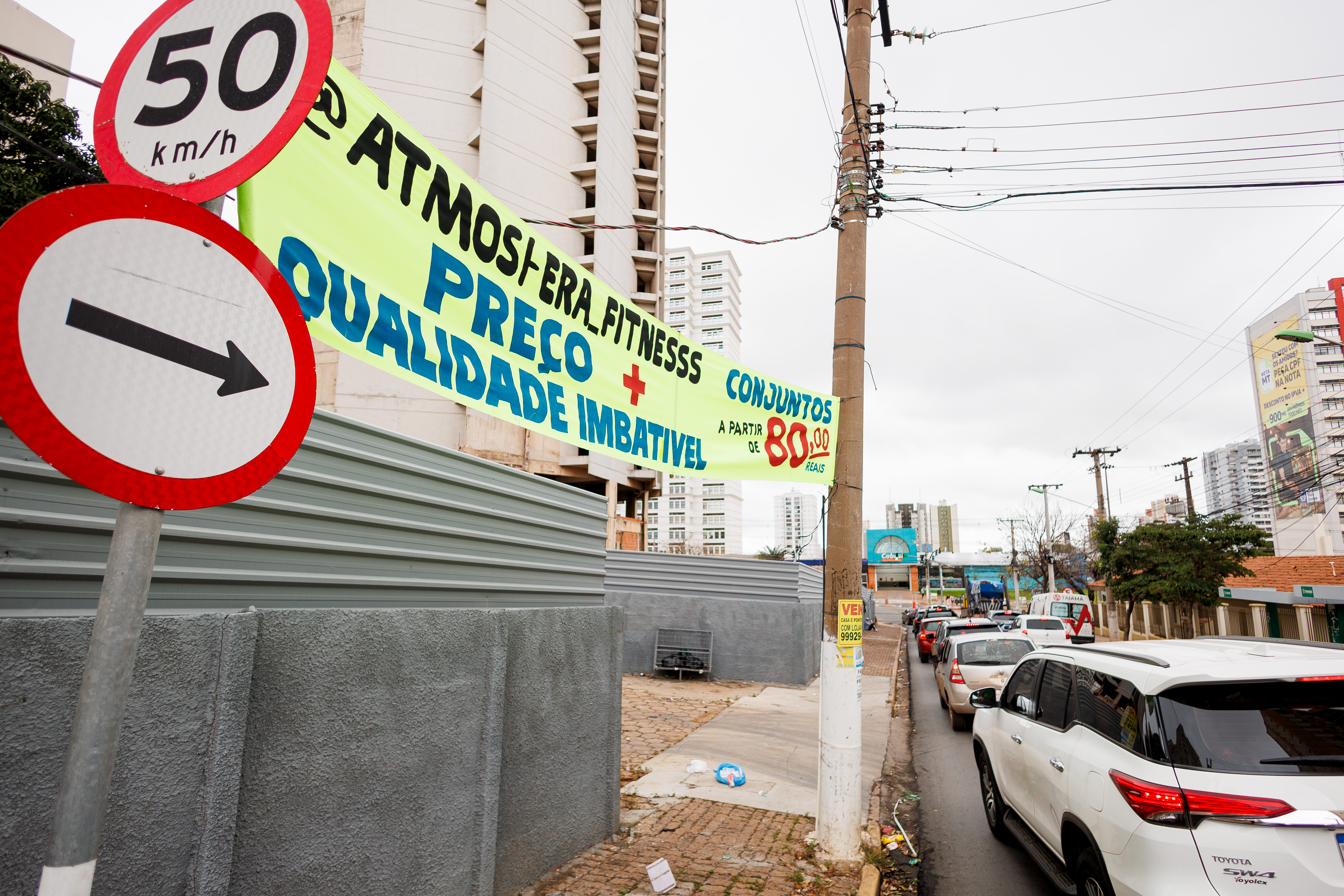 A legislação municipal é clara: a Lei Complementar nº 443/2017 proíbe qualquer tipo de publicidade em áreas públicas. Isso inclui faixas, banners, adesivos e placas instaladas em postes, árvores, semáforos, calçadas e vias públicas. A lei dispensa notificação prévia em casos flagrantes e determina a apreensão imediata do material irregular. As multas variam de acordo com o tamanho do anúncio, podendo chegar a R$ 10 mil no caso de painéis eletrônicos.