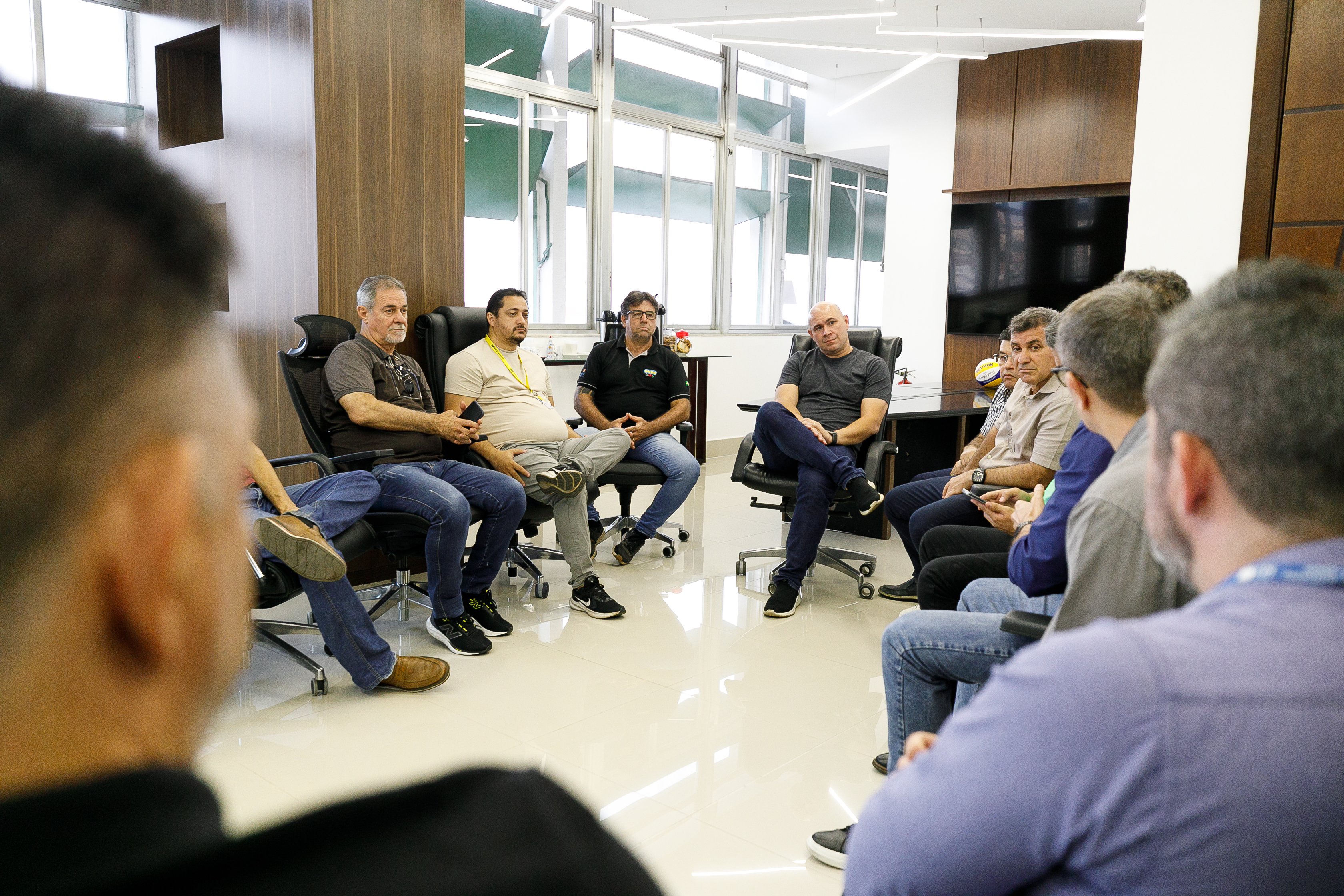 A foto mostra momentos da reunião liderada pelo prefeito Abilio Brunini com os representantes da CDL, na Prefeitura de Cuiabá.