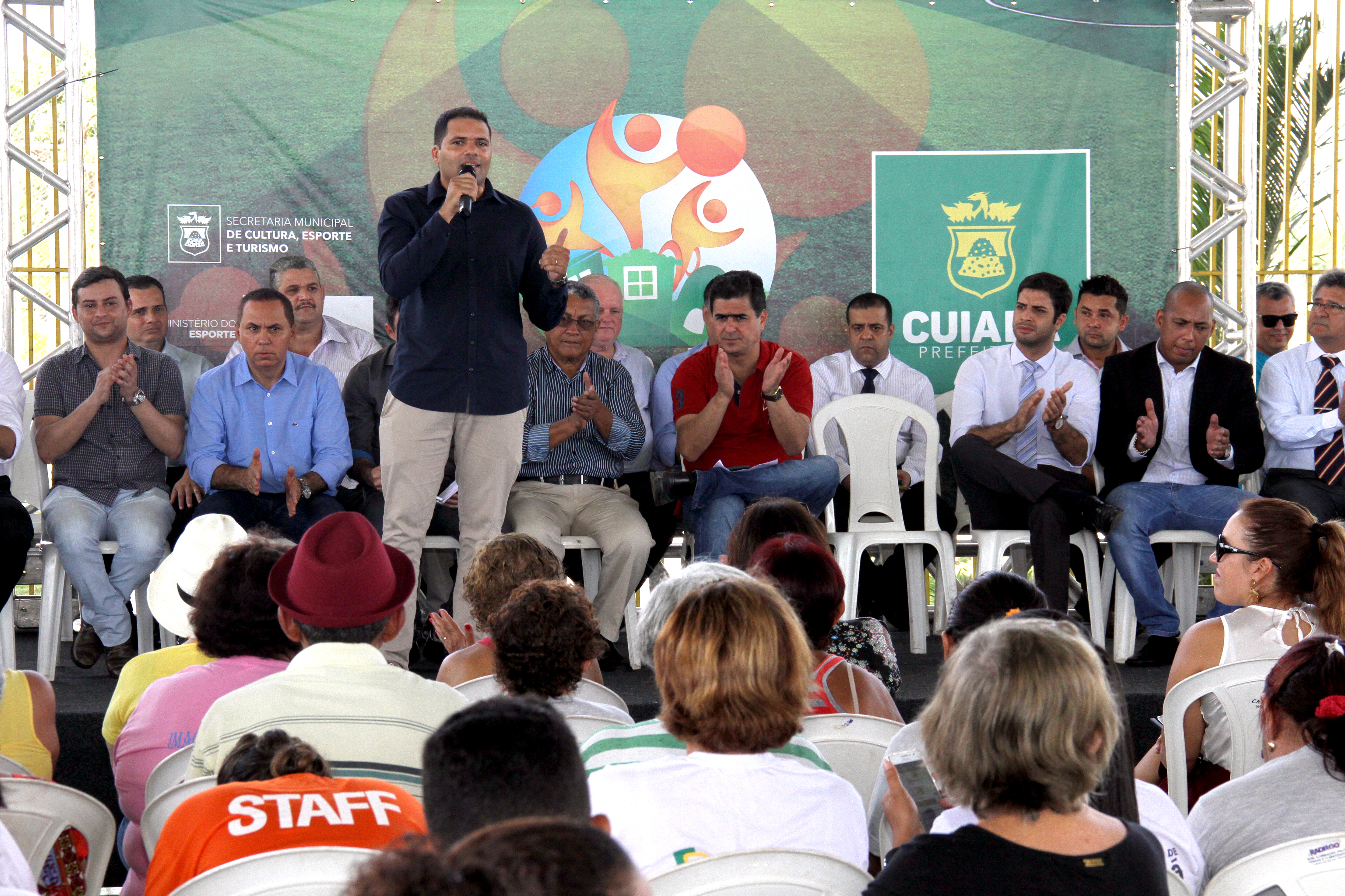 O prefeito de Cuiabá Emanuel Pinheiro, o secretário de Cultura, Esporte e Turismo Renato Anselmo Vilela e o secretário adjunto de Esportes, Edilson Odilon Silva lançaram, nesta quinta-feira (06), no Complexo Esportivo Dom Aquino, o Programa de Esporte e Lazer das Cidades (PELC), do Governo Federal criado para levar atividades esportivas e culturais, para comunidades periféricas.