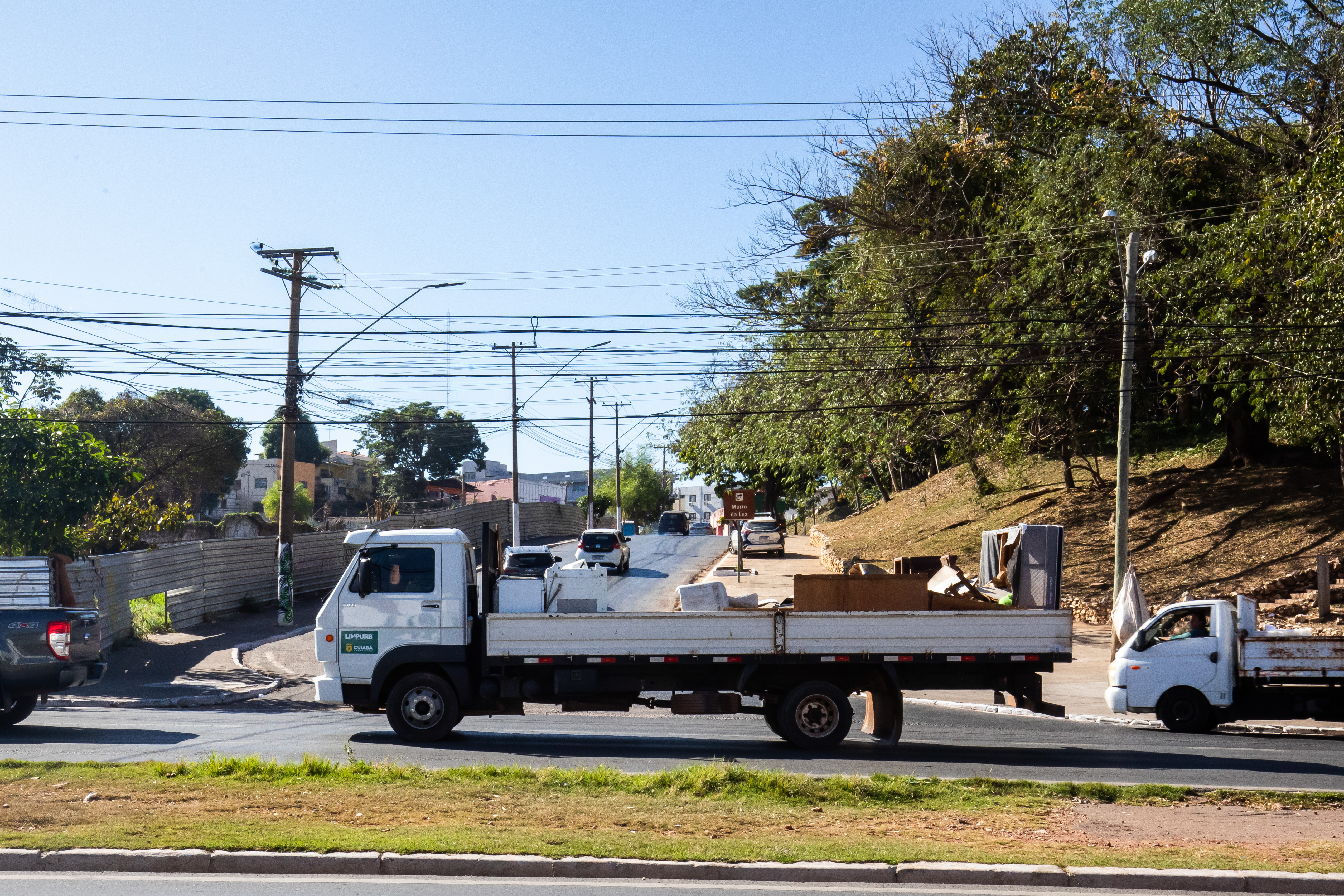 A imagem mostra os caminhões da Limpurb realizando a retirada de móveis inservíveis através do programa cata-treco.