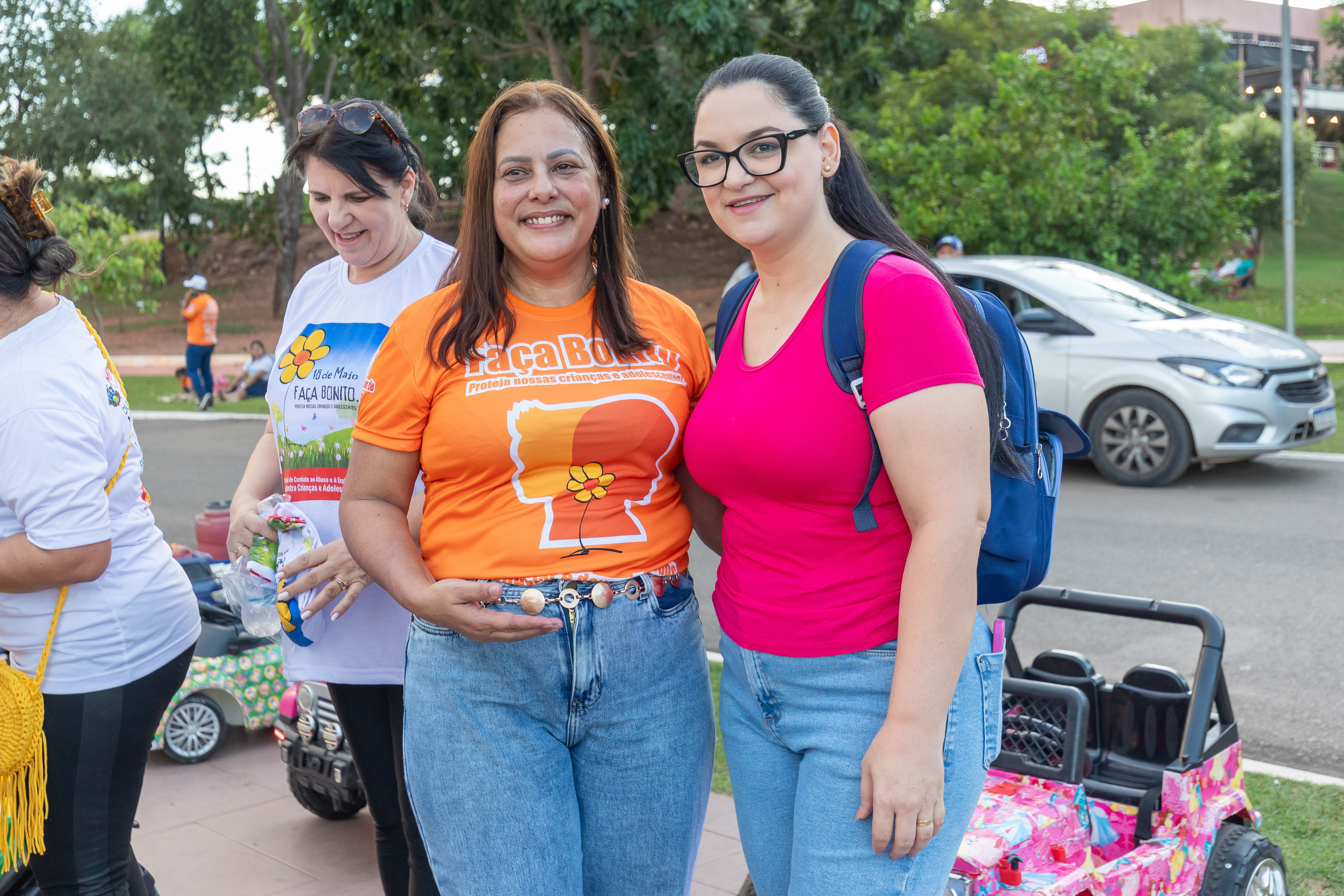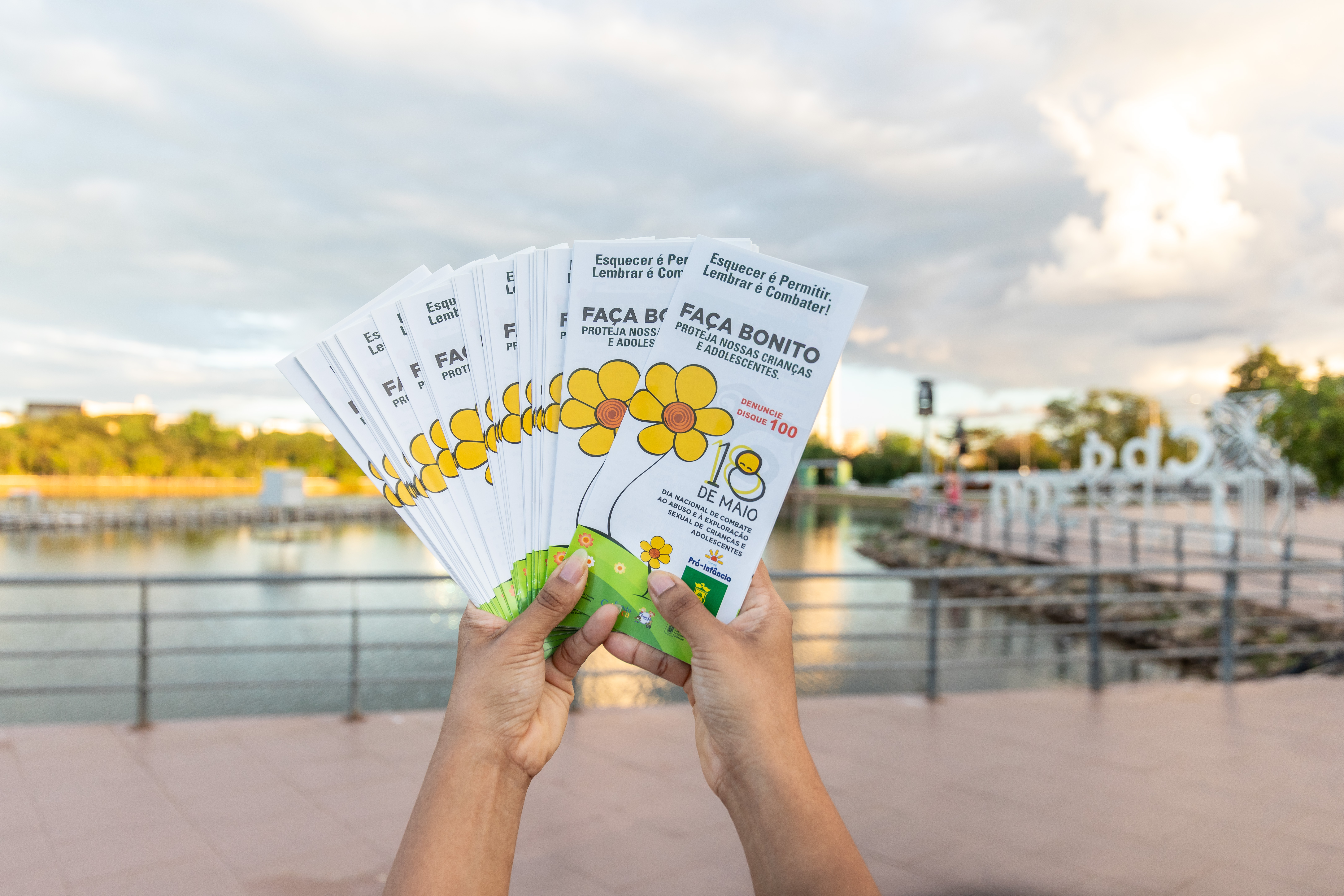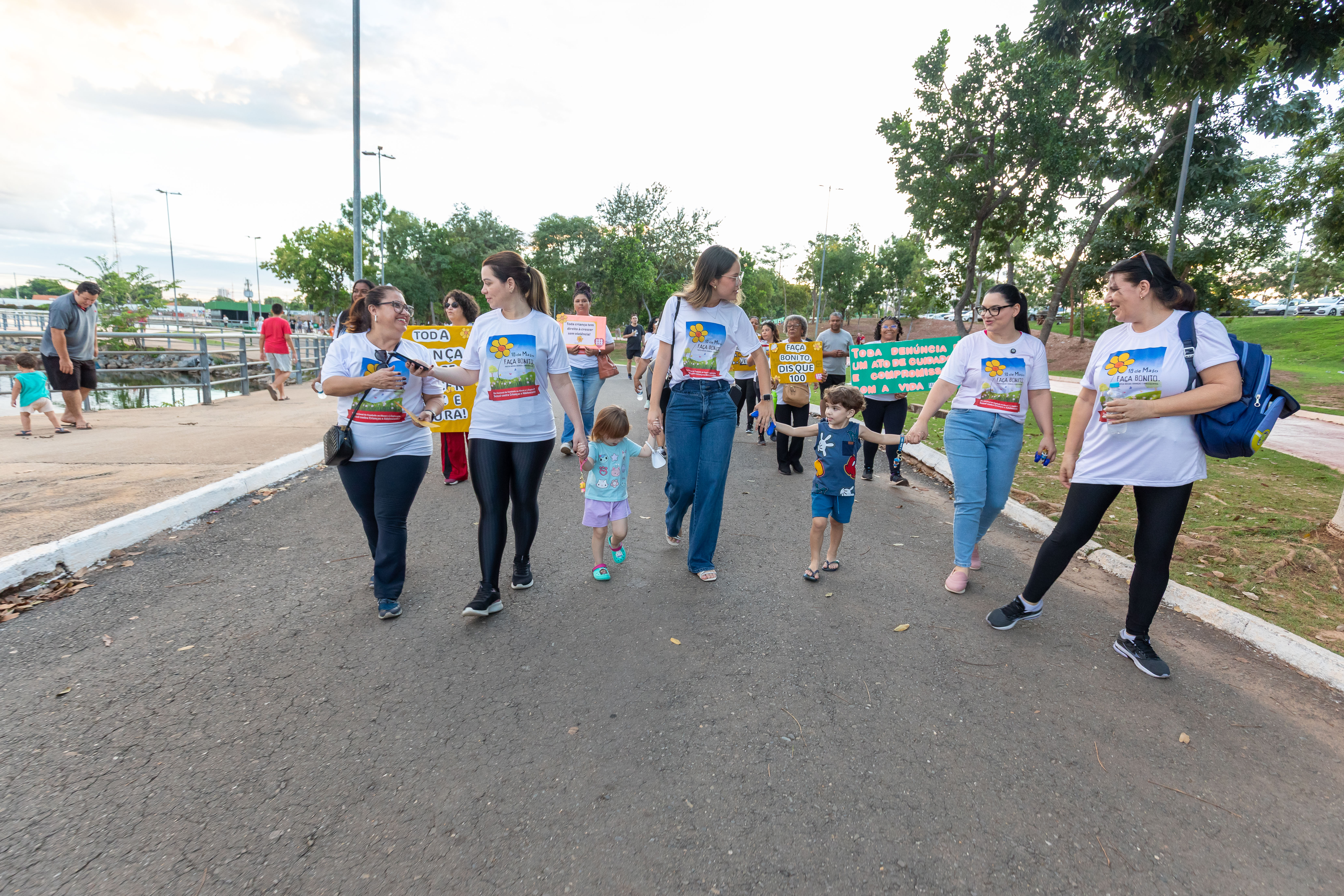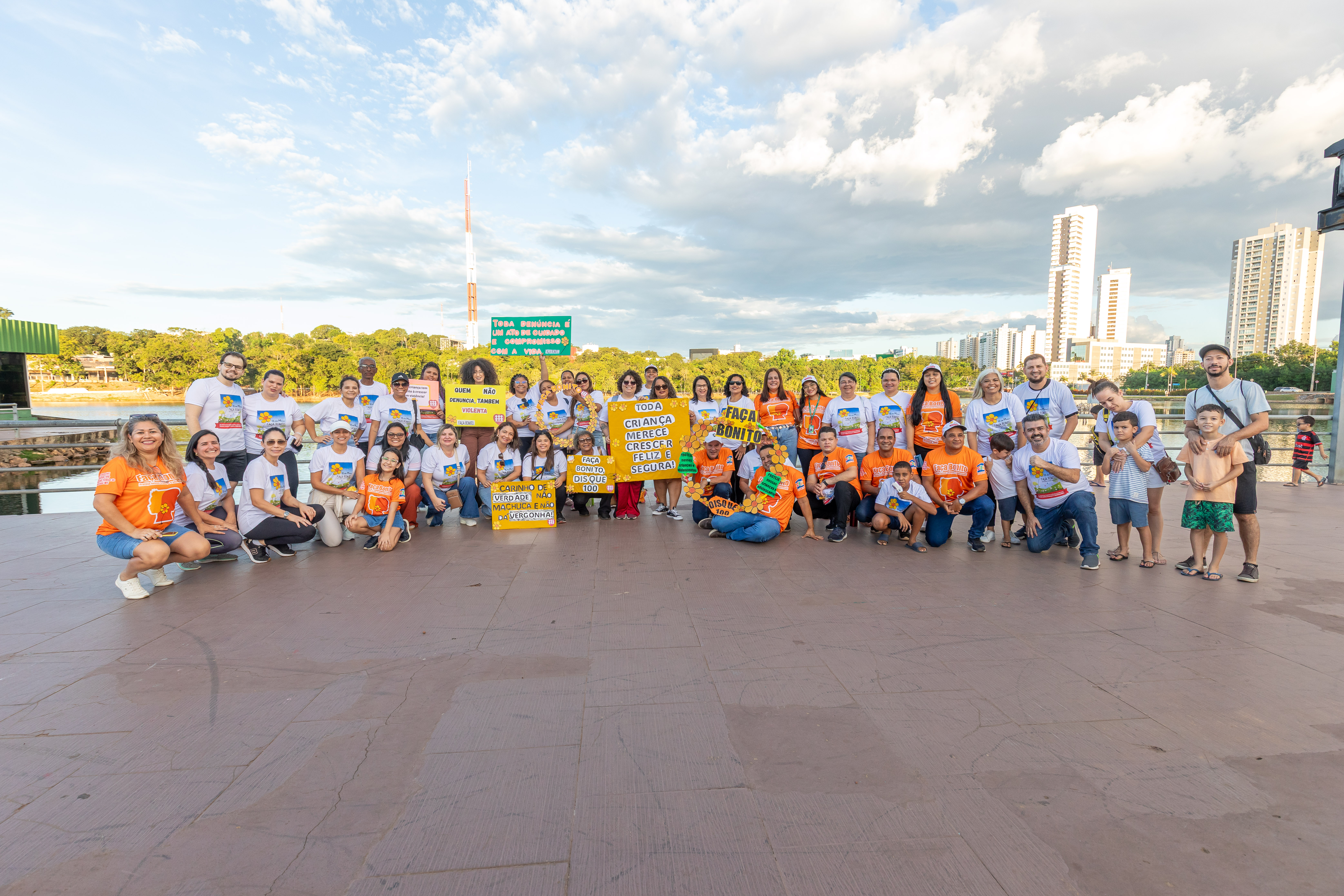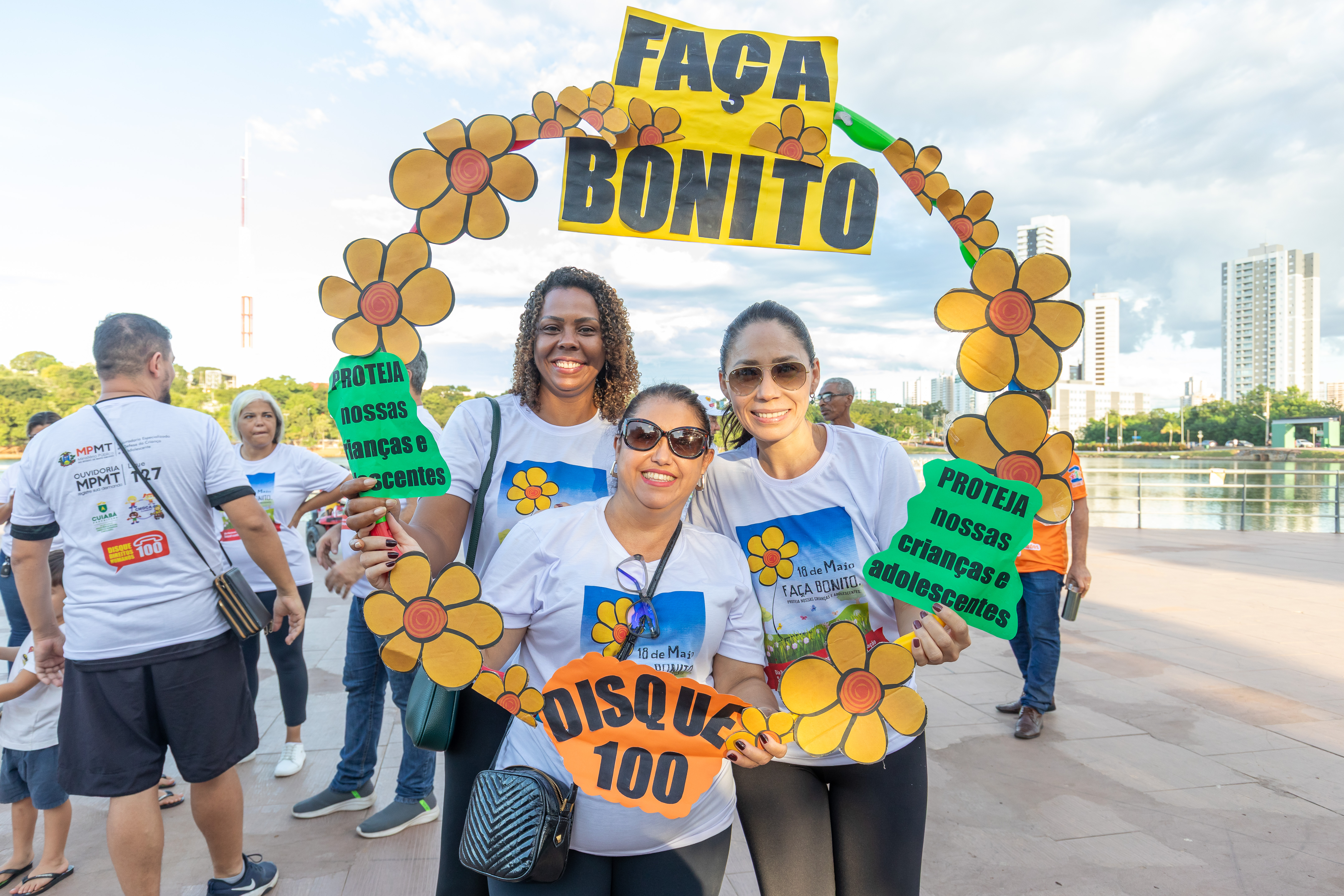 Com faixas com frases como: “Não se cale”, “Você pode salvar uma vida”, “Faça Bonito – Disque 100”, “Carinho de verdade não machuca e não dá vergonha”, “Toda denúncia é um ato de cuidado e compromisso com a vida”, “Toda criança merece crescer feliz e segura”, e “Quem não denuncia também violenta”, os participantes reforçaram a importância da denúncia e da proteção integral da infância.