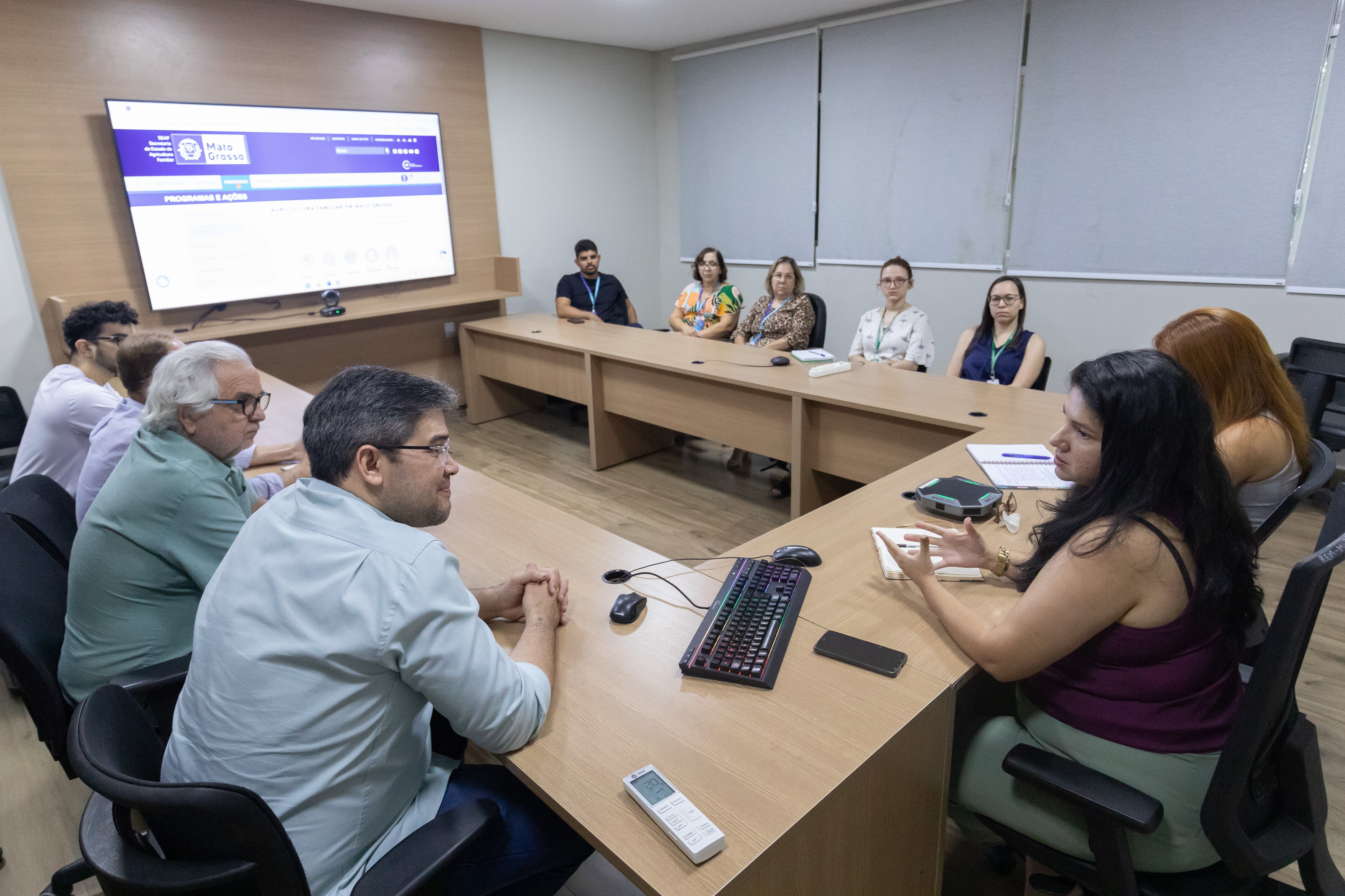 A foto mostra representantes do município de Cuiabá e do Governo do Estado em tratativas para parcerias relativas à emissão do Selo de Inspeção Municipal (SIM) e do Serviço de Inspeção Agroindústria de Pequeno Porte (SIAPP), que podem ampliar a abertura de mercado para o produtor.